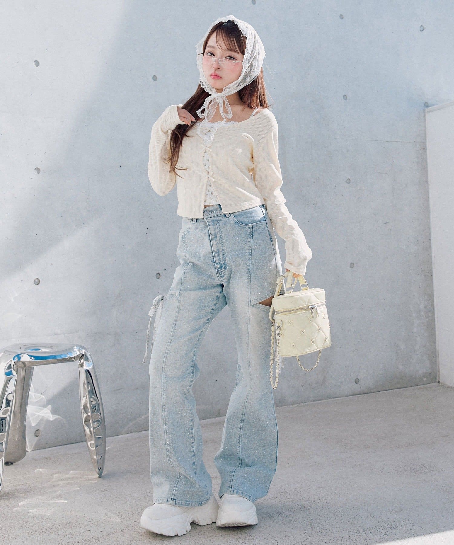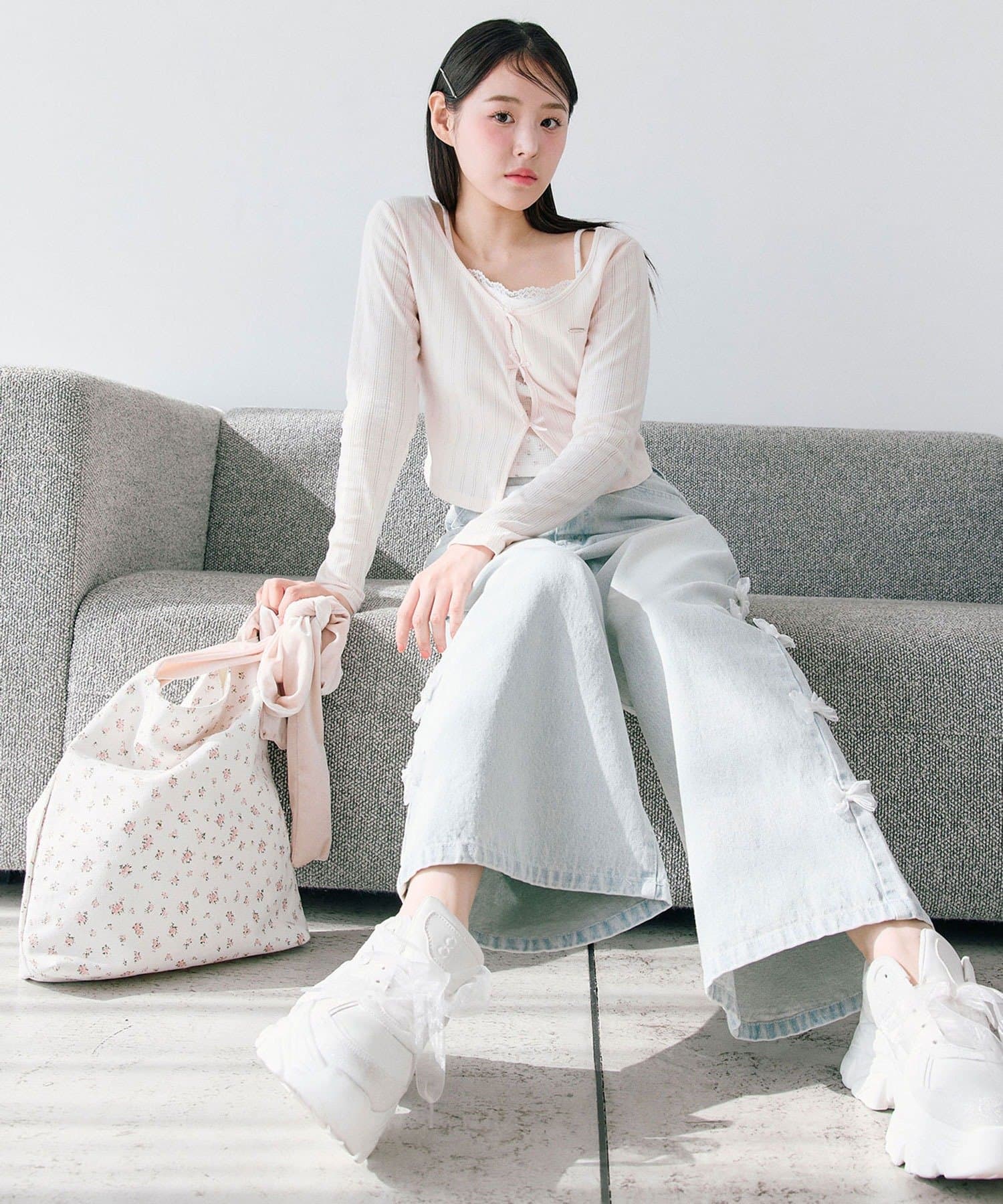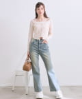・デニムパンツ合わせで、甘さを抑えた大人カジュアルな着こなしもかわいいです。