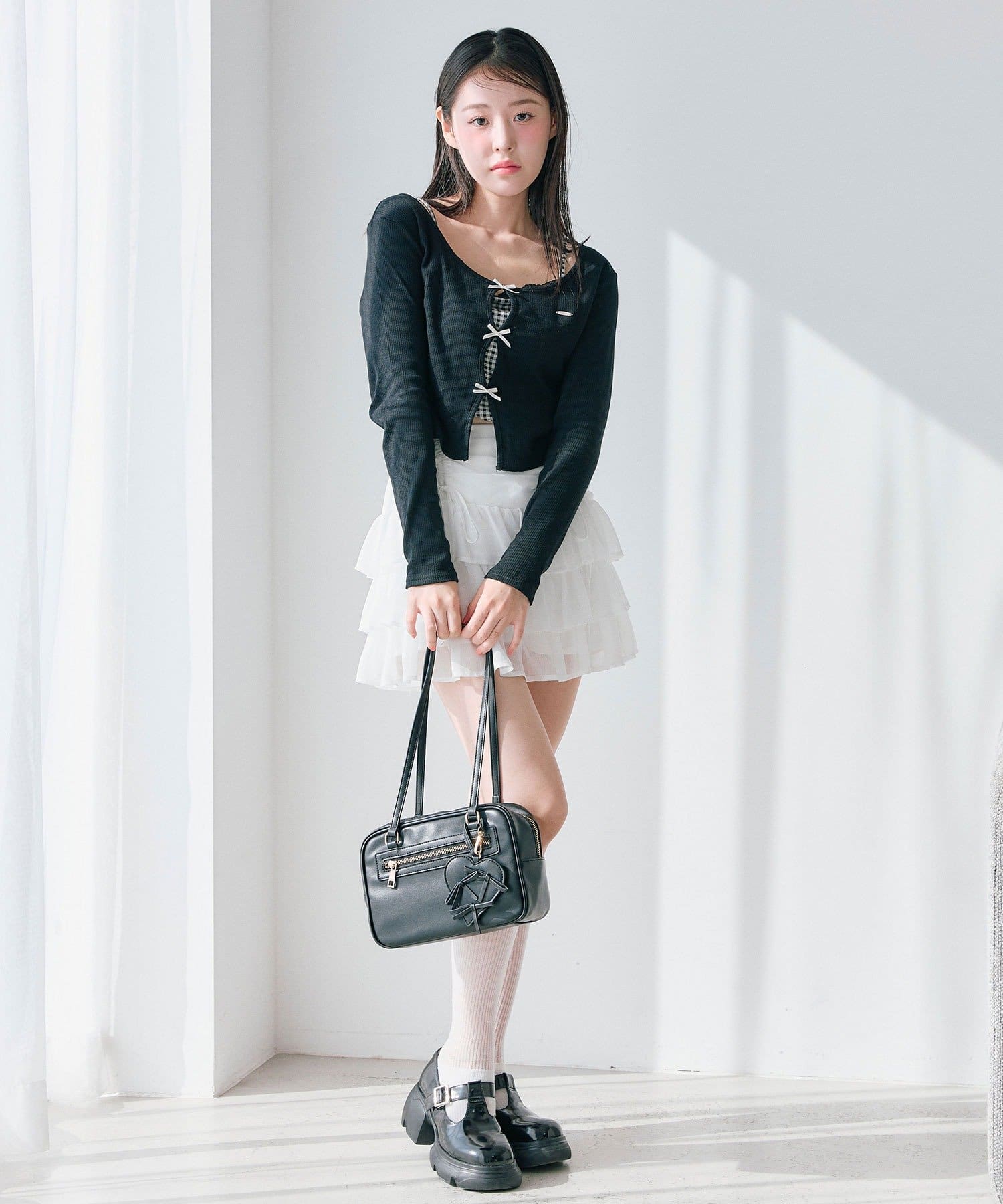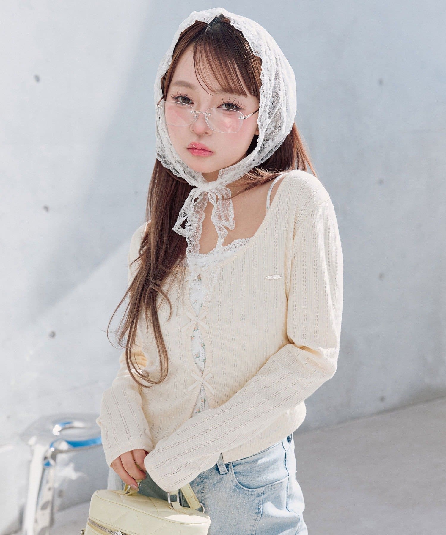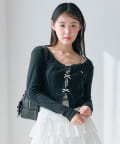 ・小さいリボンに胸元のレースなどディテールにこだわった着映えトップス。