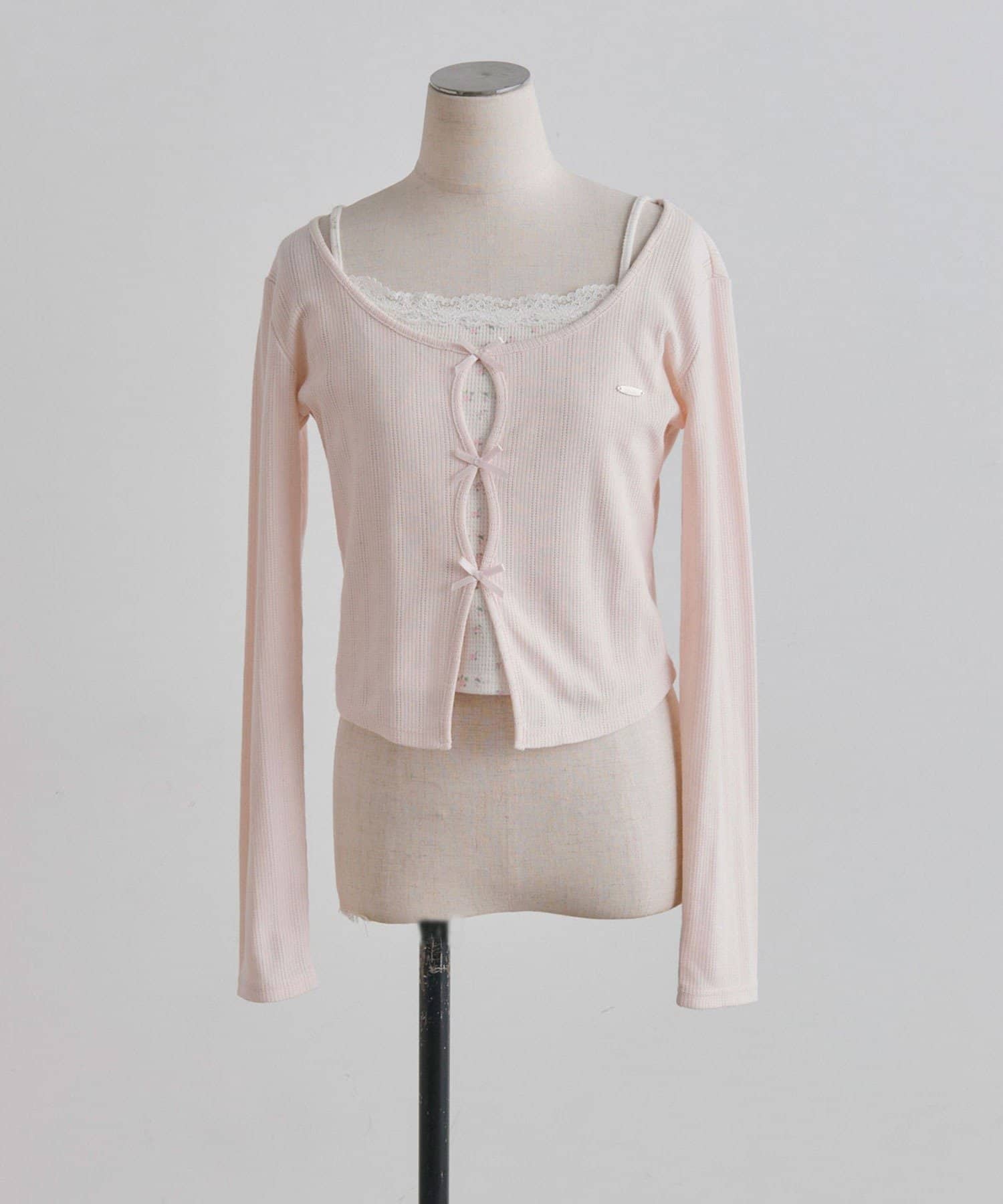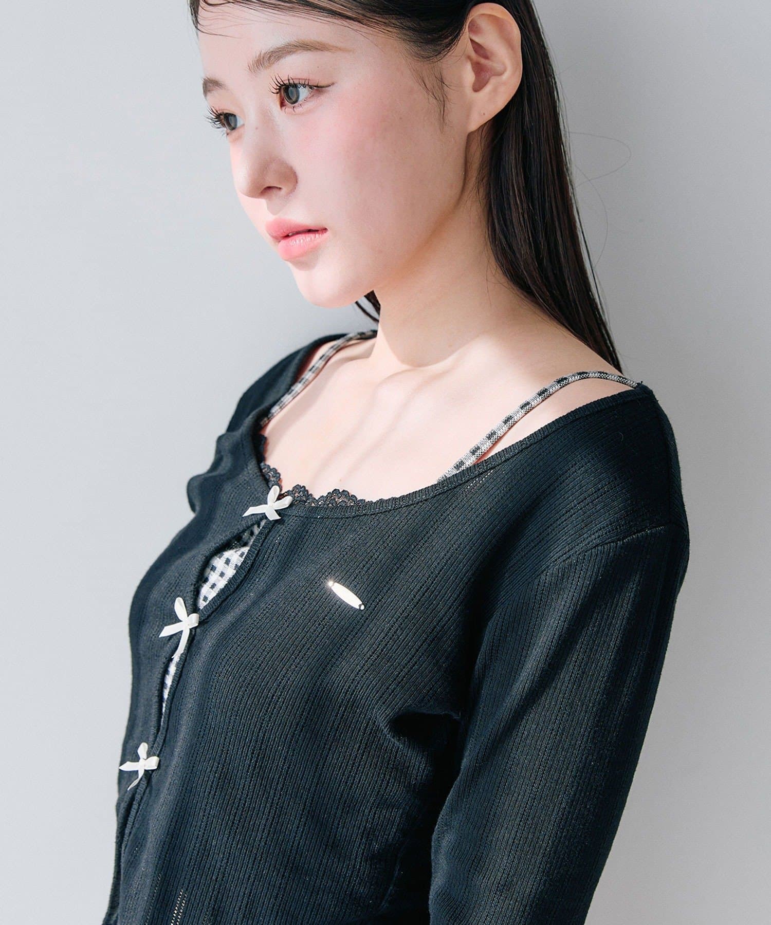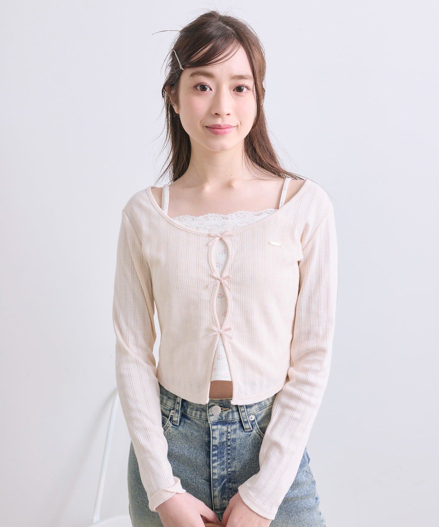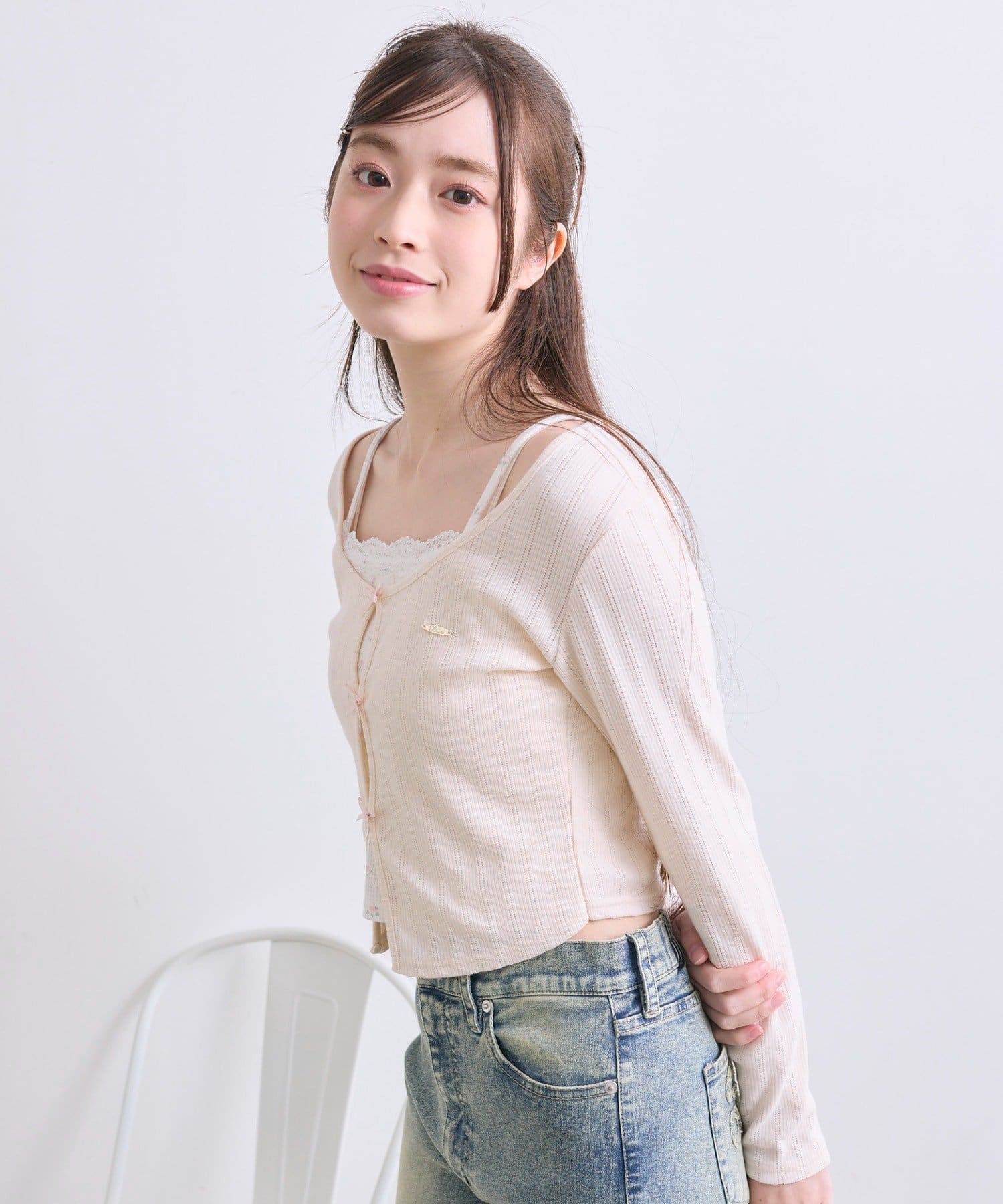 ・キャミインナーにカーディガンを重ねたようなレイヤード風のデザインです。