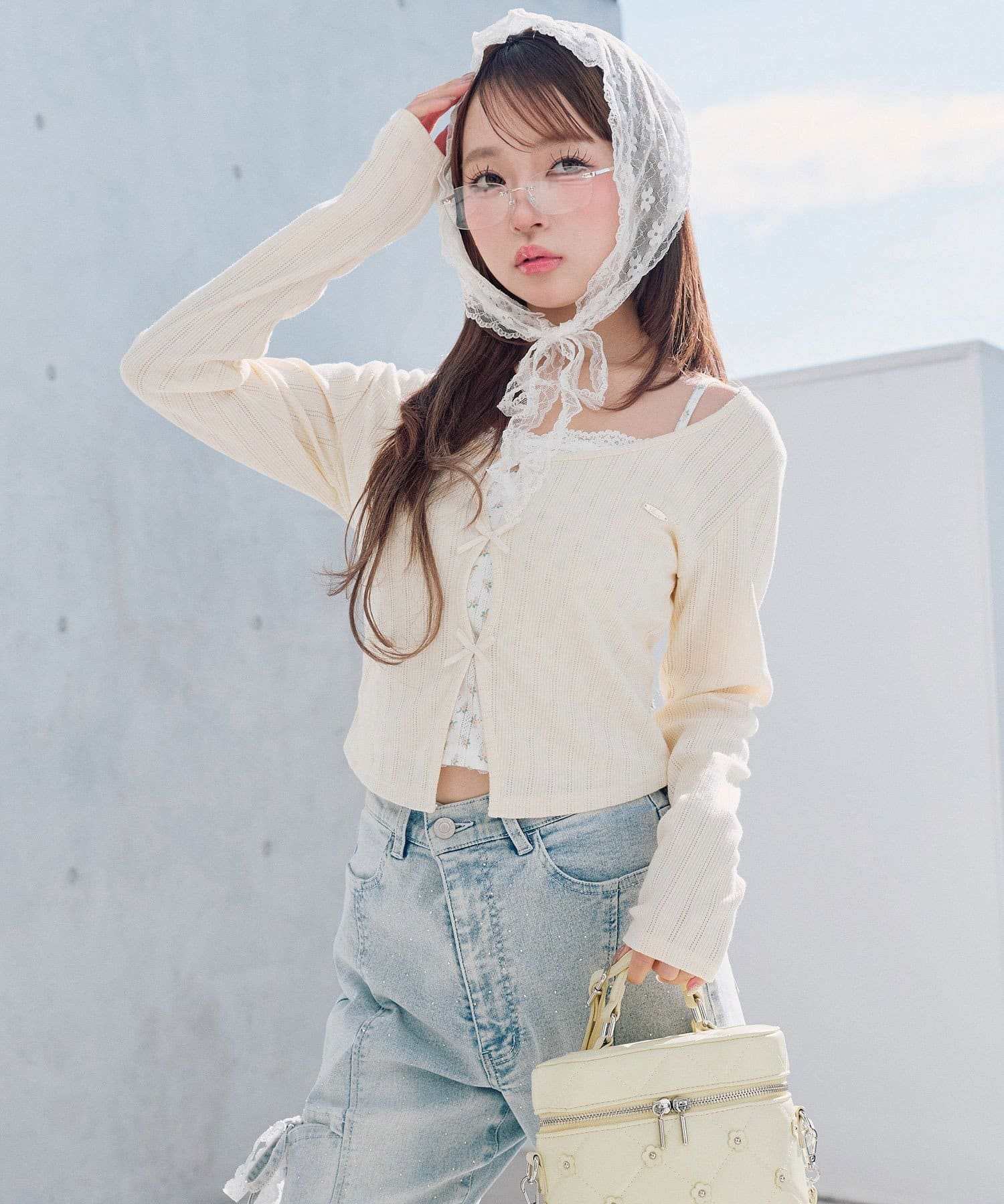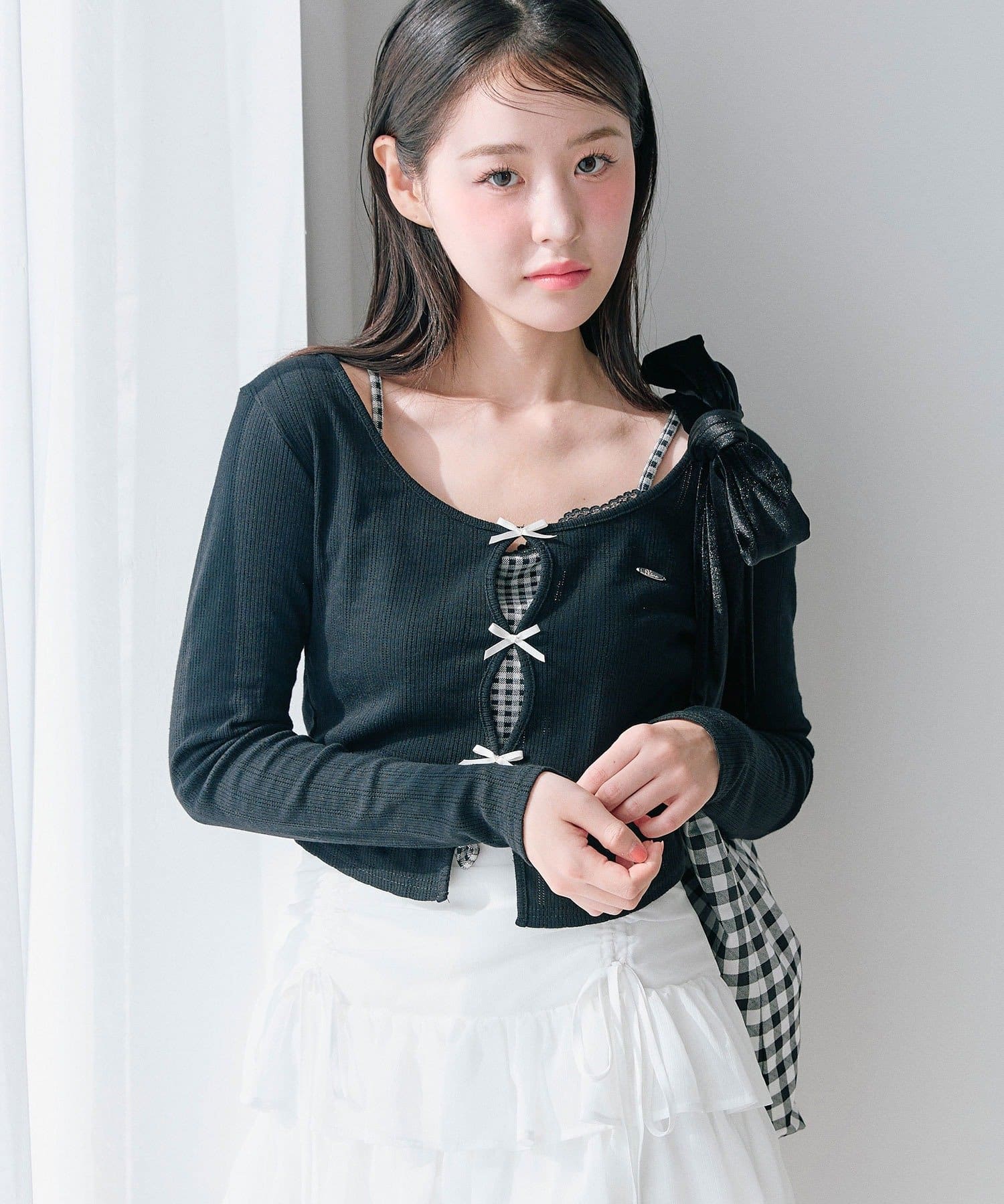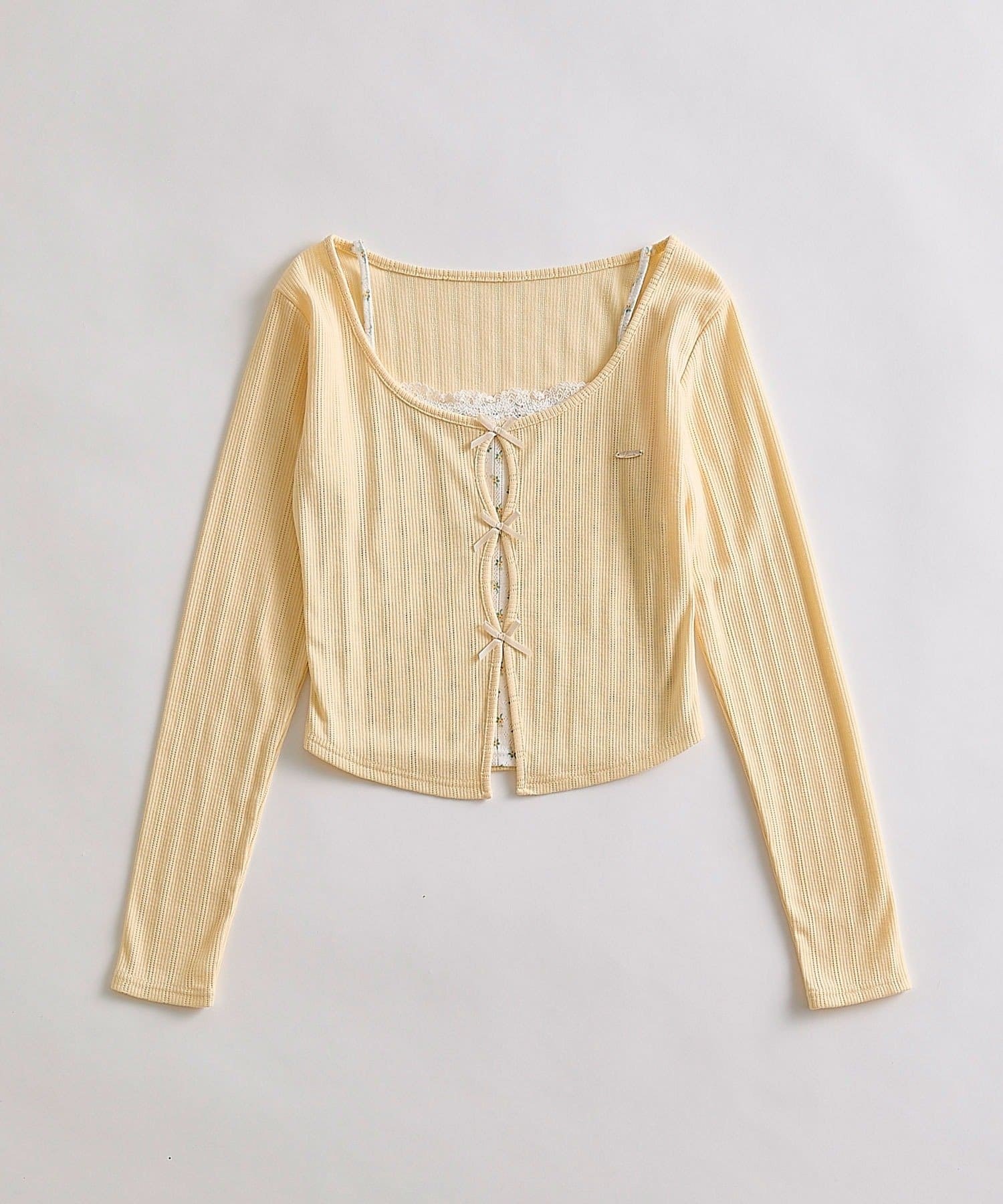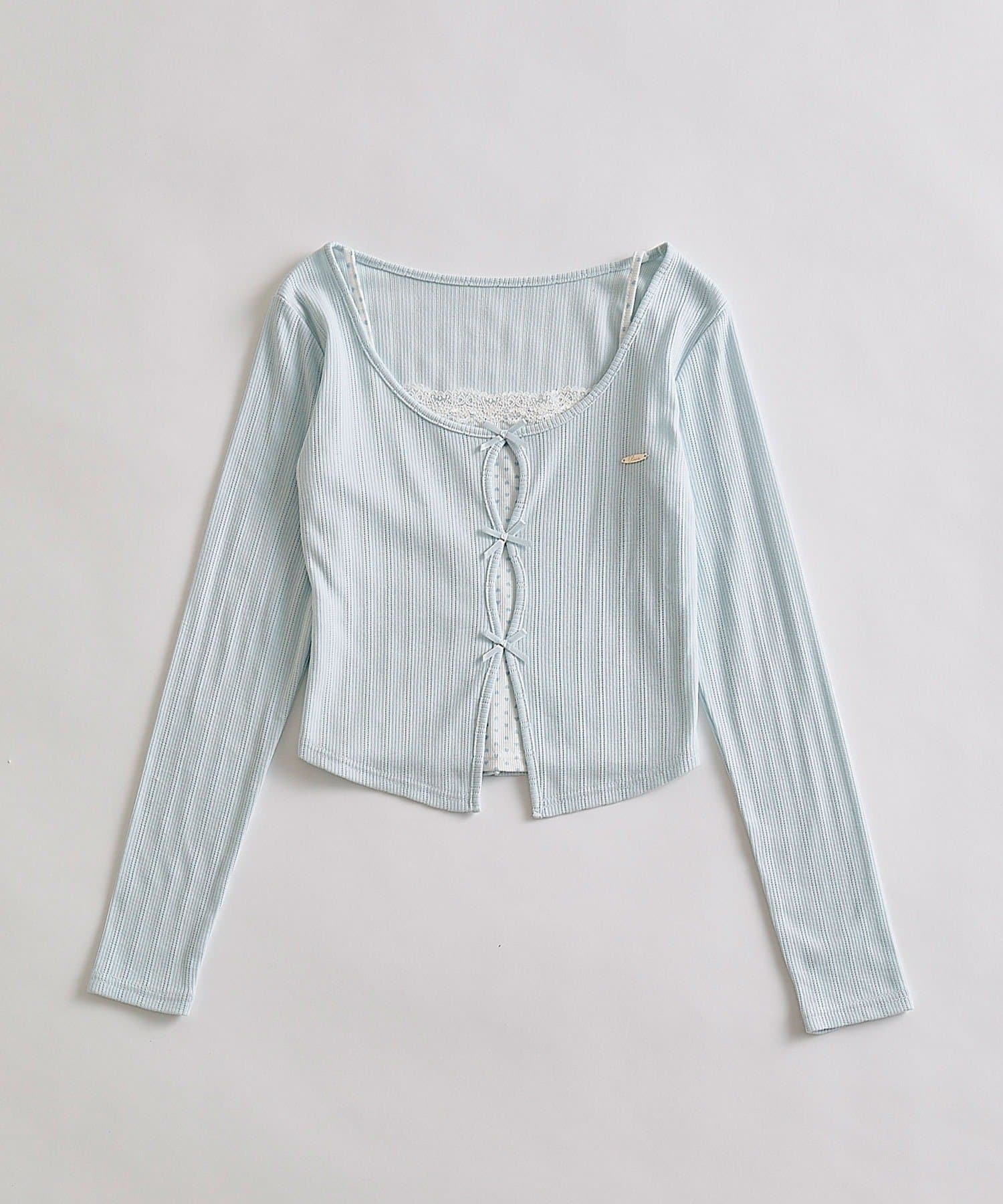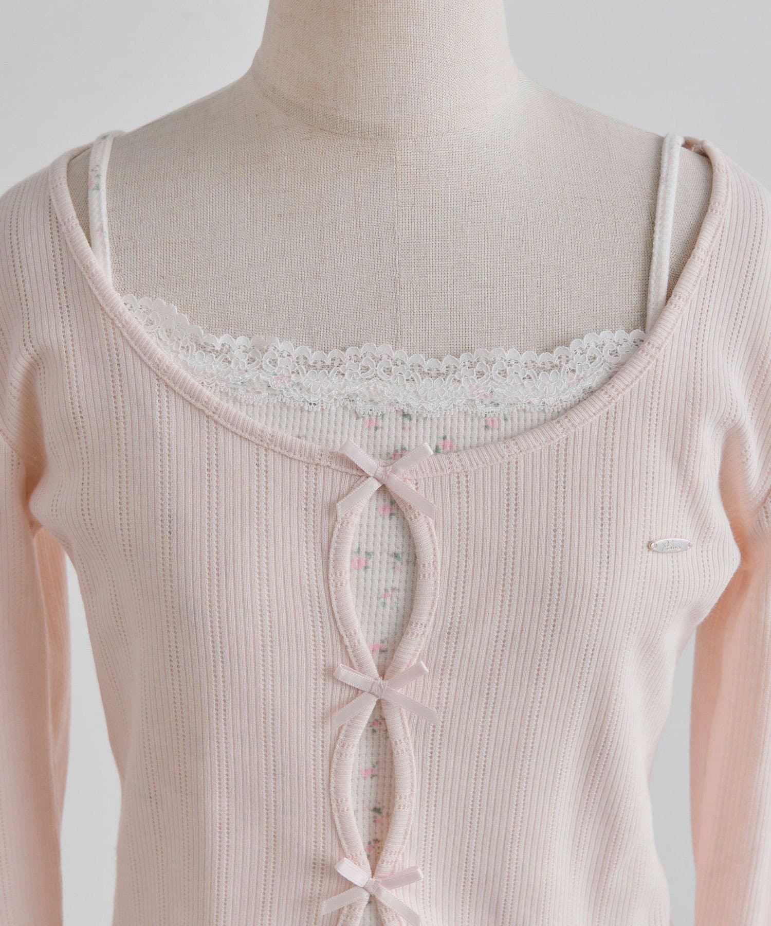 ・キャミインナーにカーディガンを重ねたようなレイヤード風のデザインです。