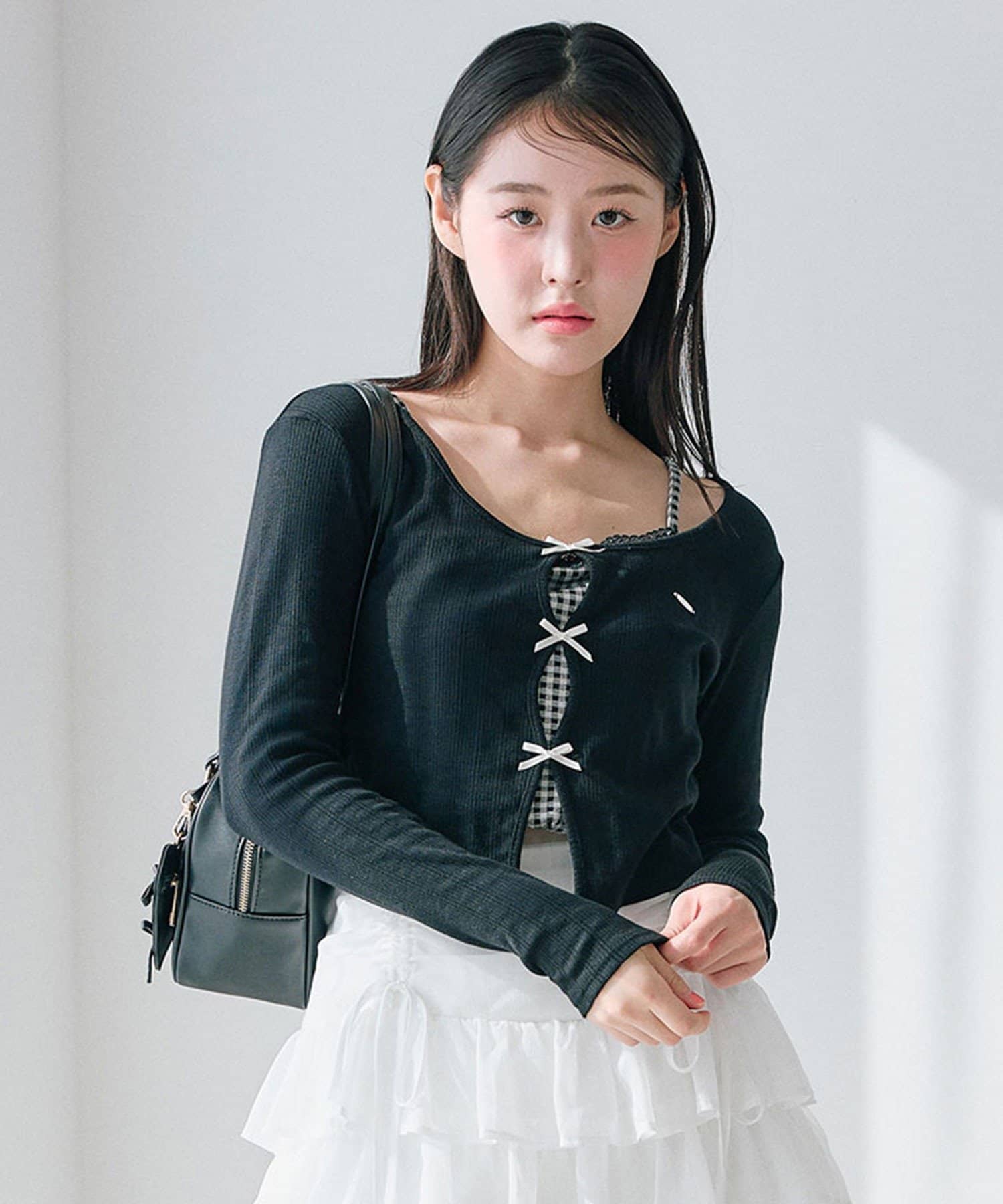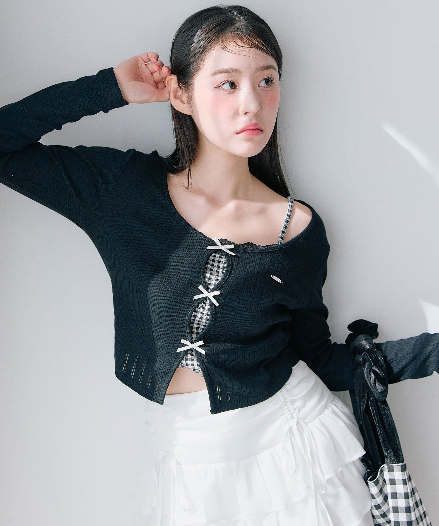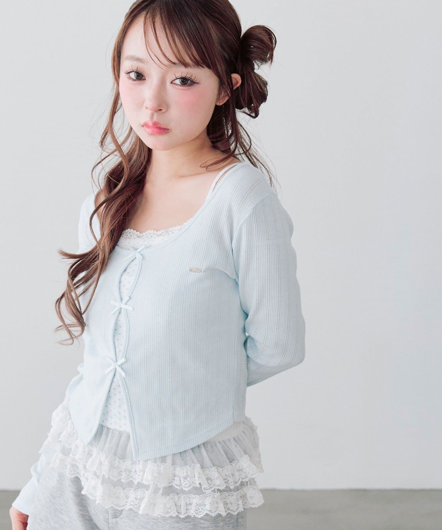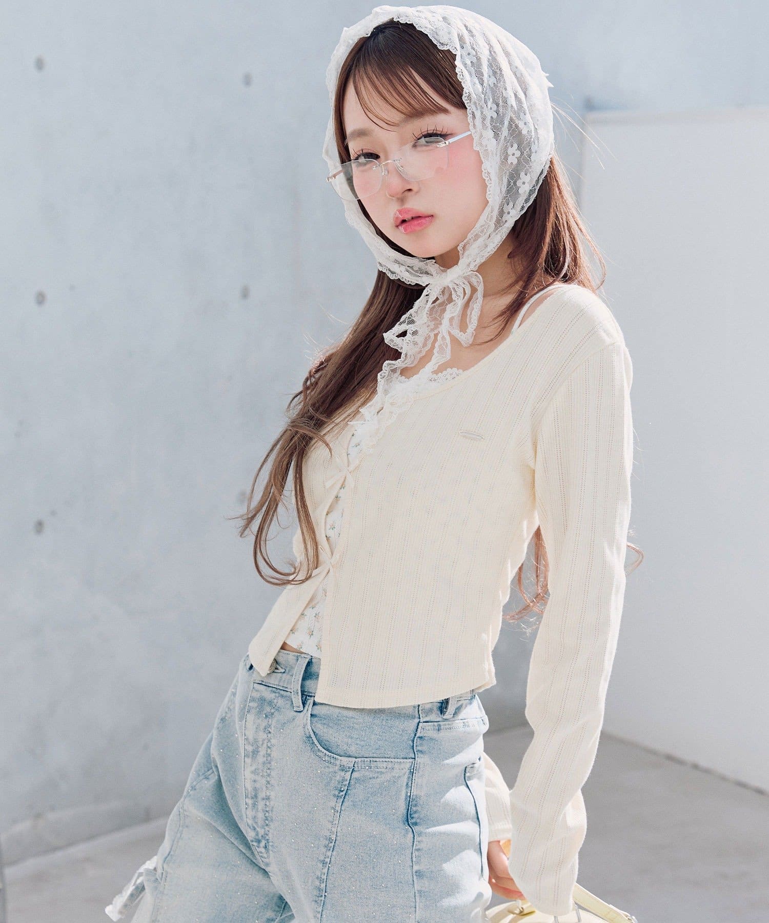 ・キャミインナーにカーディガンを重ねたようなレイヤード風のデザインです。