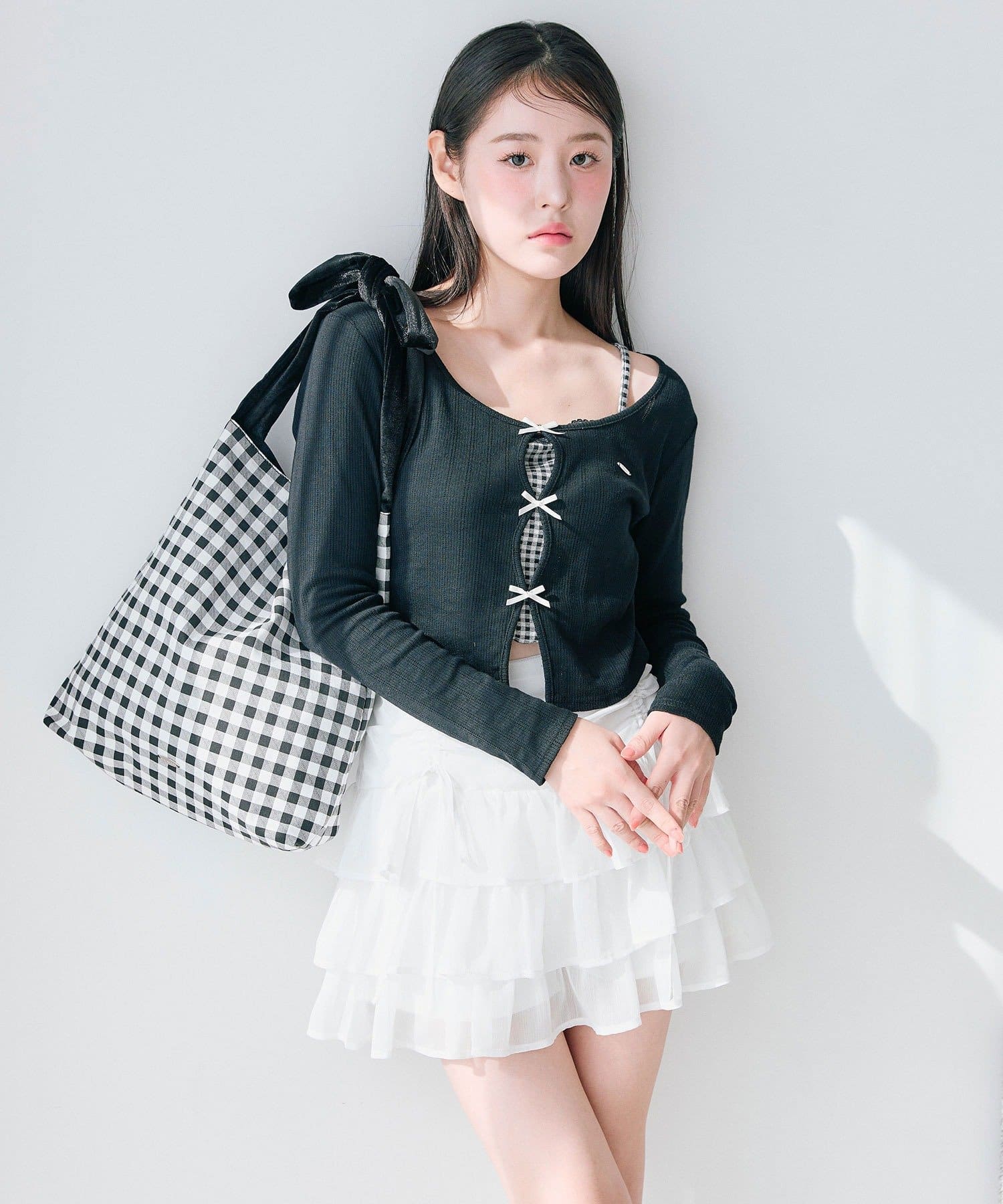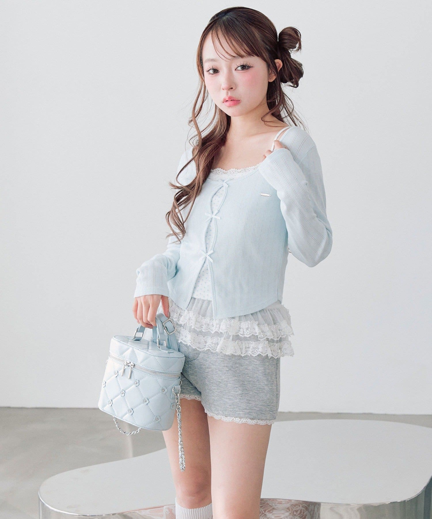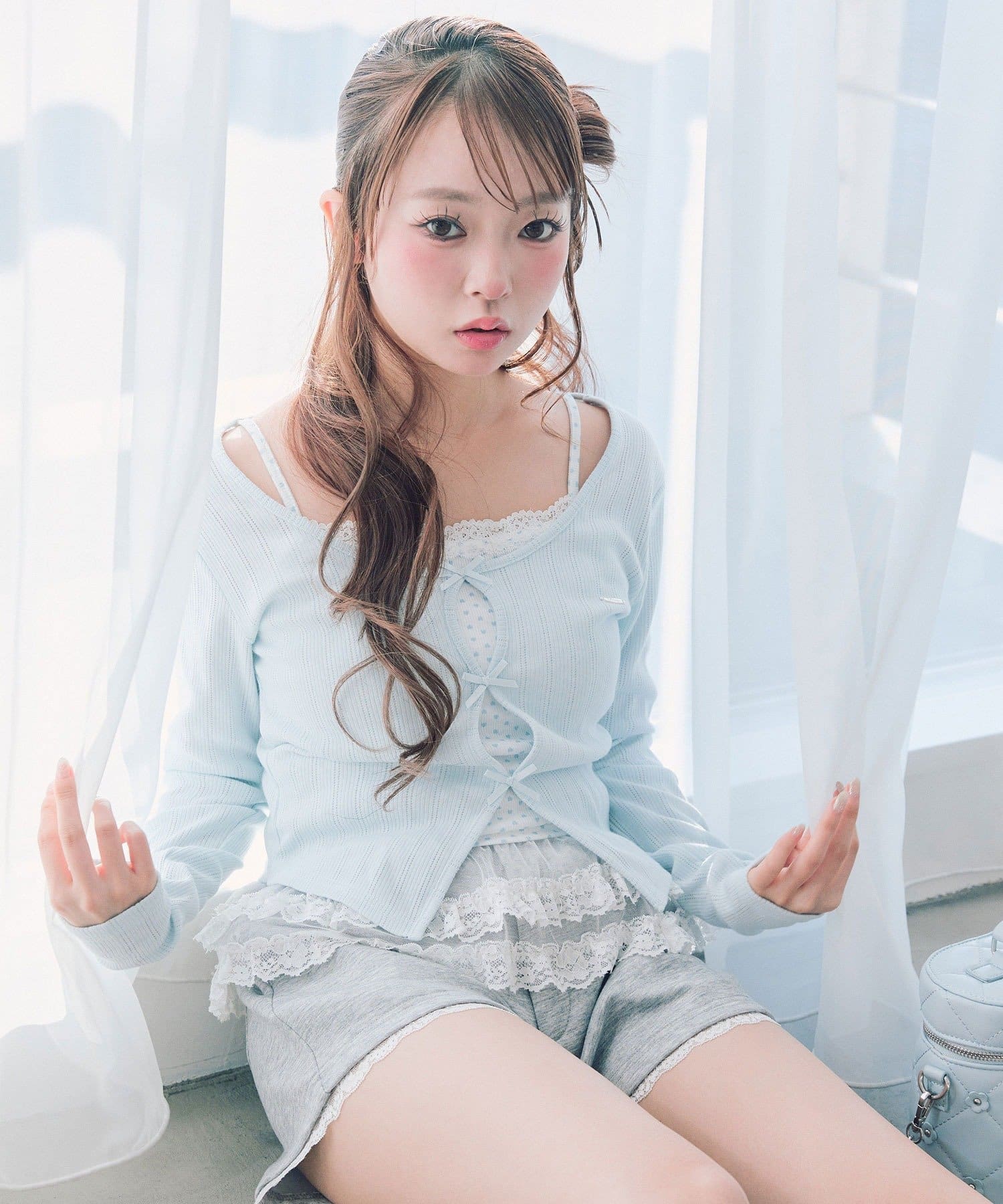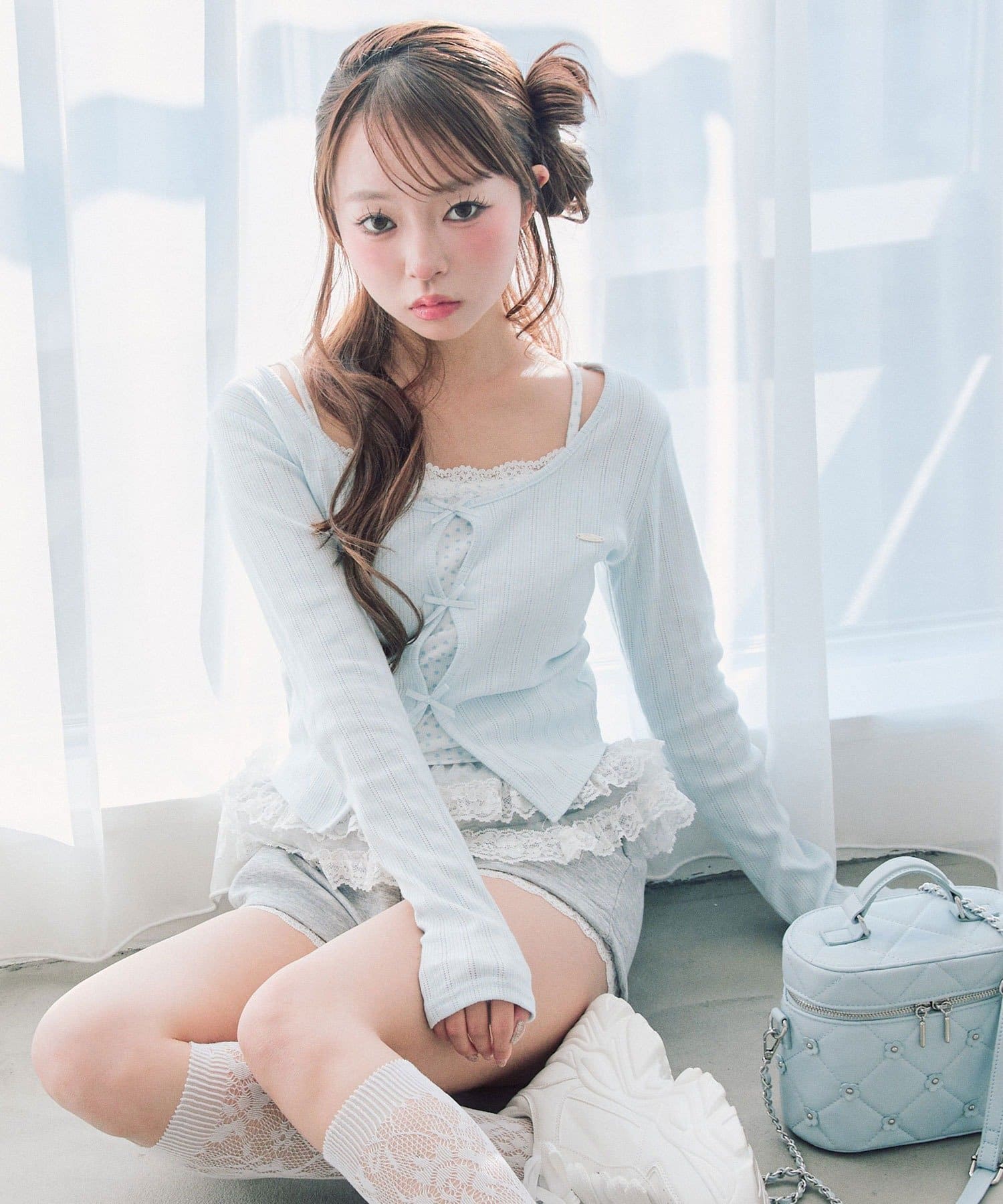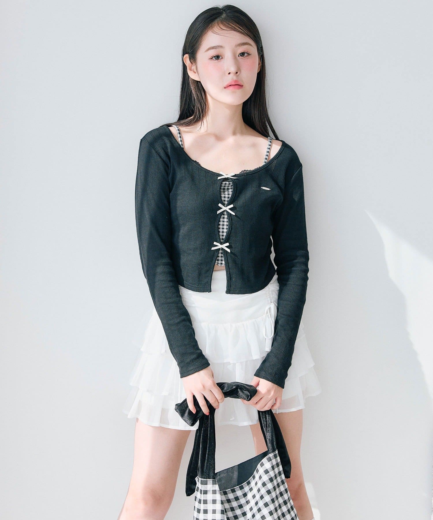 ・キャミインナーにカーディガンを重ねたようなレイヤード風のデザインです。