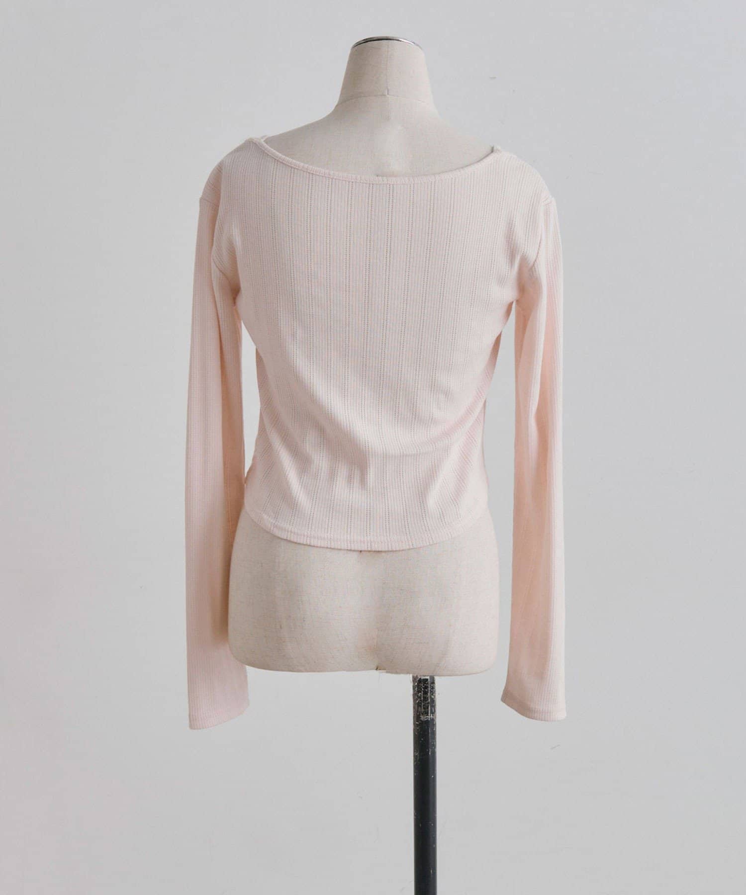 ・広めに開いたネックラインがデコルテをきれいに見せてくれて、コンパクトなサイズ感で華奢見えも叶います。