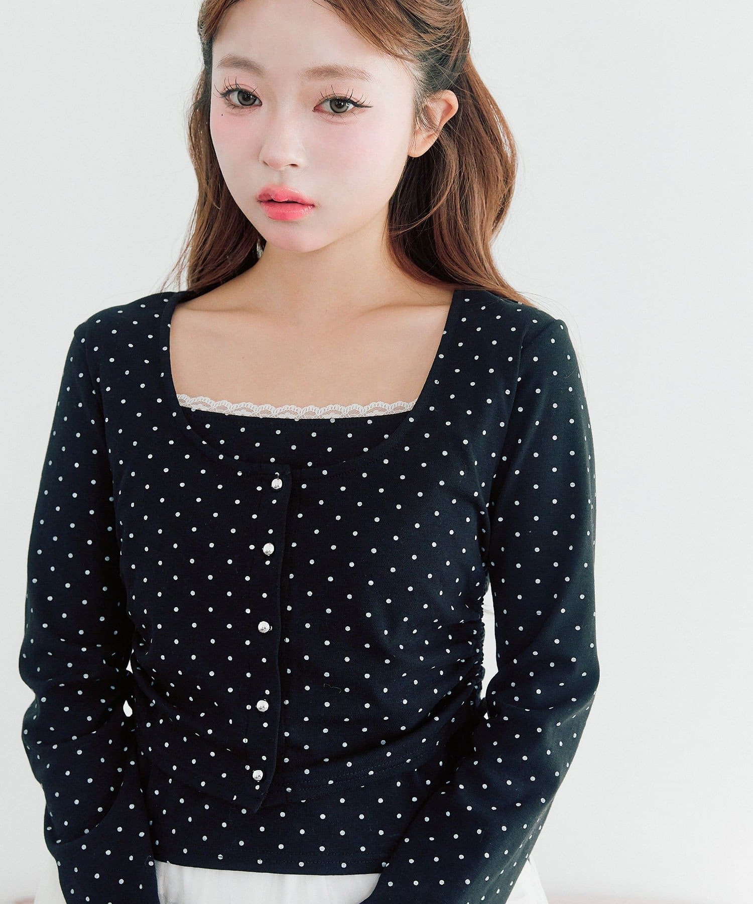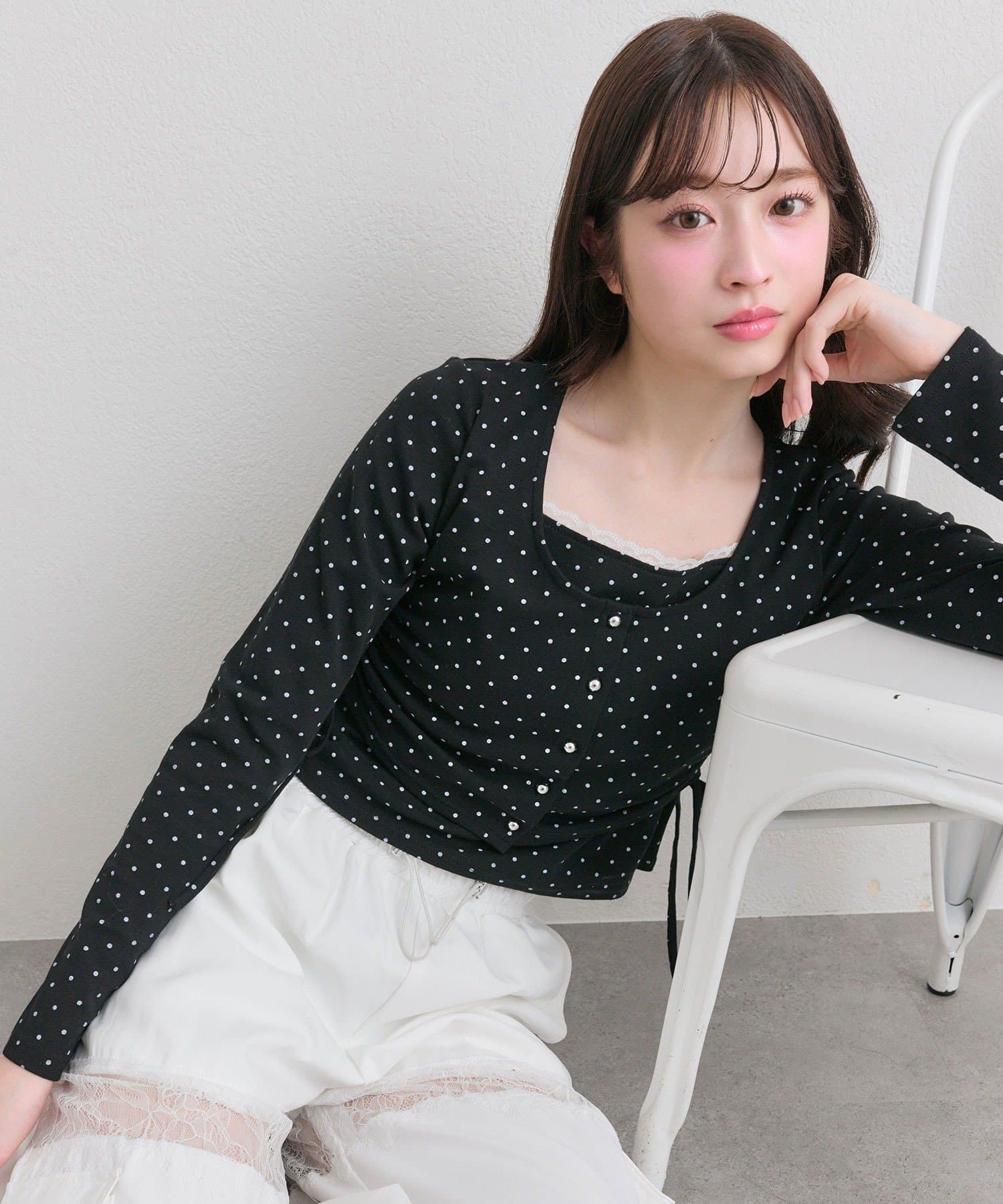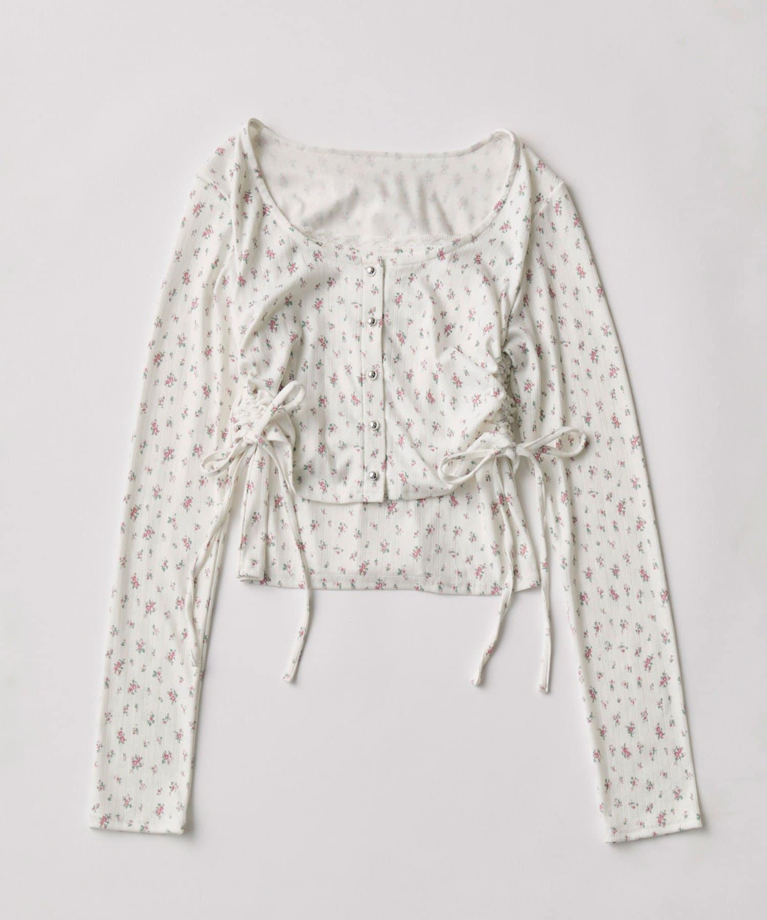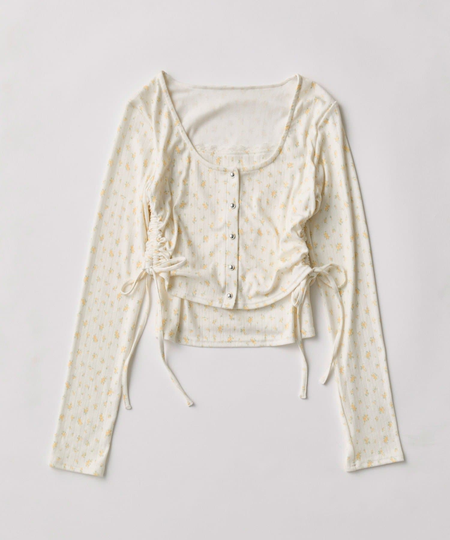 ・インナーにカーディガンを羽織ったように見えるレイヤード風デザイン。