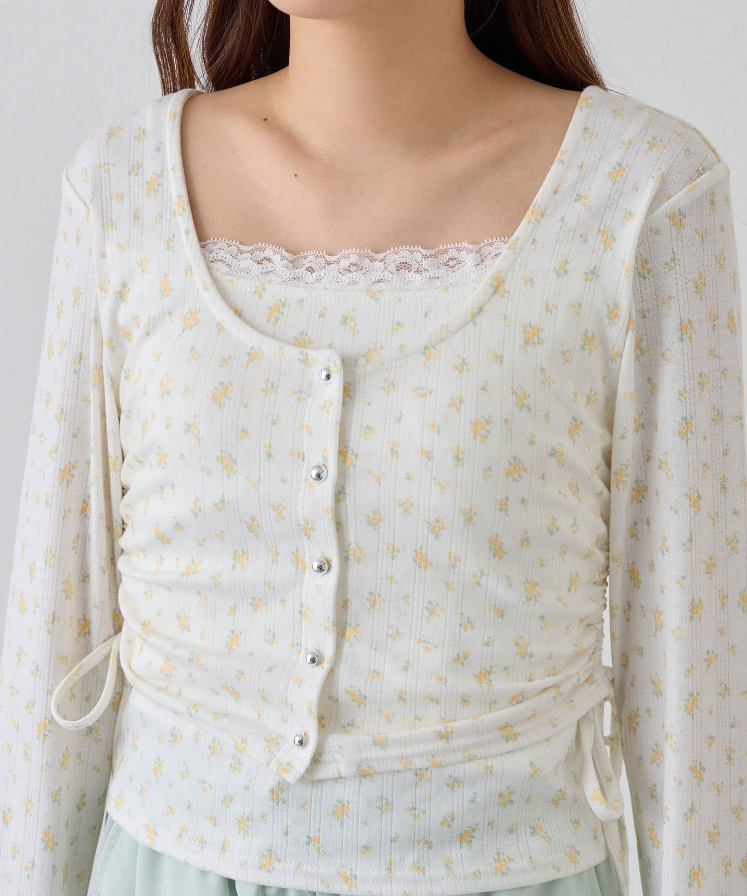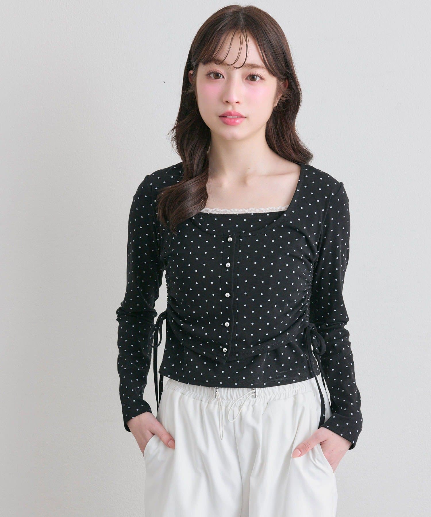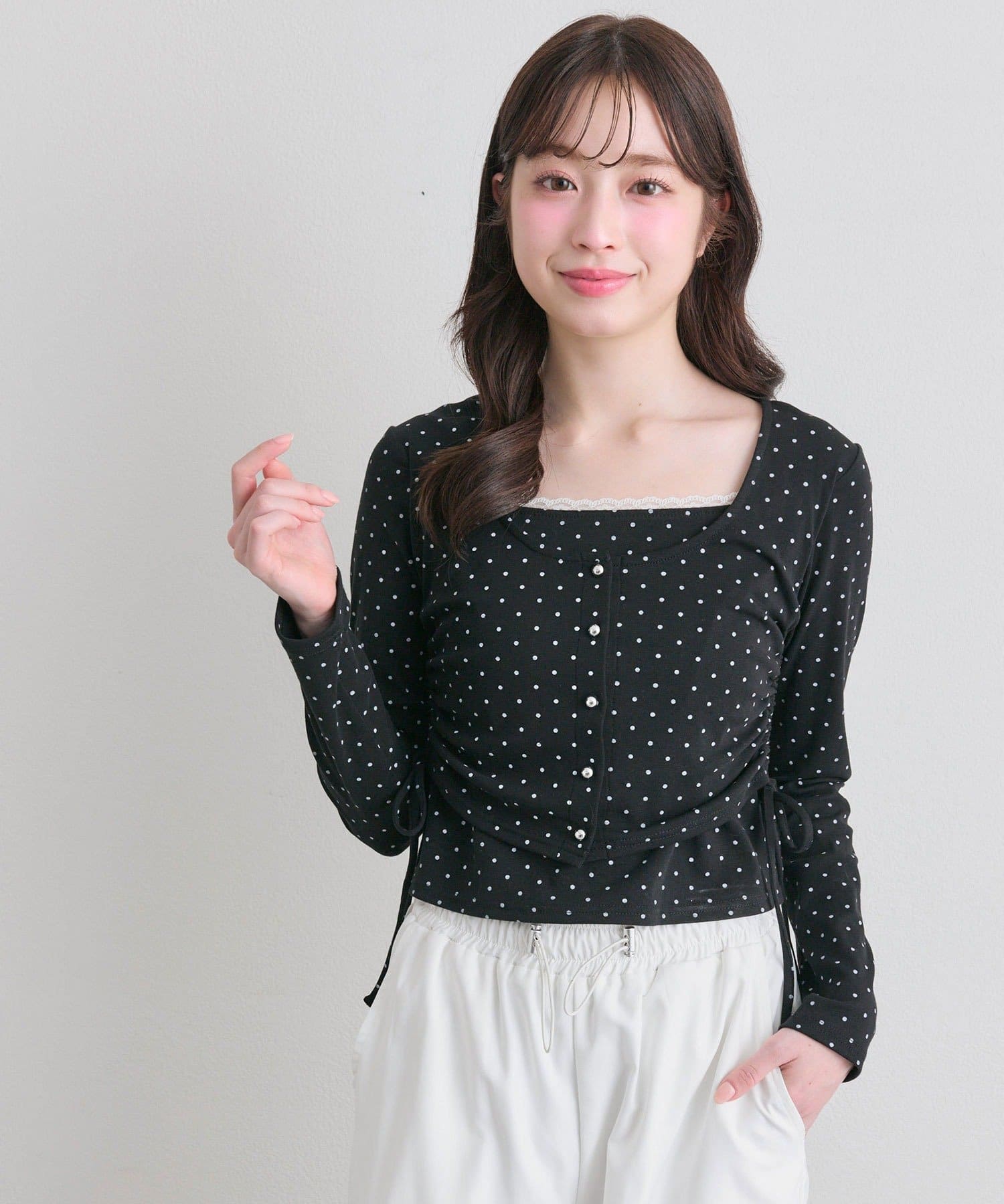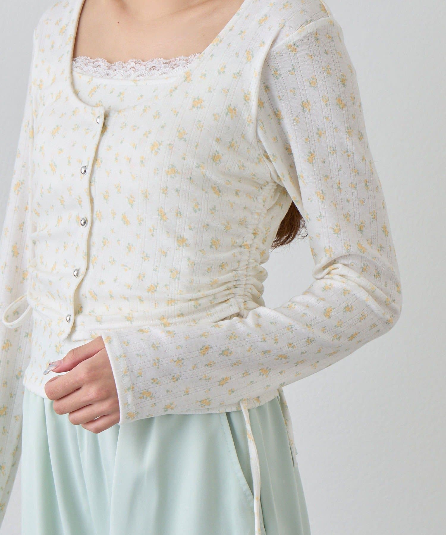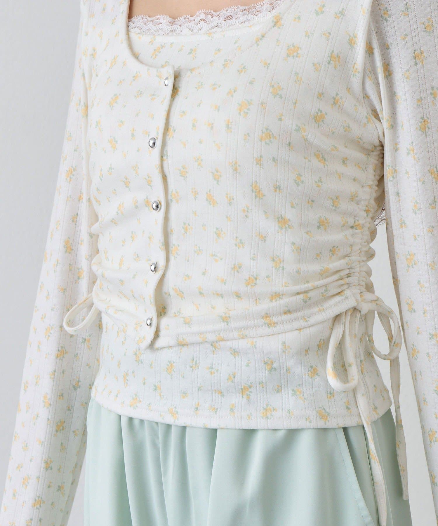 ・カーデ部分のドロストコードでシルエットを調整でき、スタイルアップも叶います。