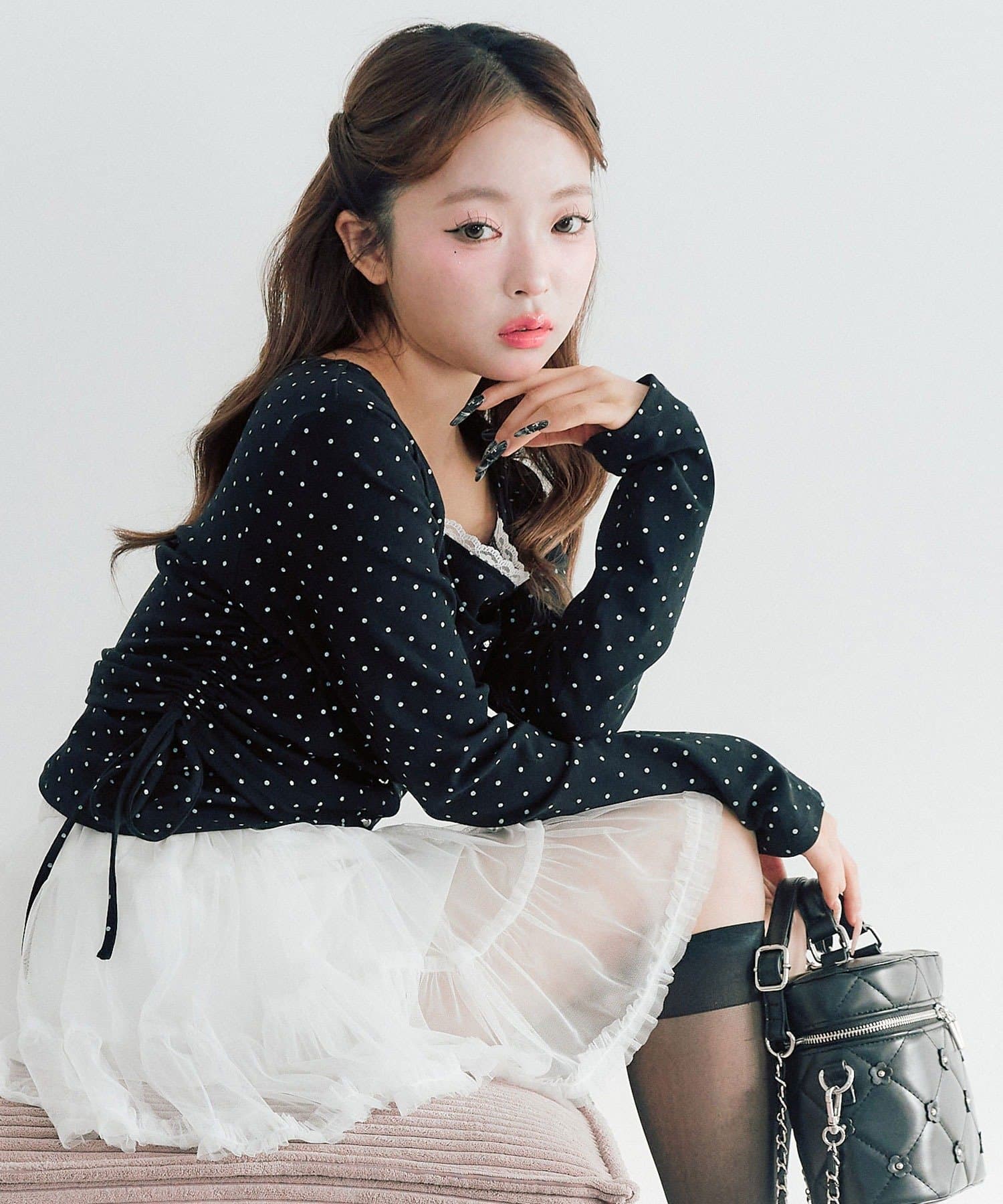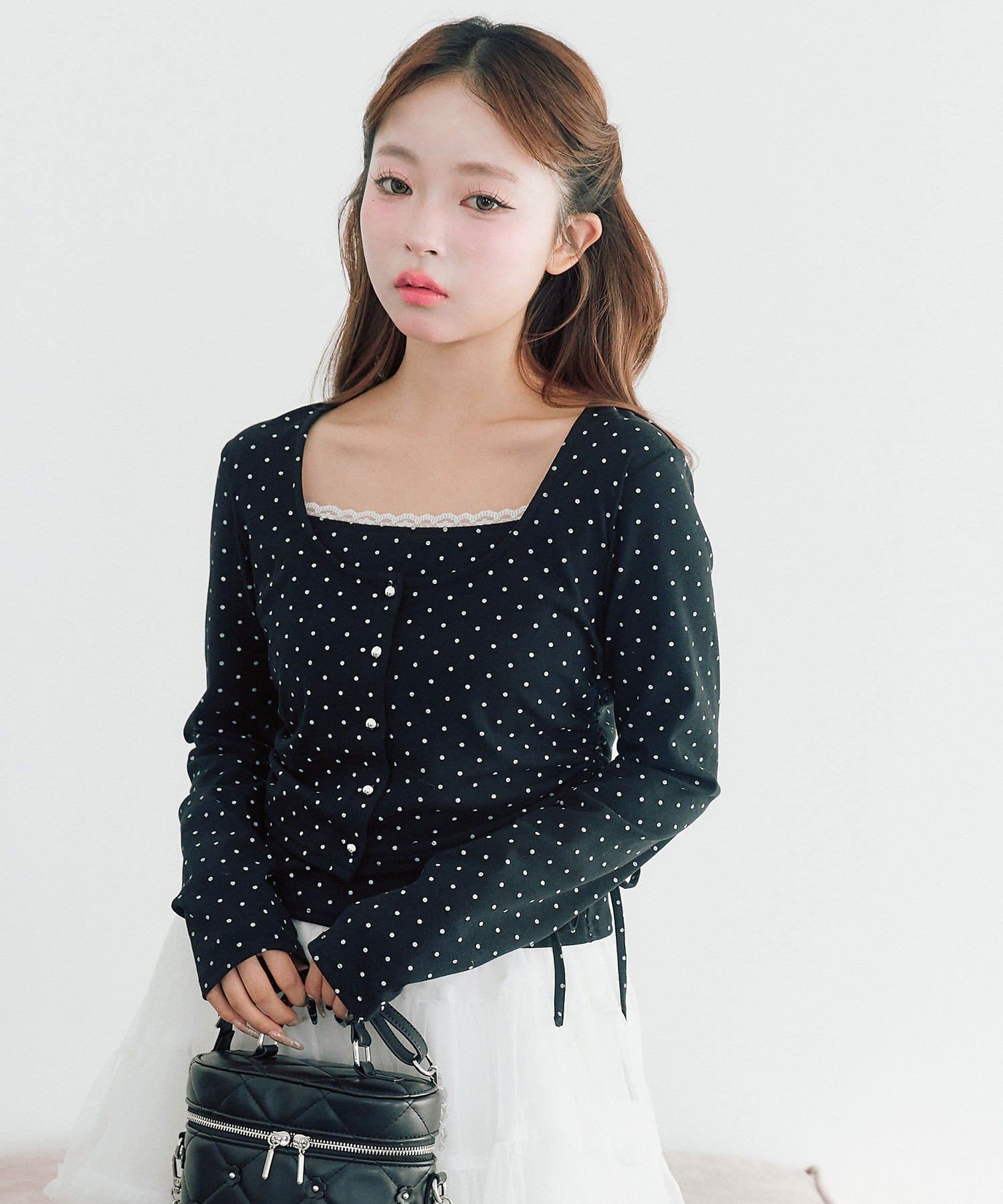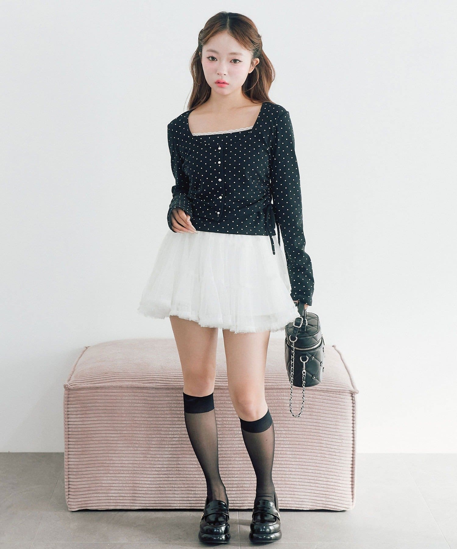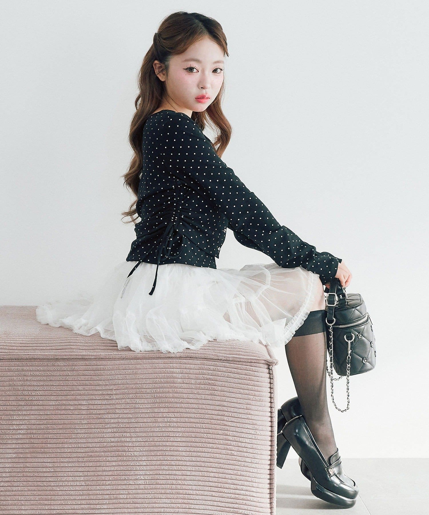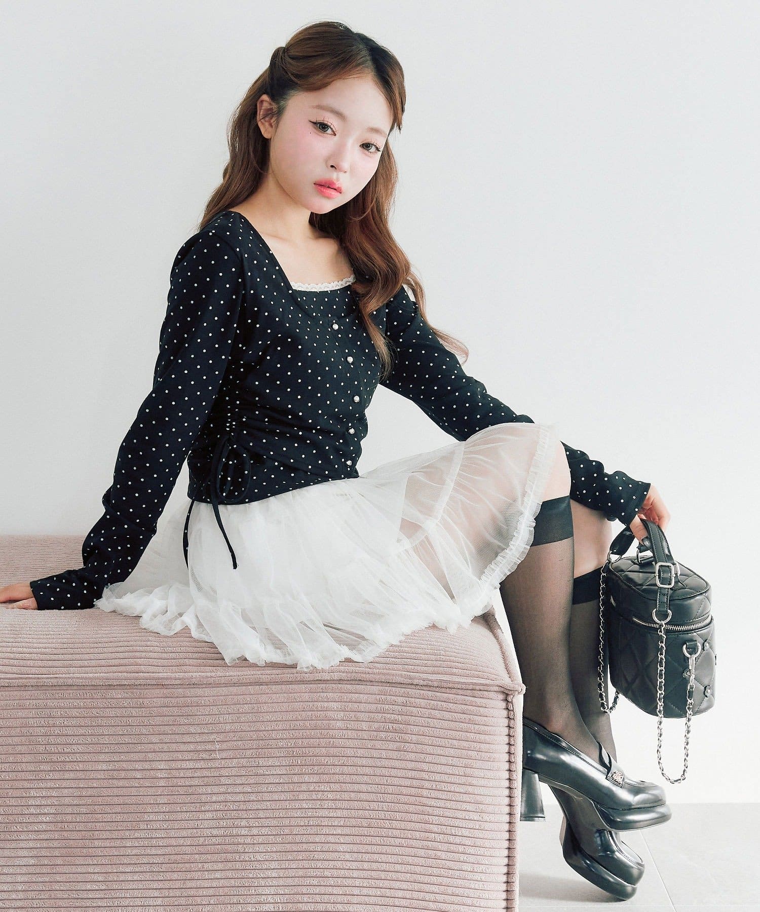 ・スカート合わせでガーリーにまとめてもかわいいです。
