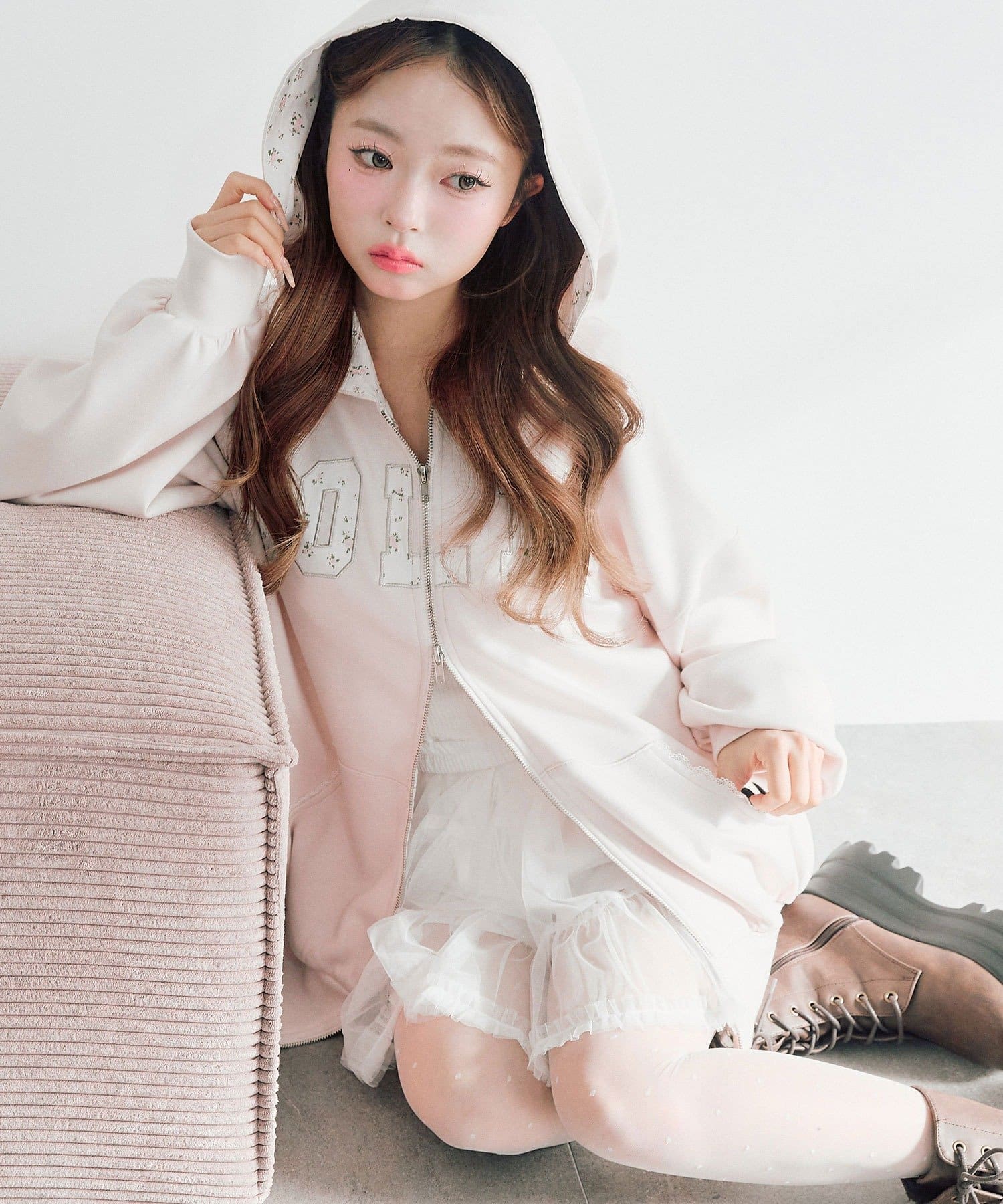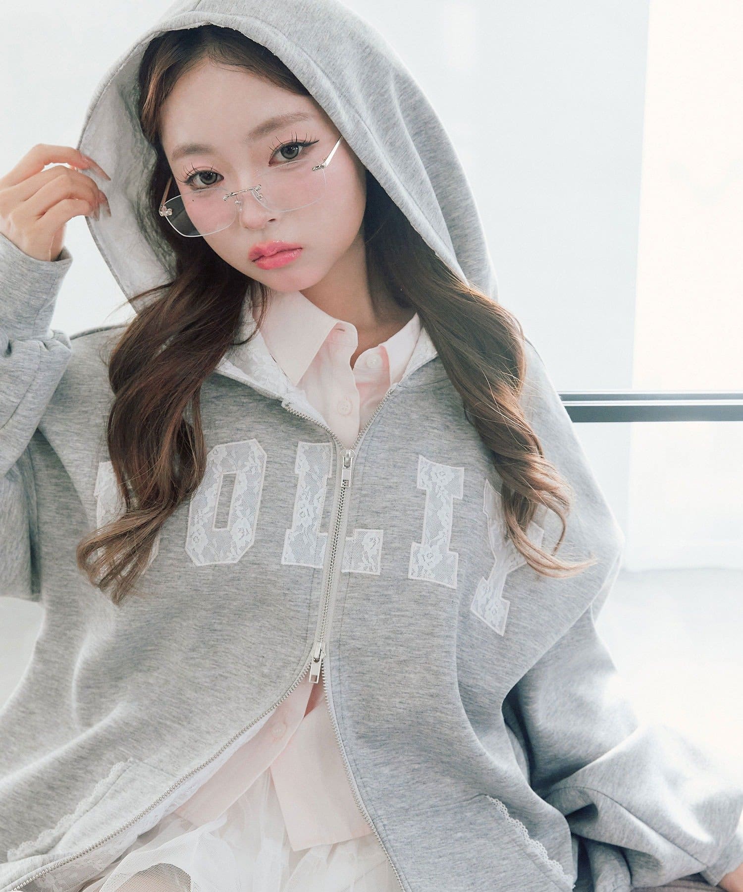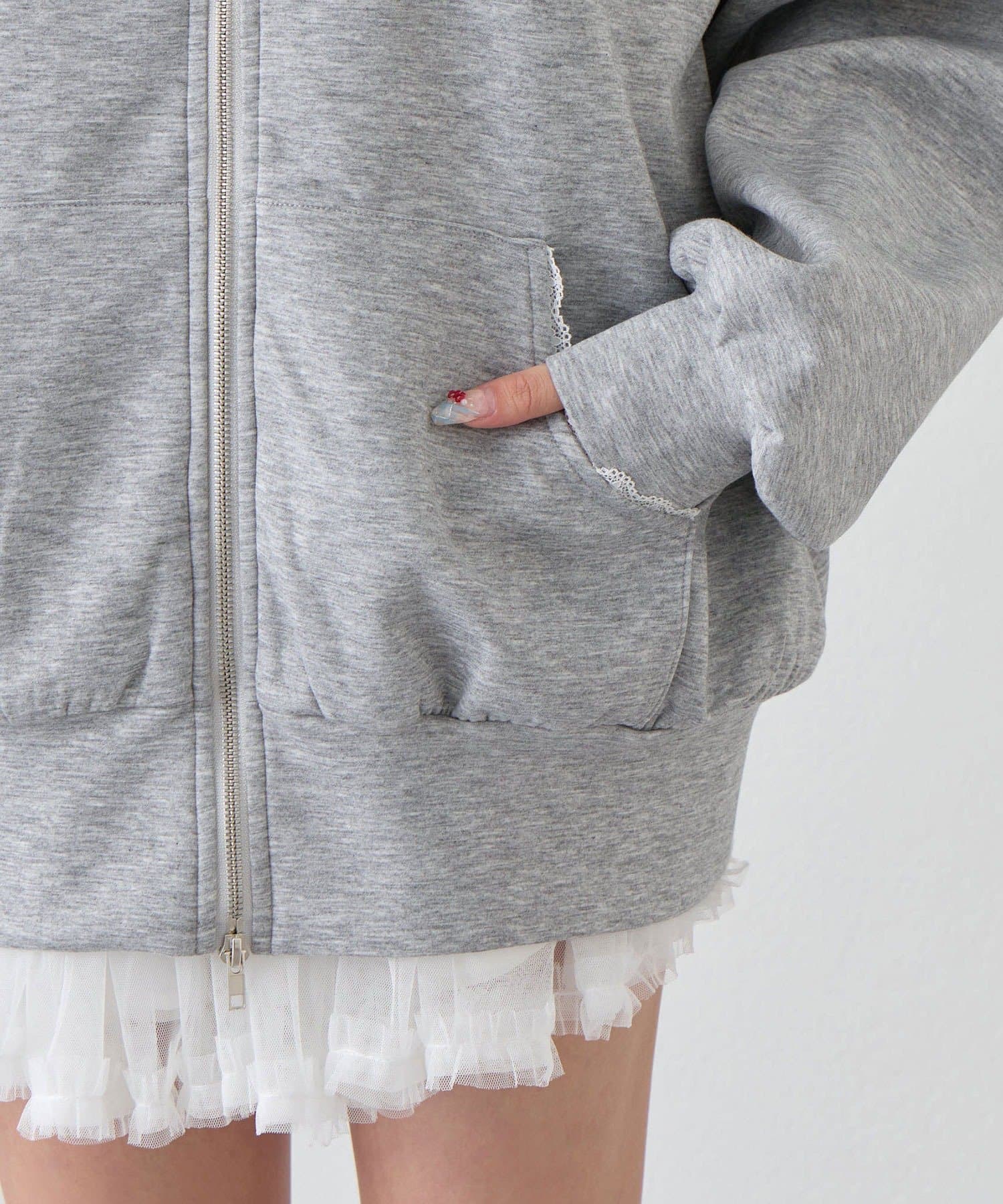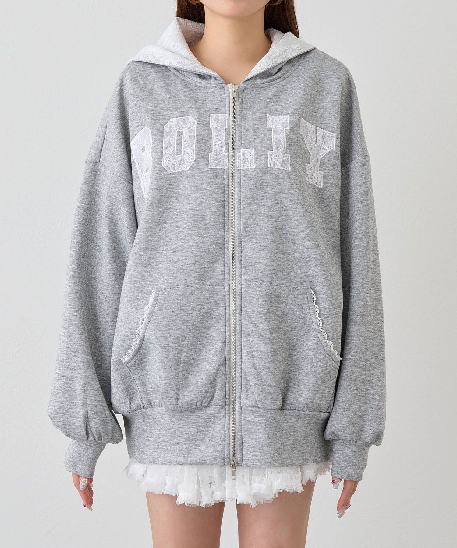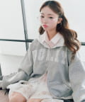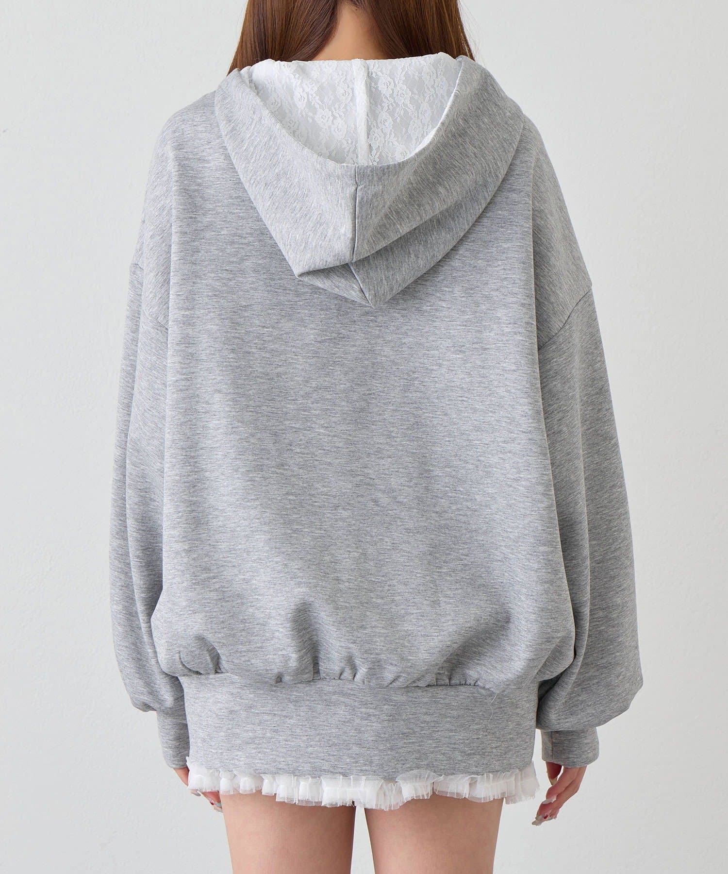 カジュアルに甘さをプラスしたパーカー