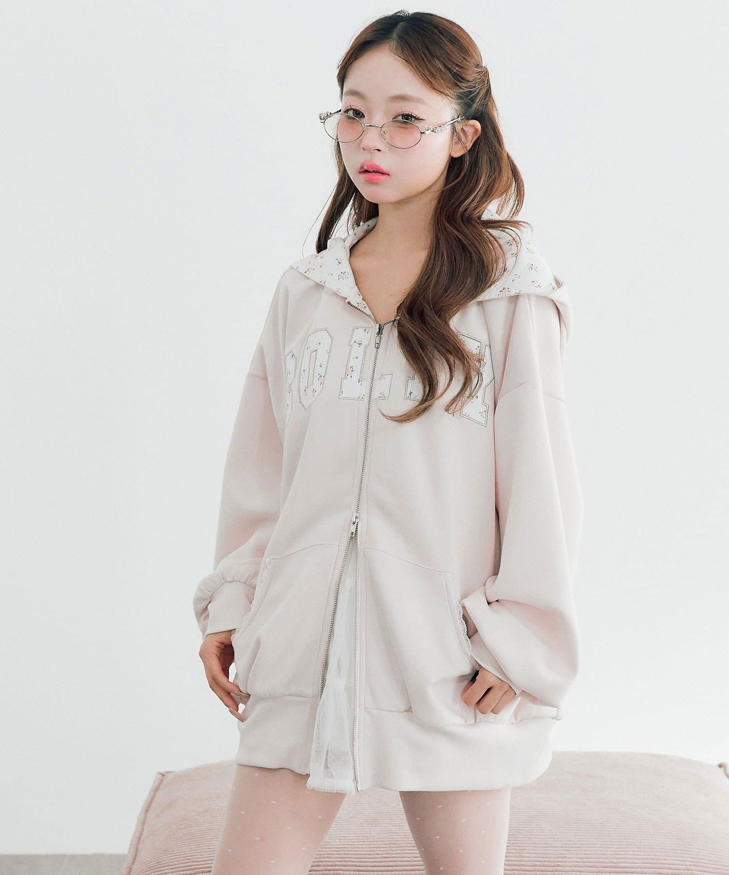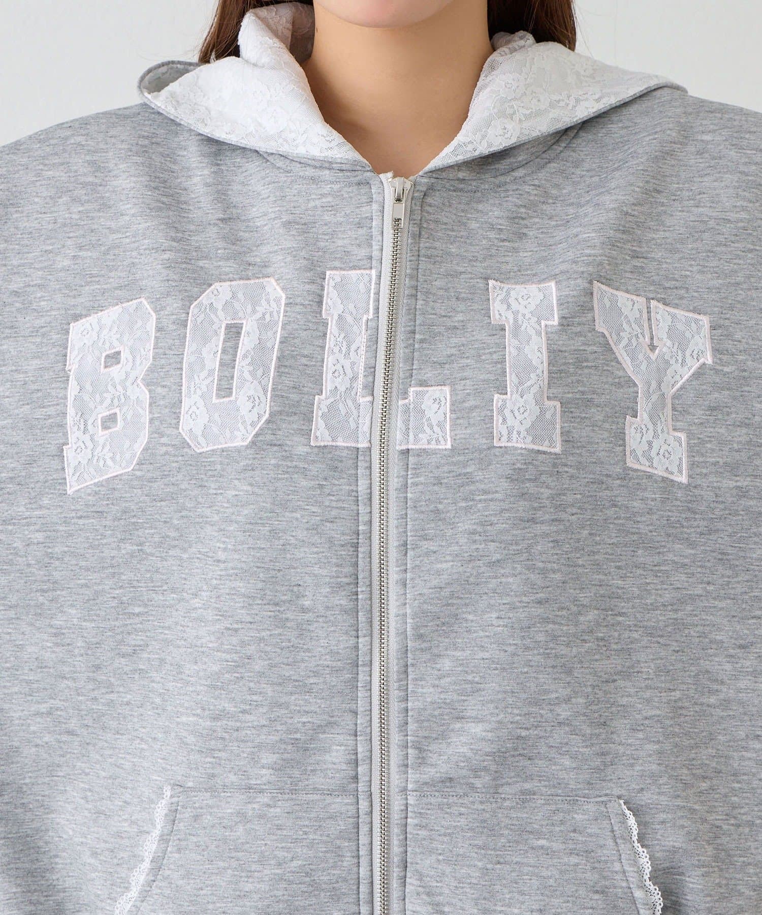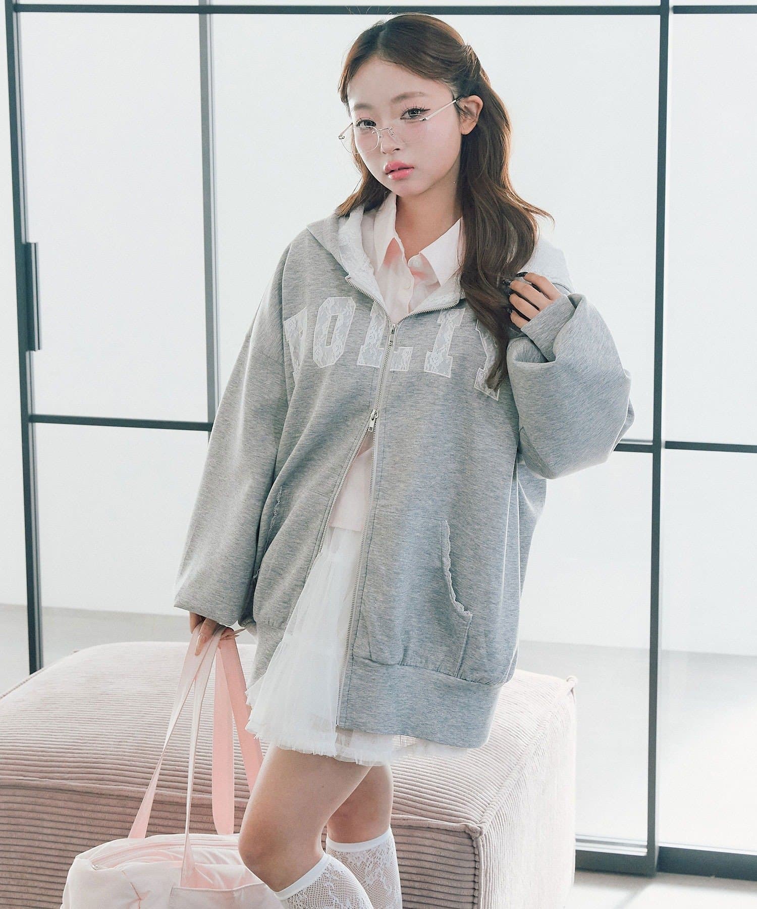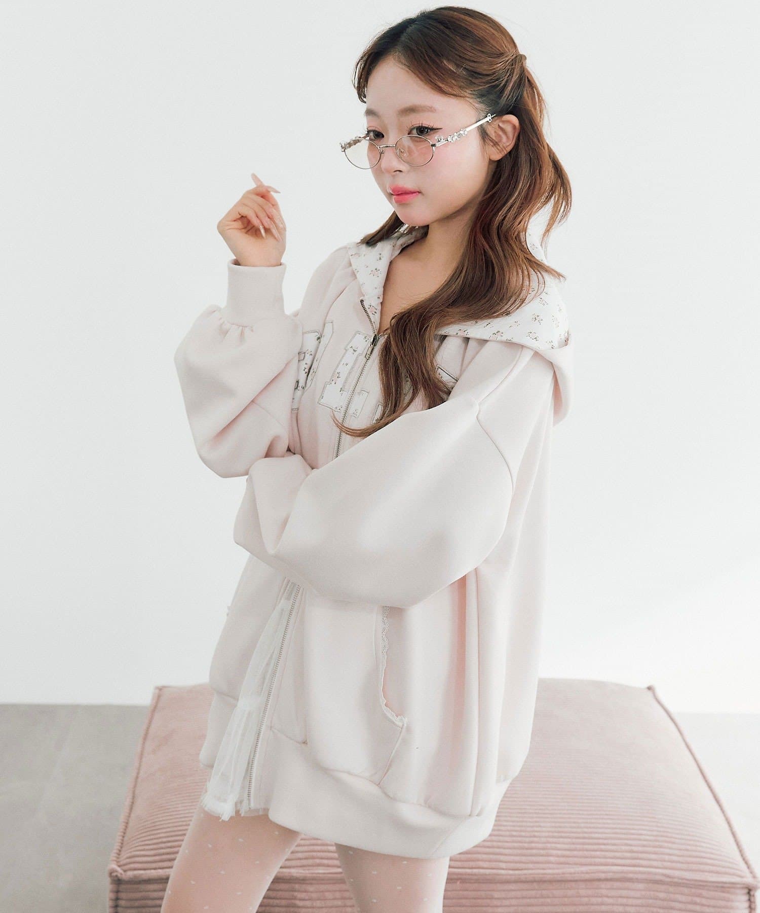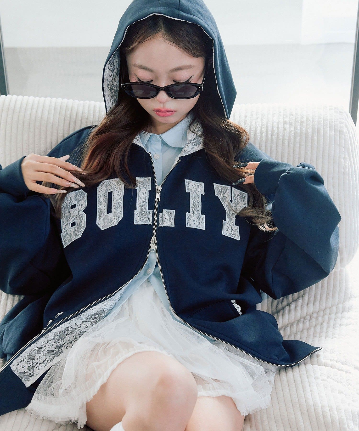 カジュアルに甘さをプラスしたパーカー