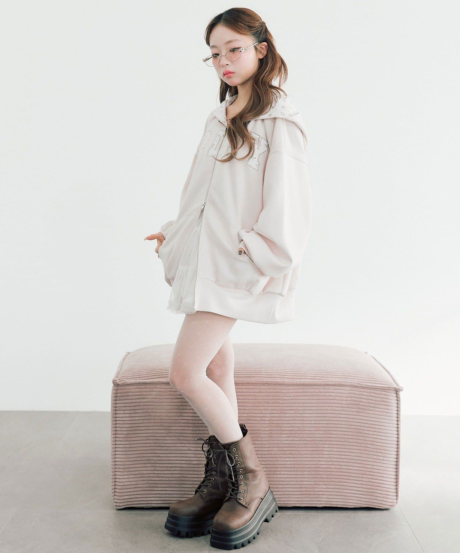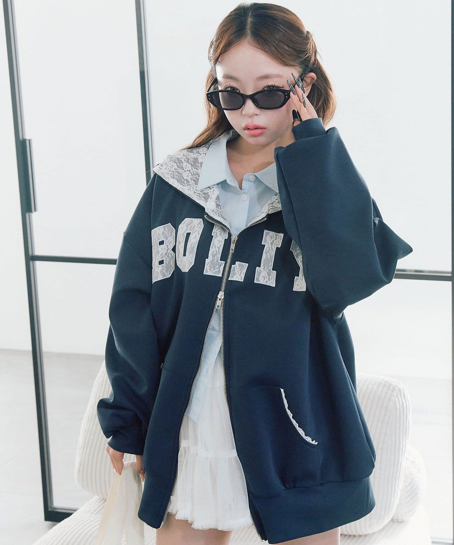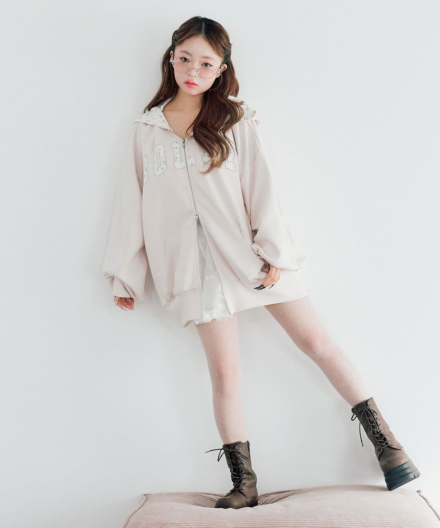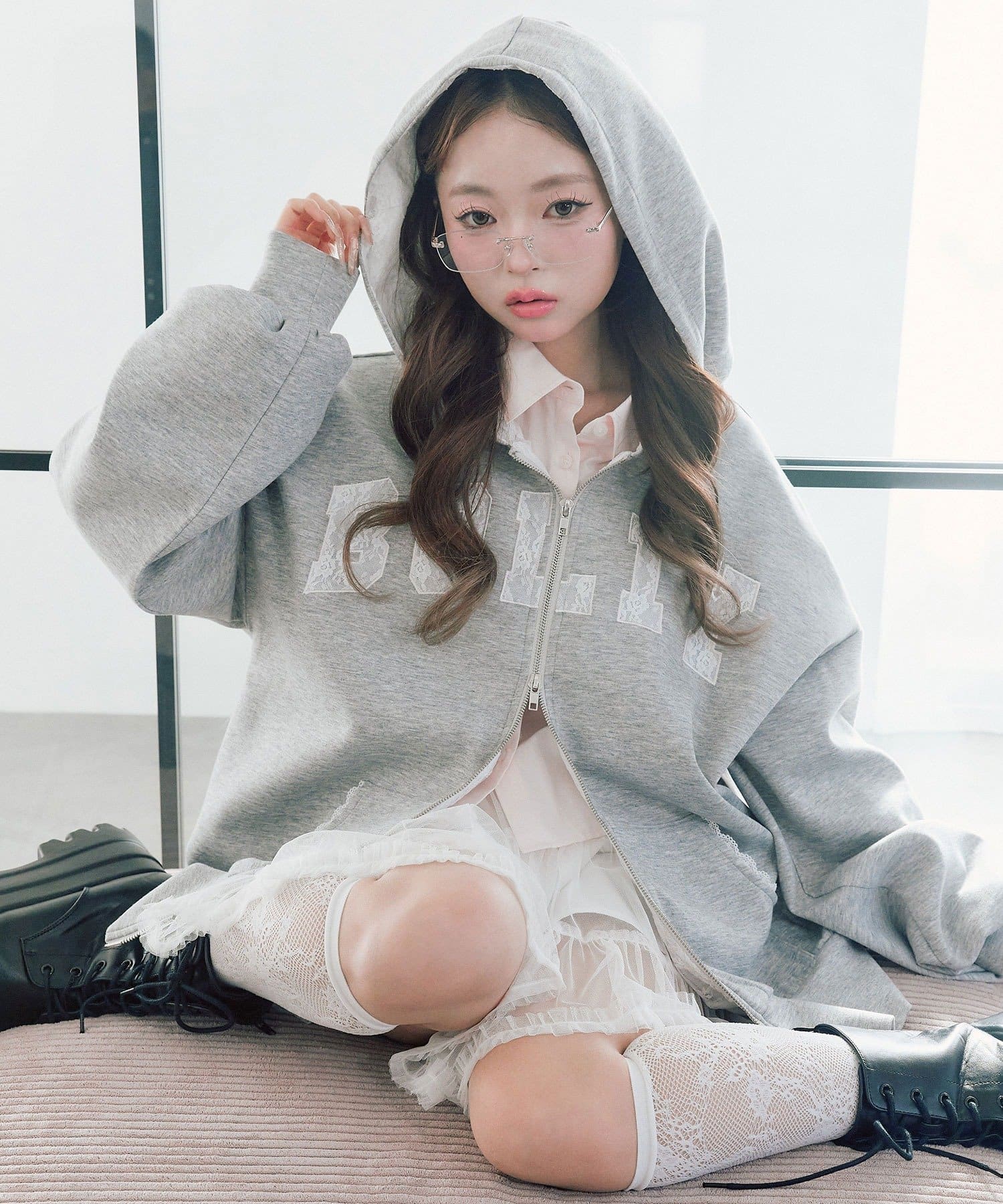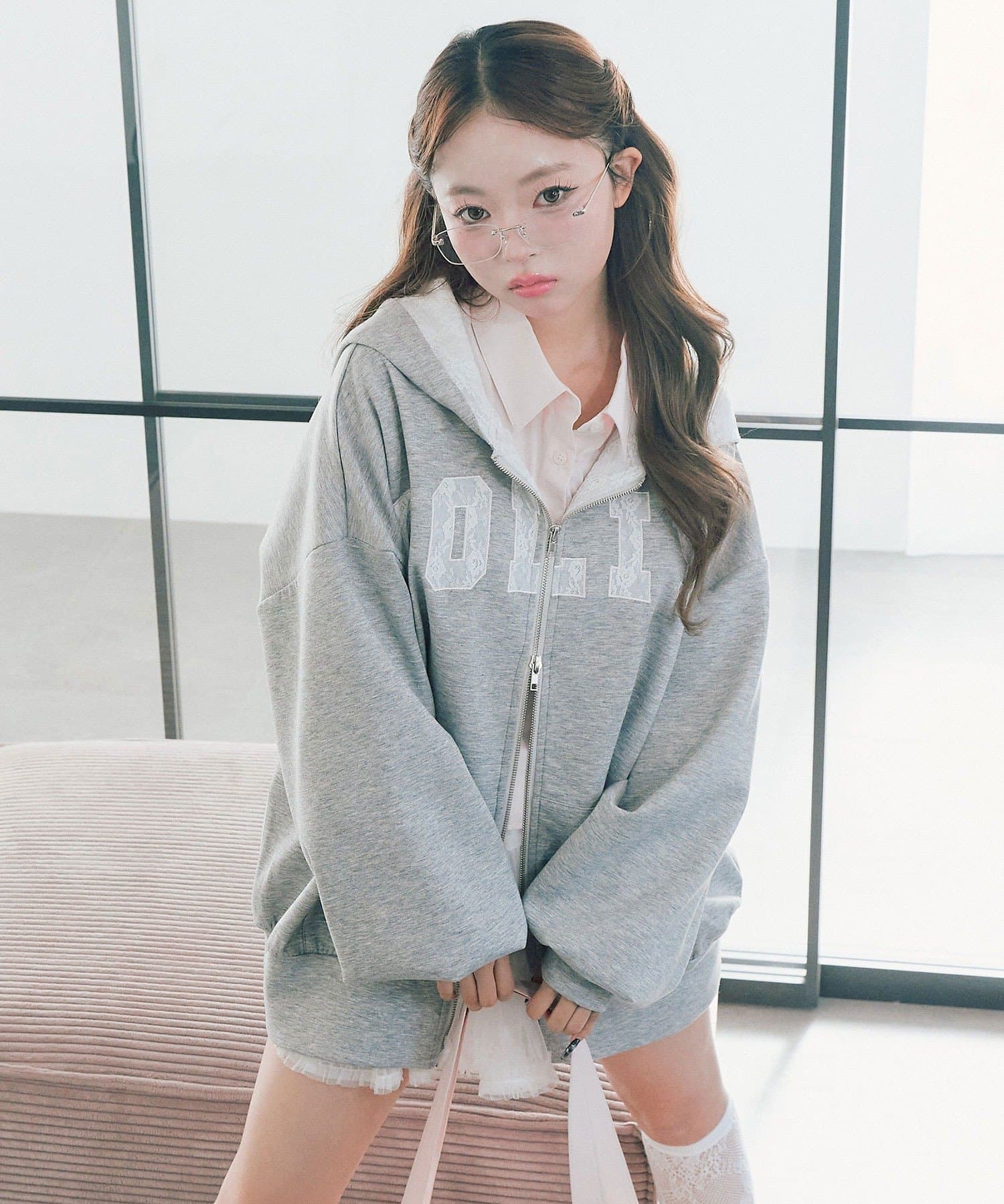 カジュアルに甘さをプラスしたパーカー