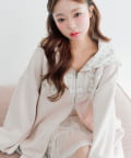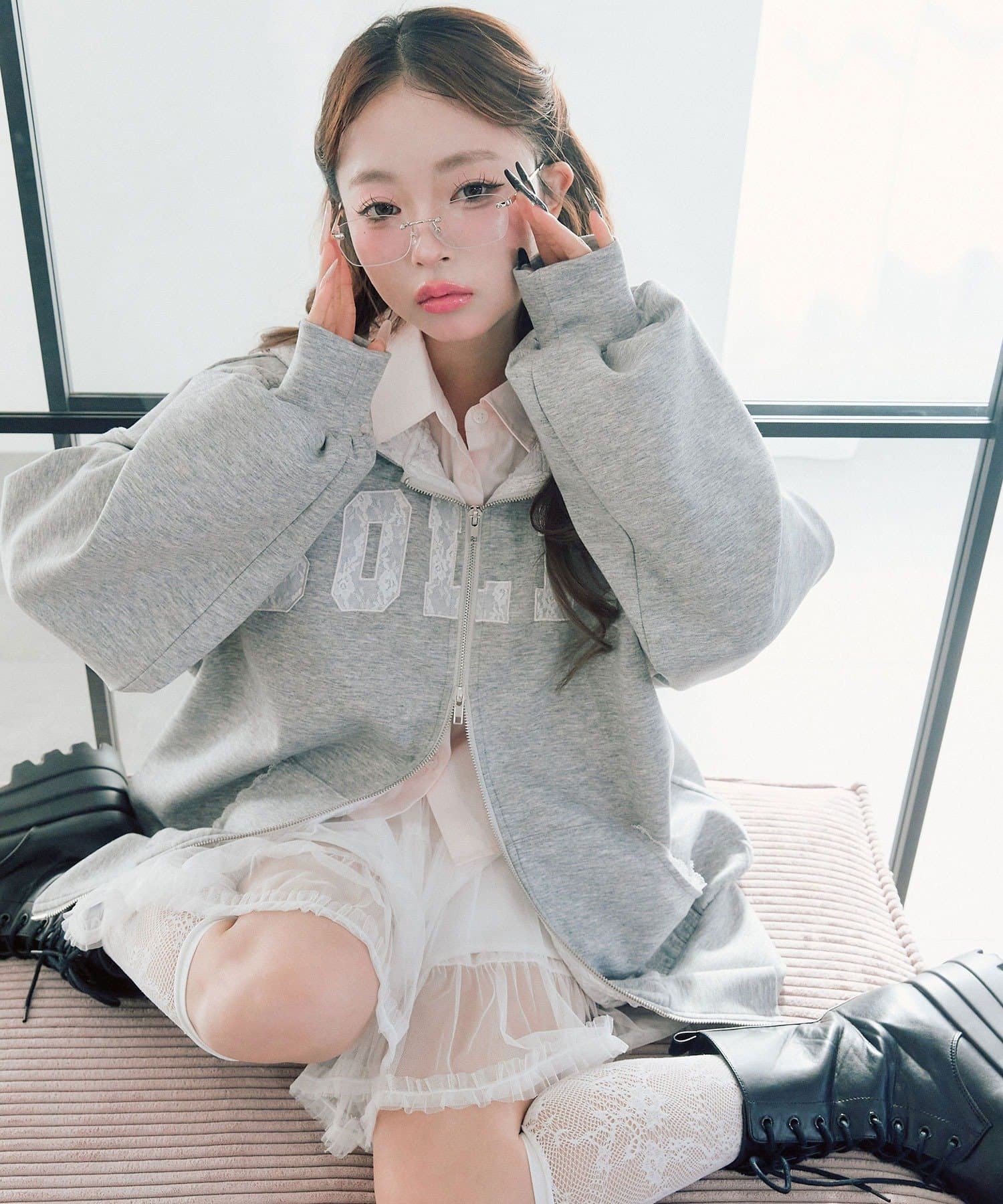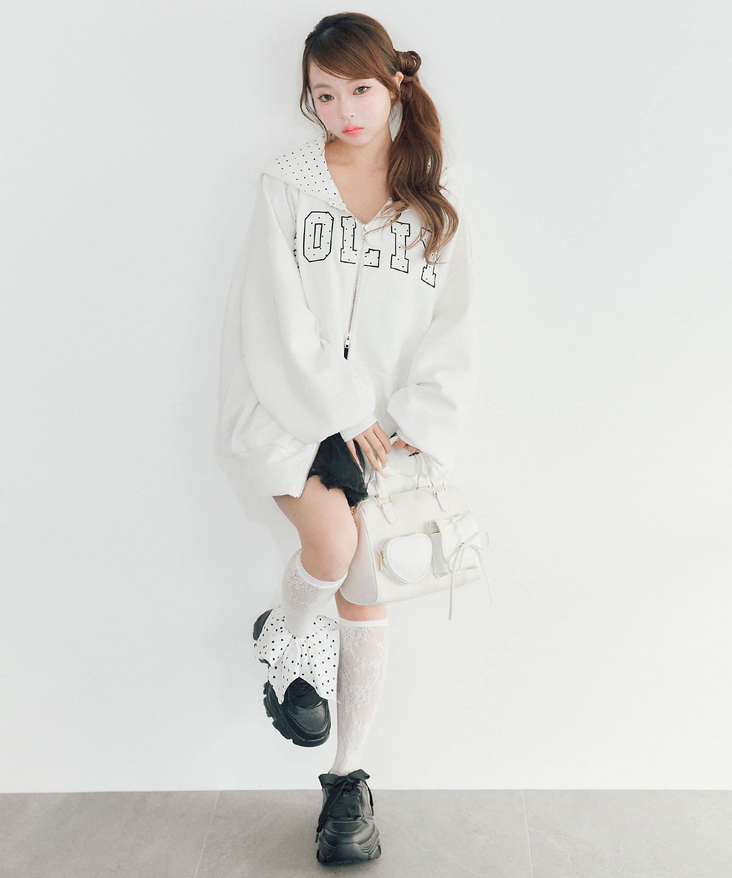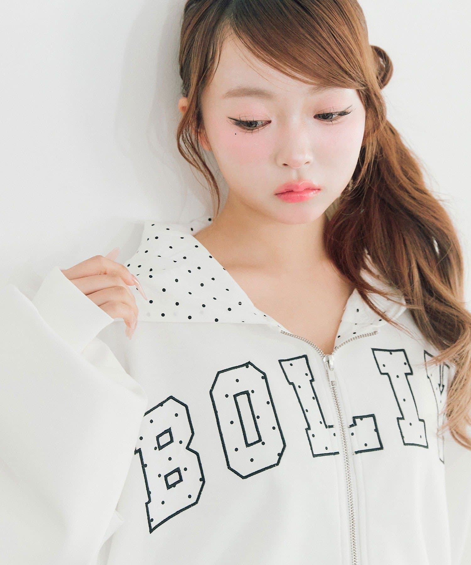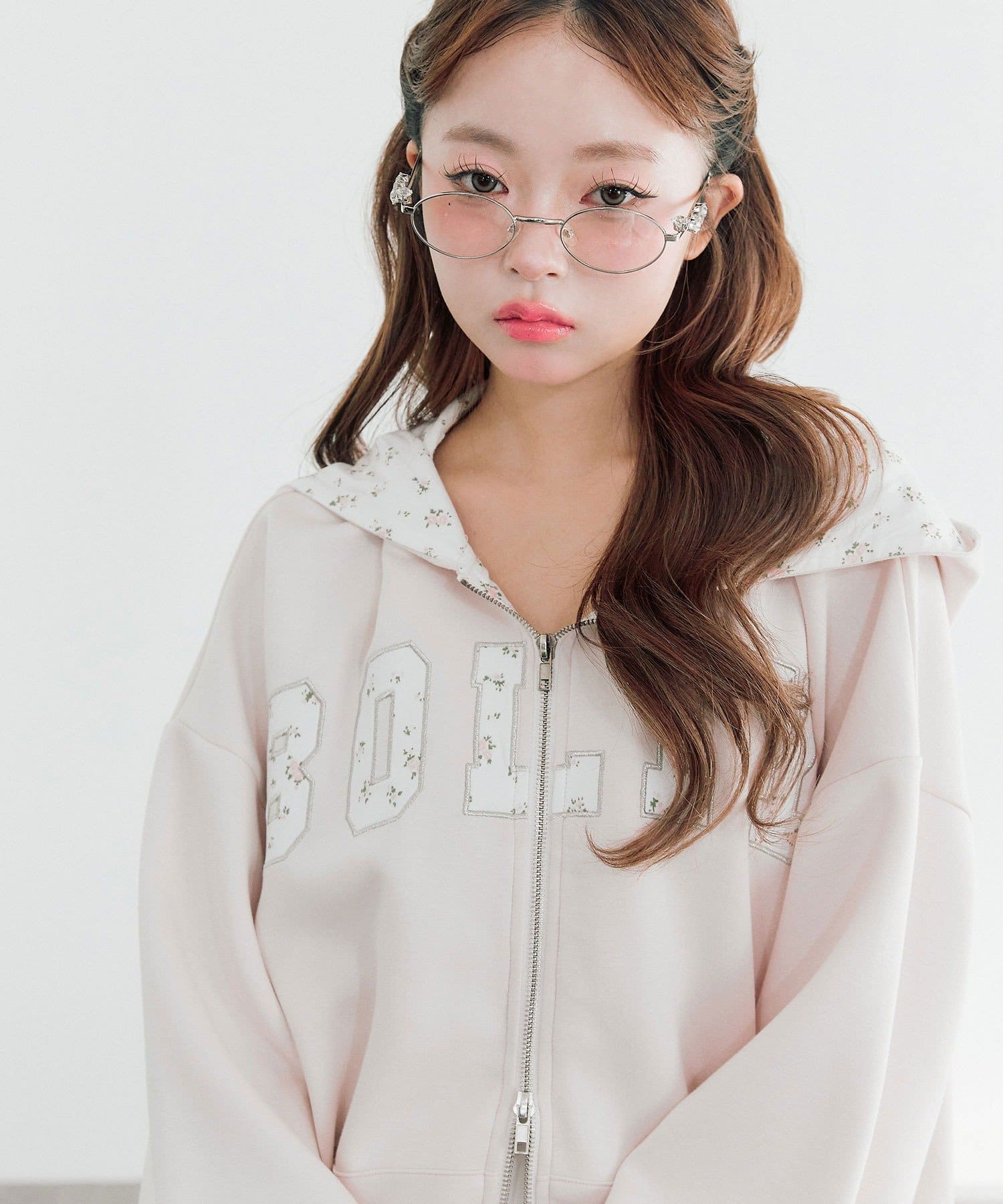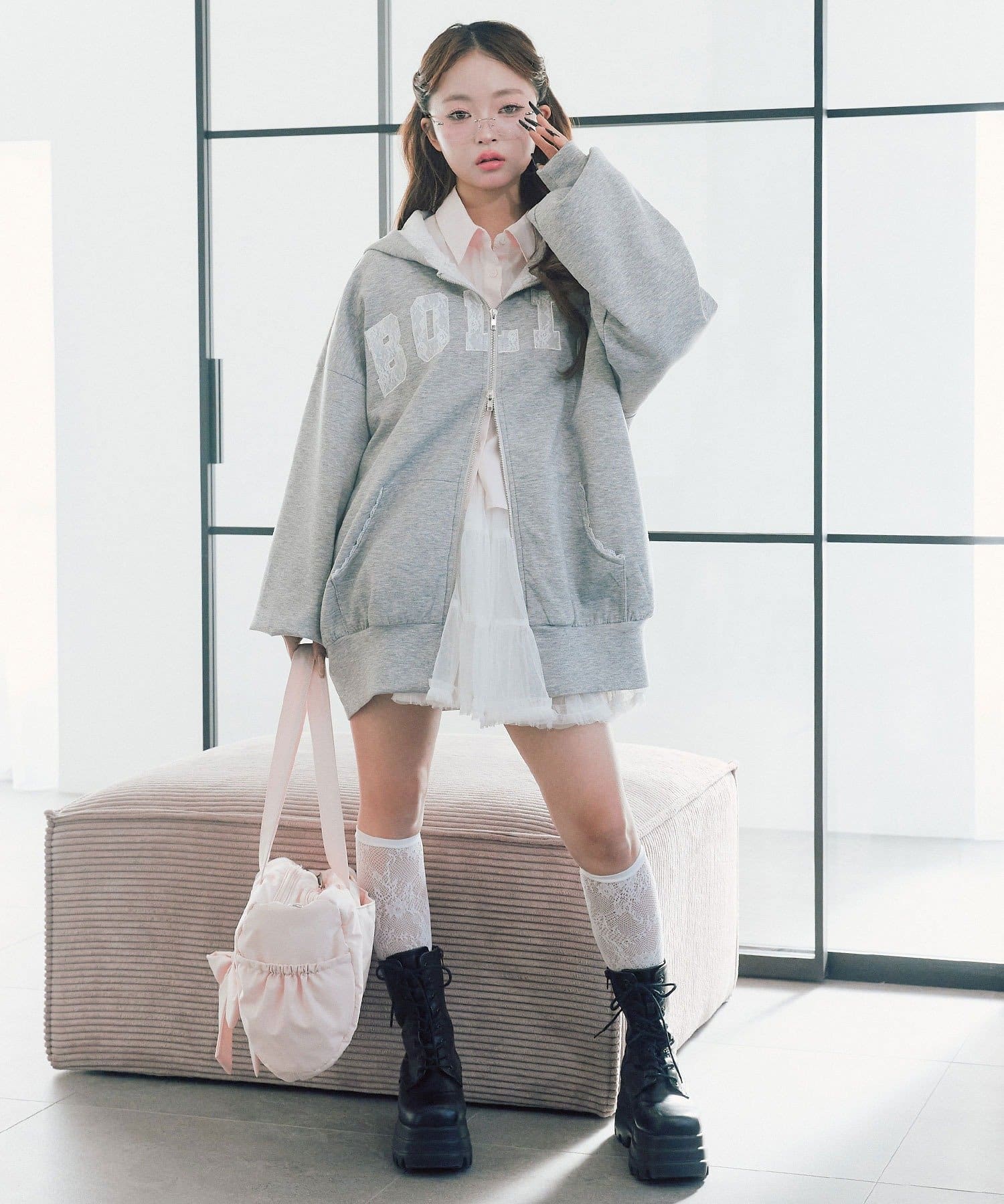 カジュアルに甘さをプラスしたパーカー
