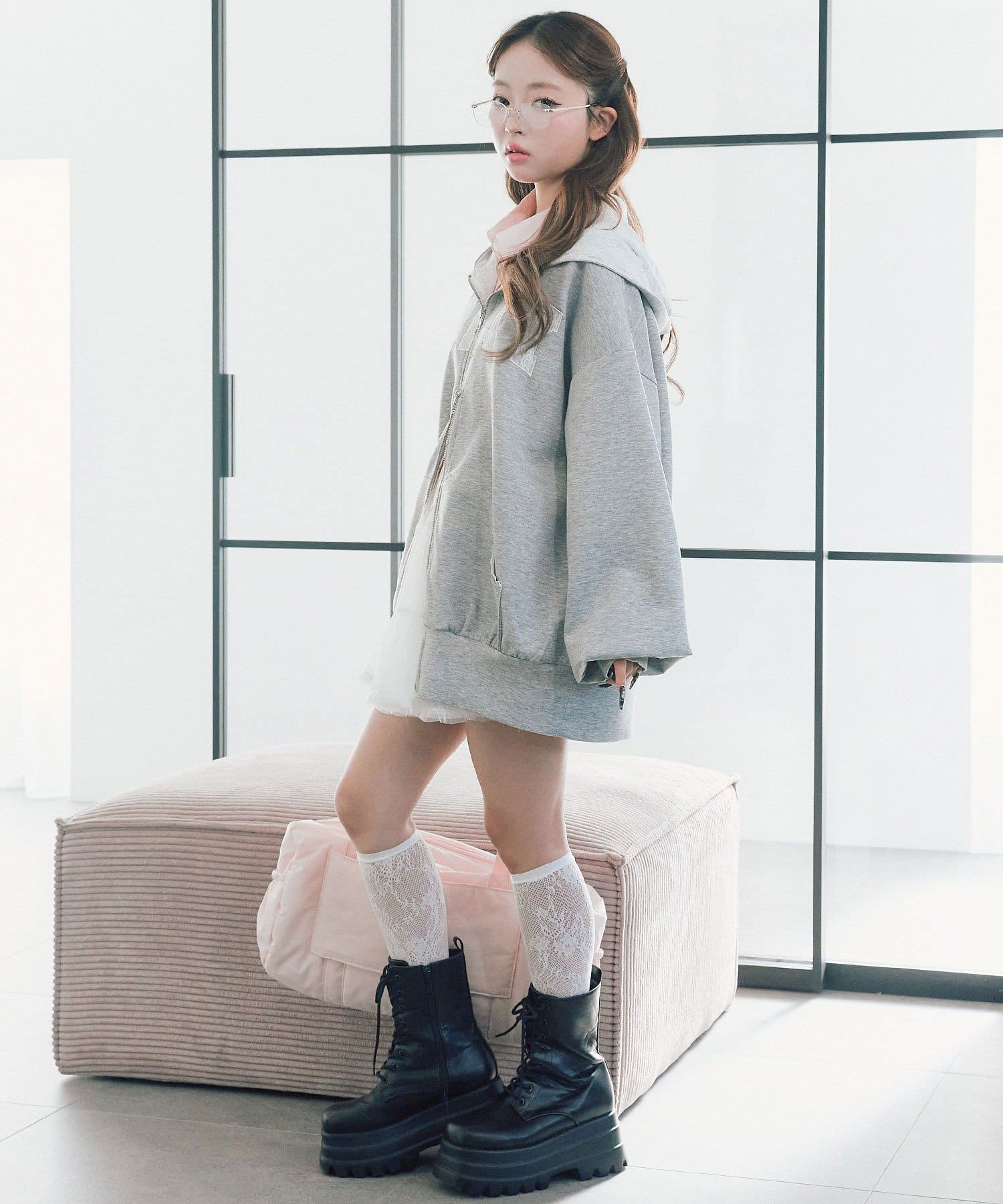 ・ミニ丈のボトムを合わせてすっぽり着るのがおすすめ。