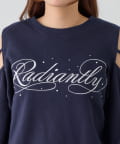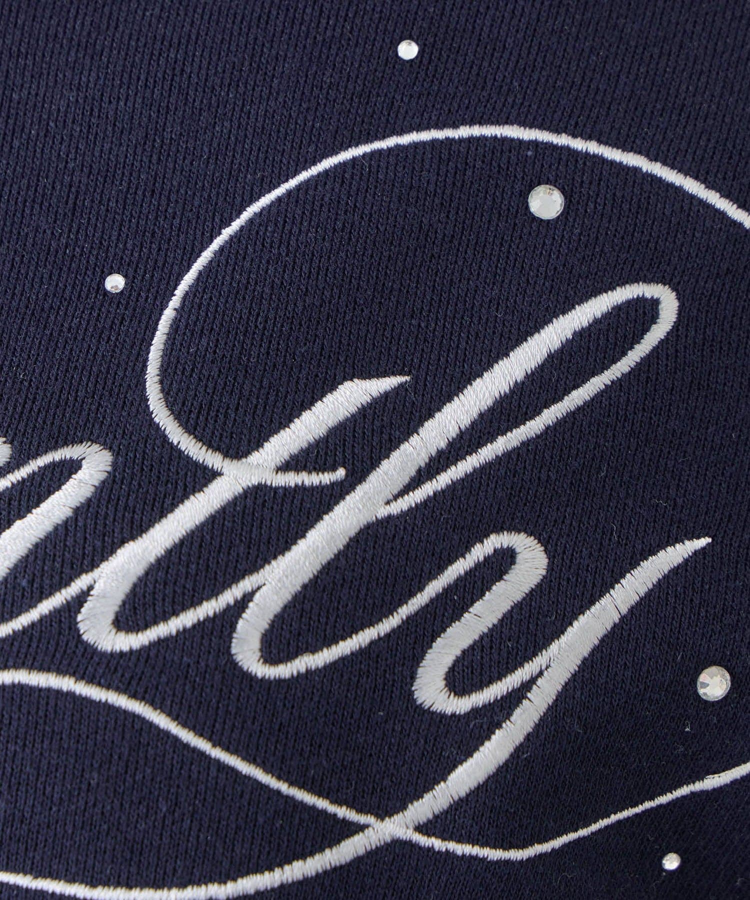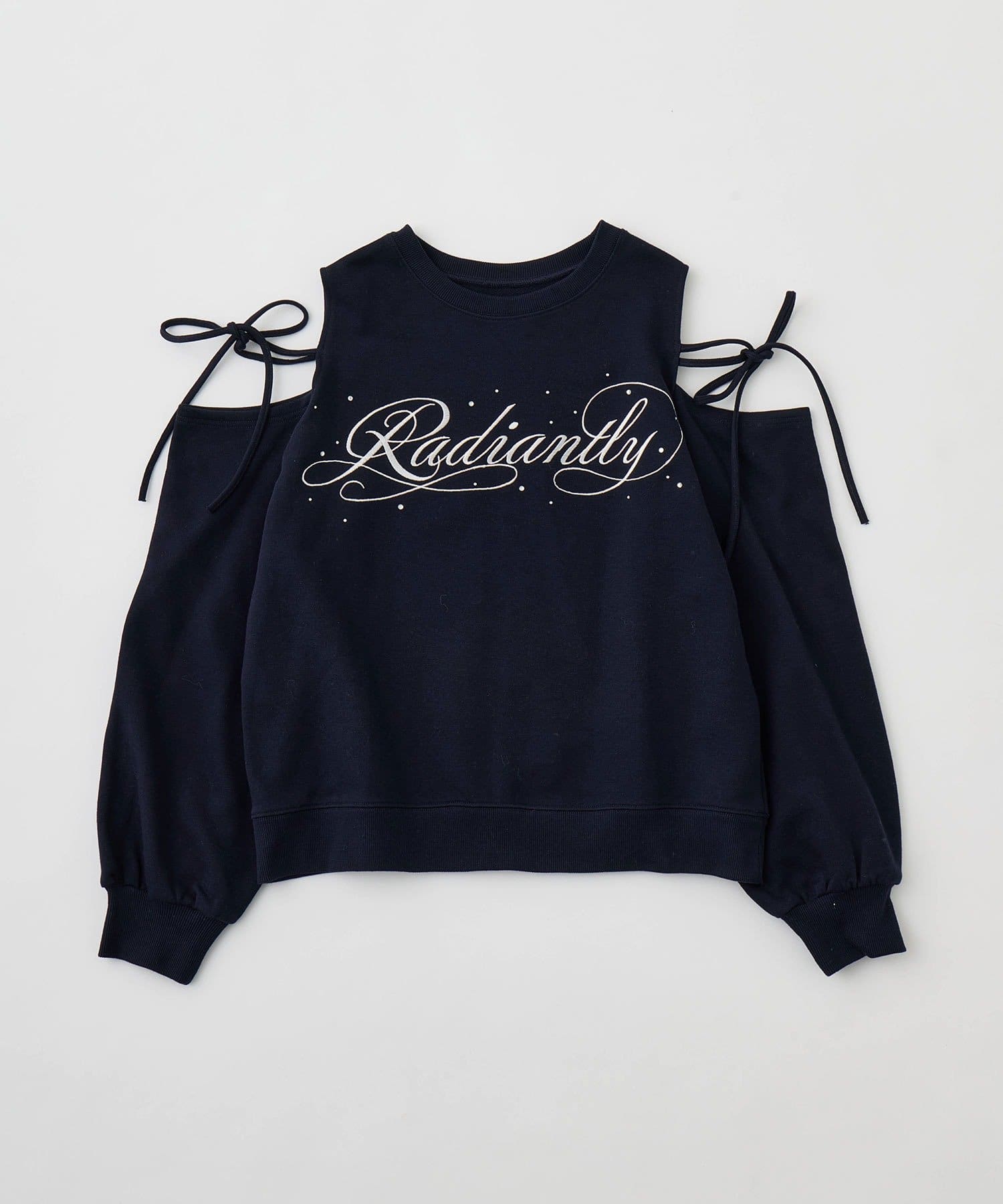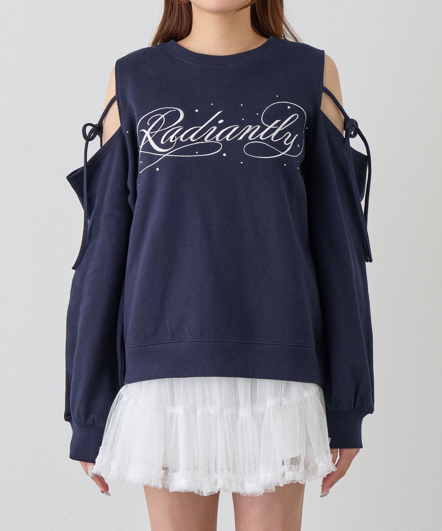 ・キラキラのストーンや肩のリボンが、カジュアルの中に女の子らしい甘さをプラスします。