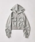 袖ドロストリボンコンパクトパーカー