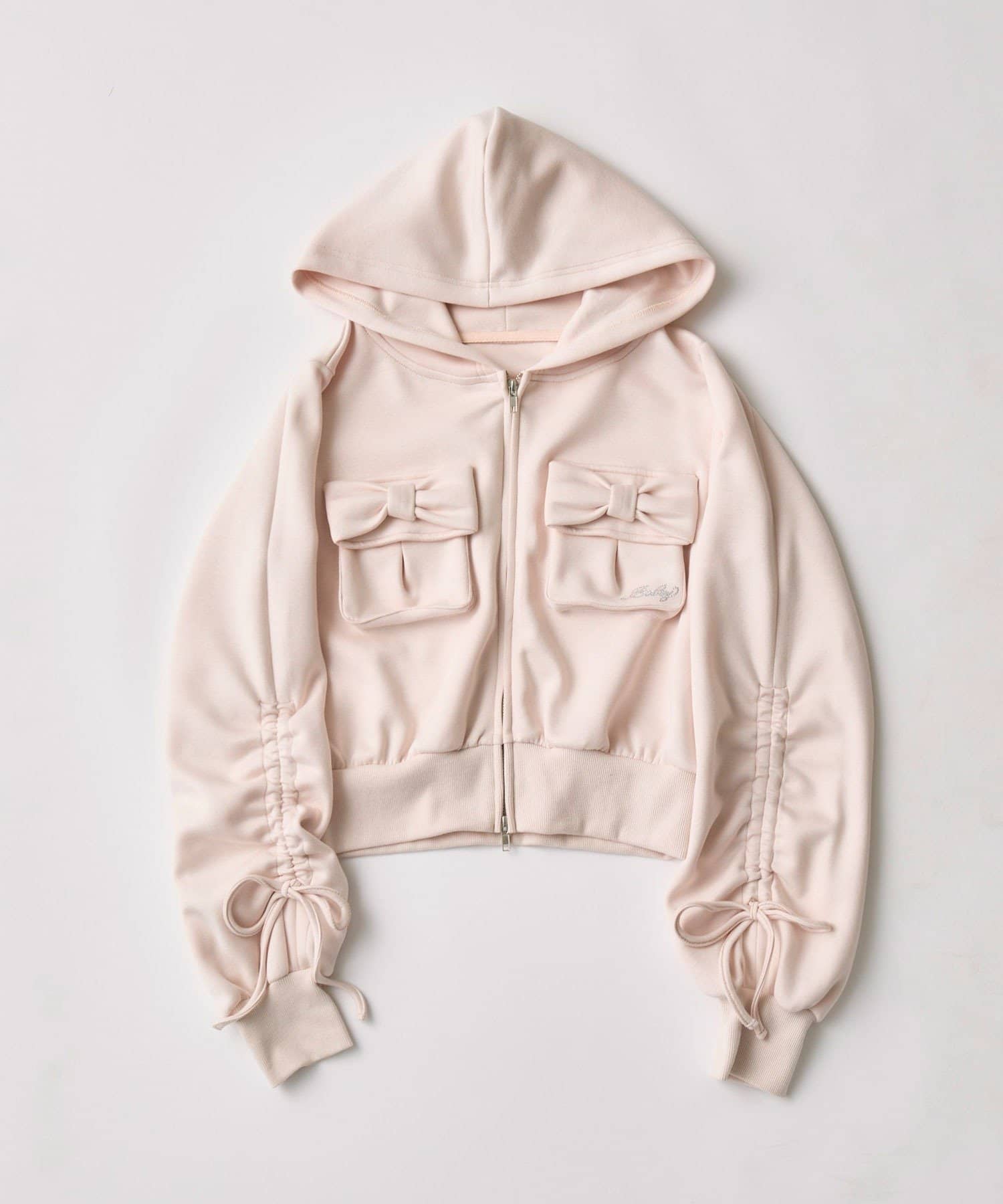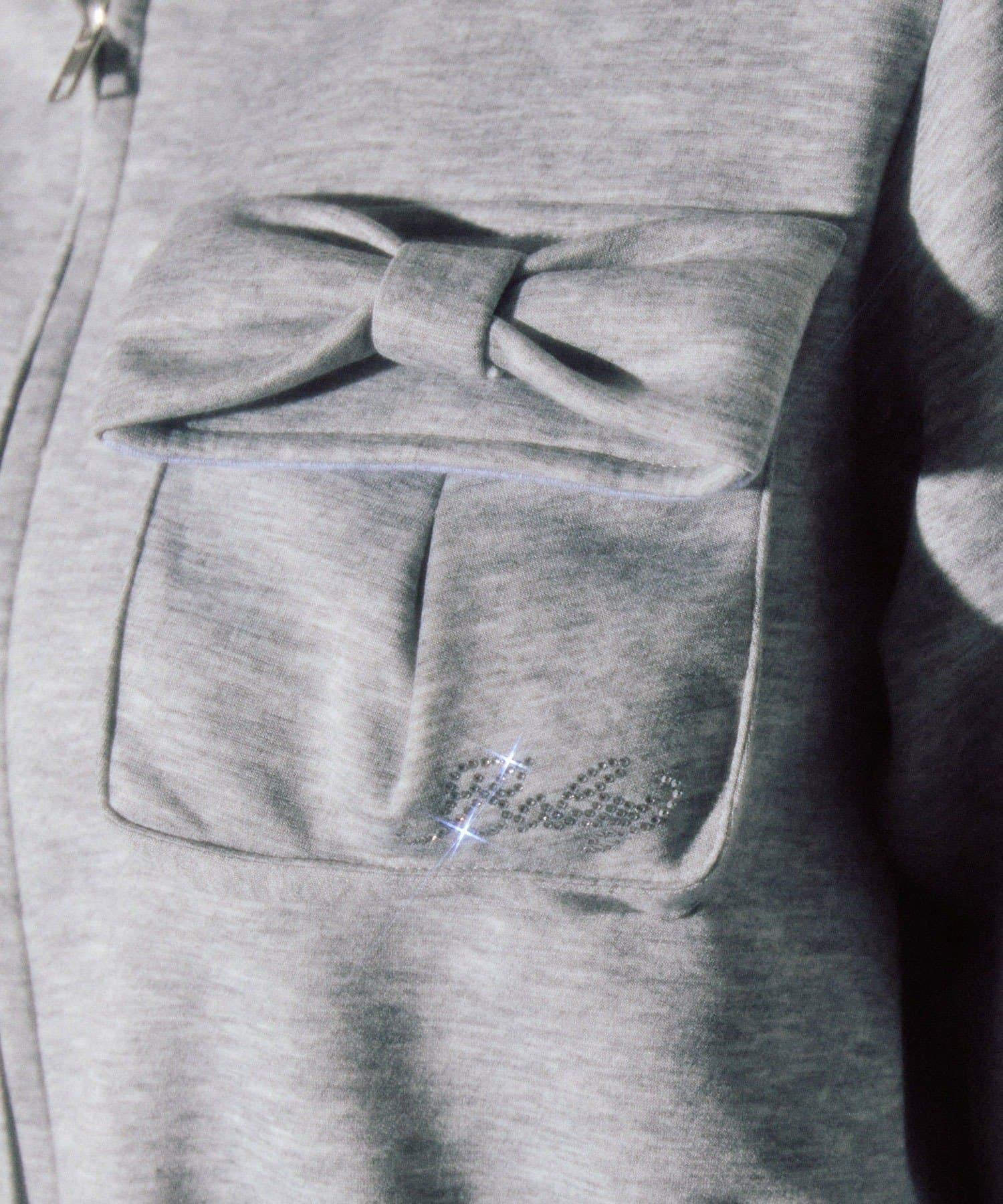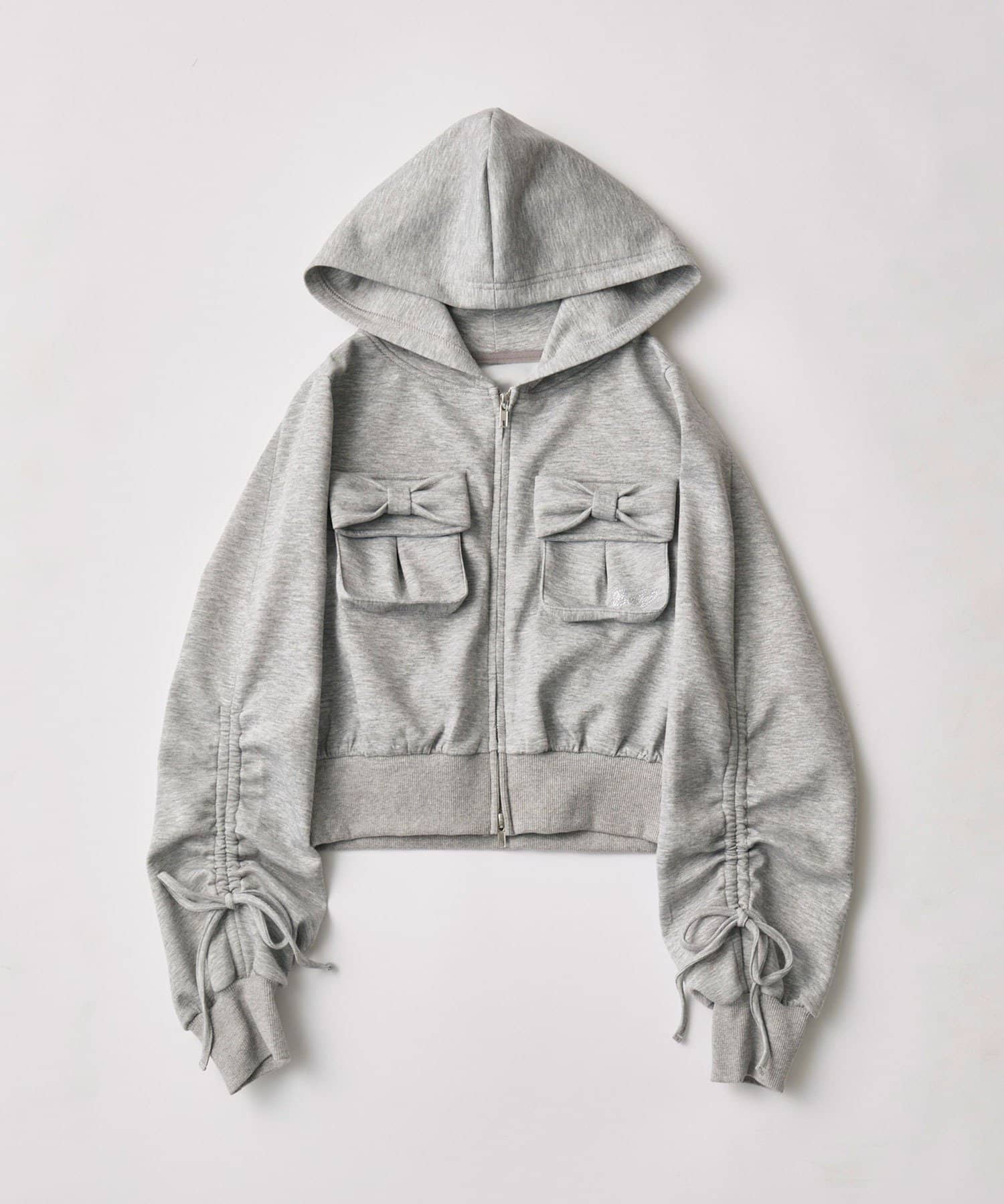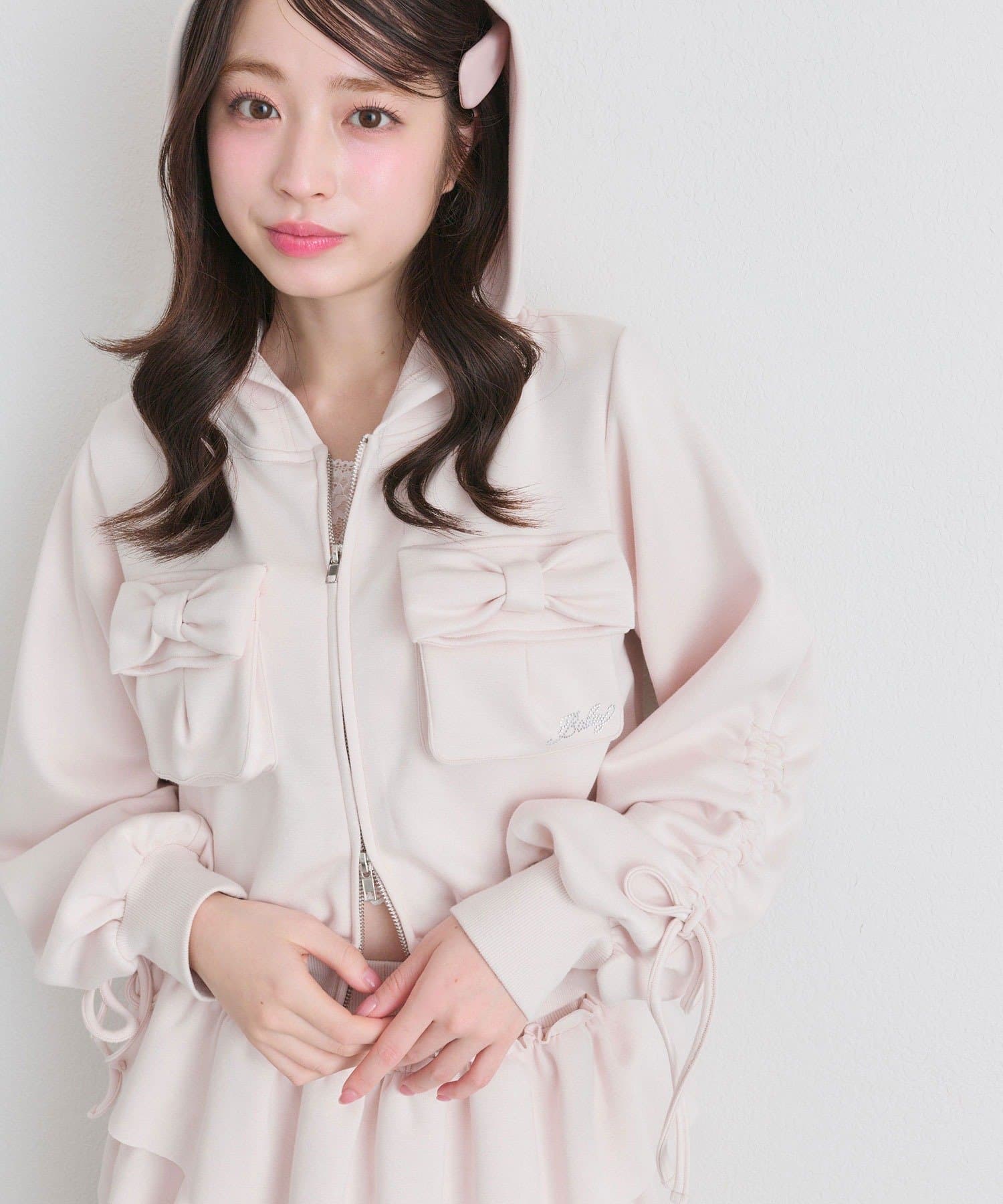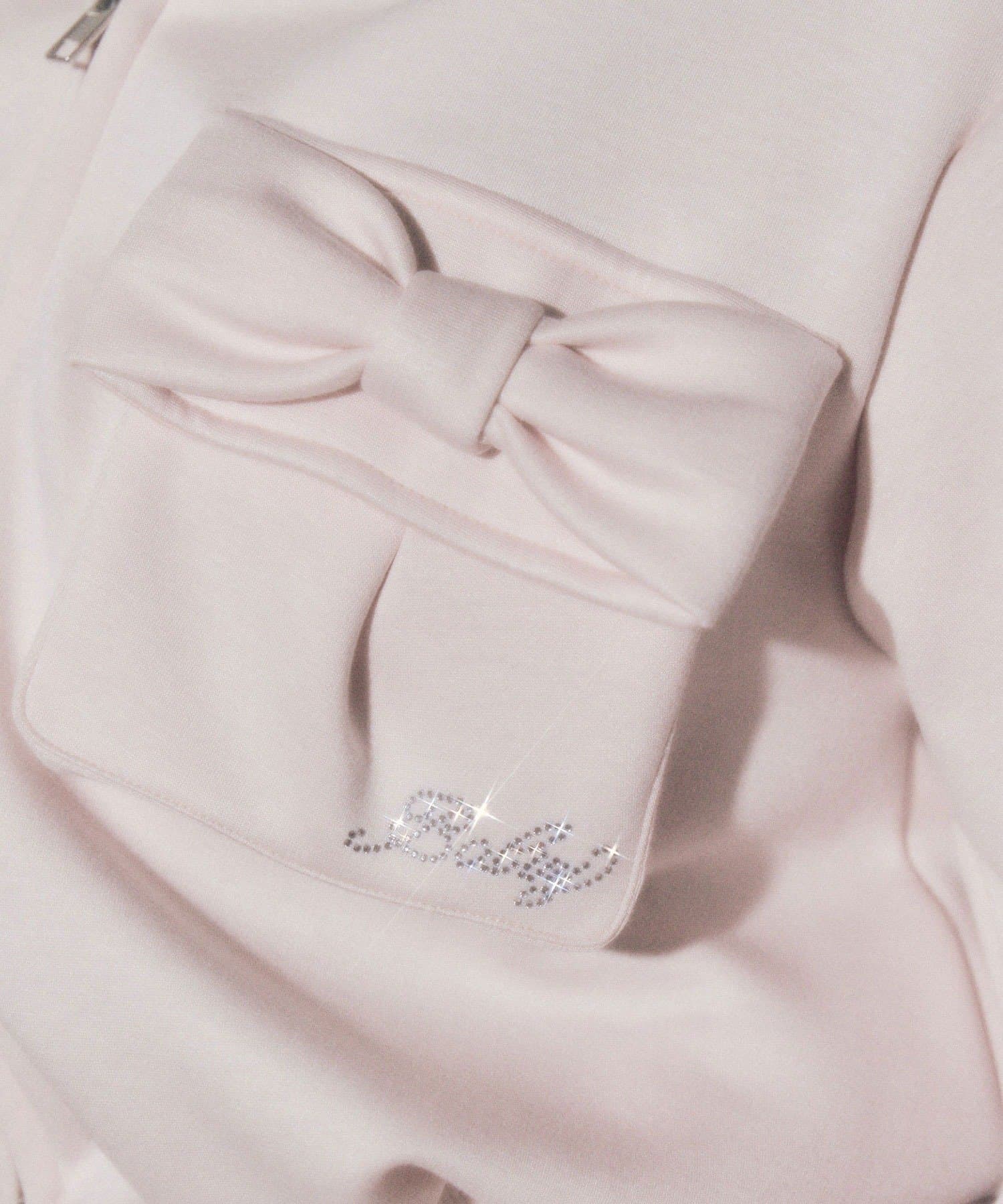 ・袖や胸ポケットにあしらったリボンが、カジュアルな中に甘さをプラスするデザイン。
