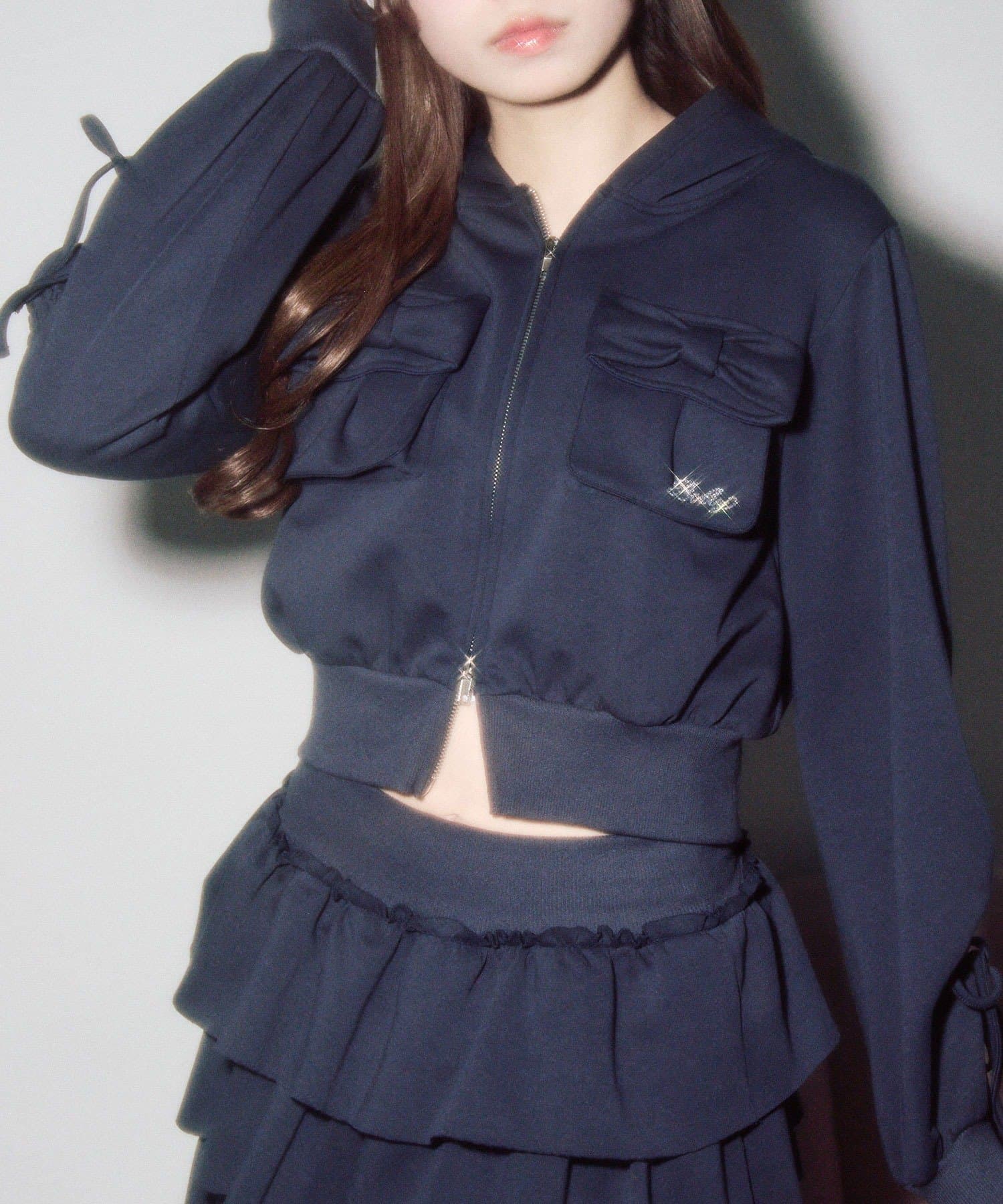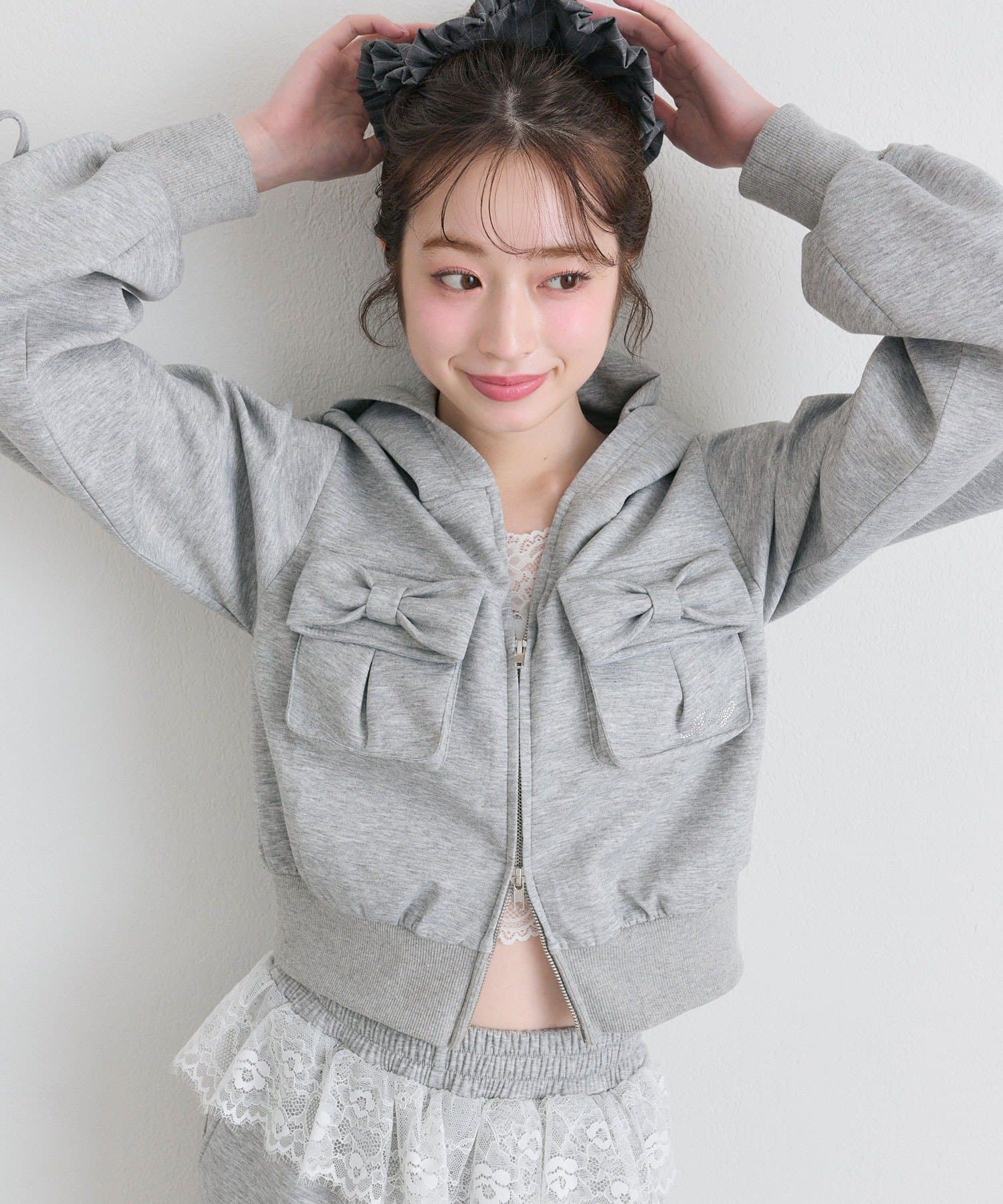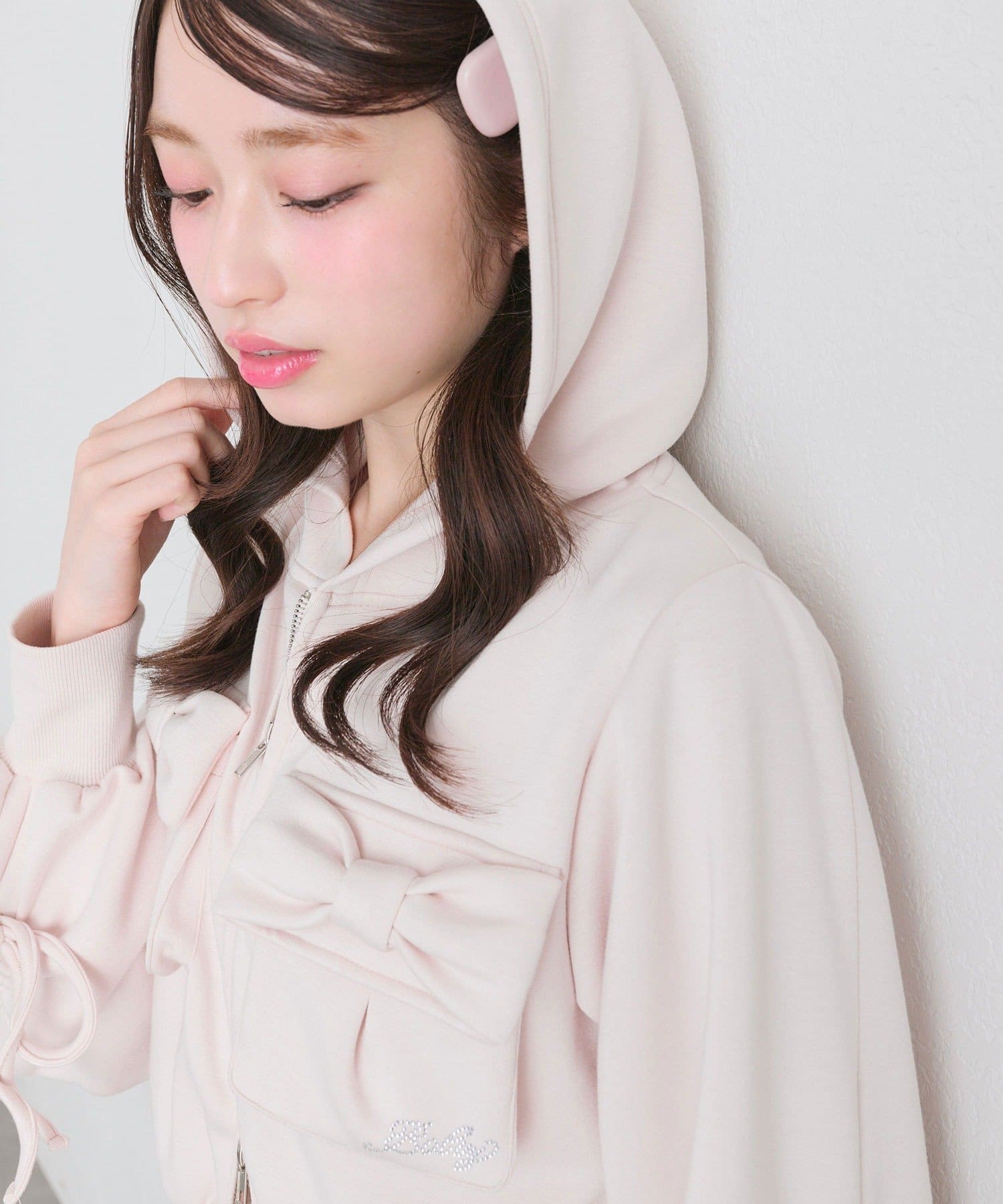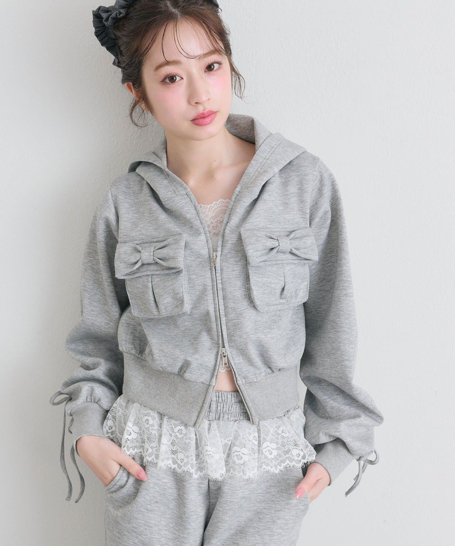 ・袖や胸ポケットにあしらったリボンが、カジュアルな中に甘さをプラスするデザイン。