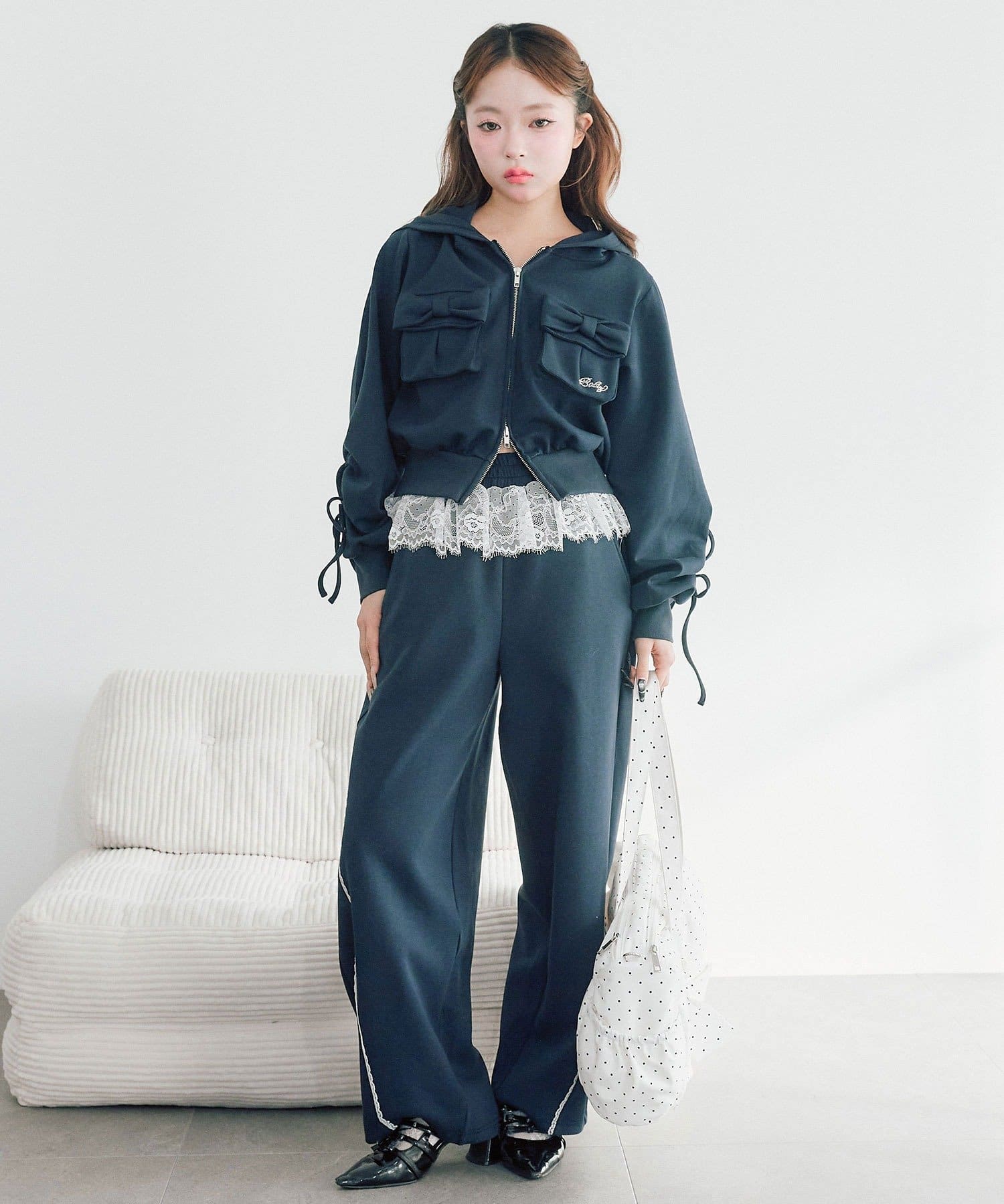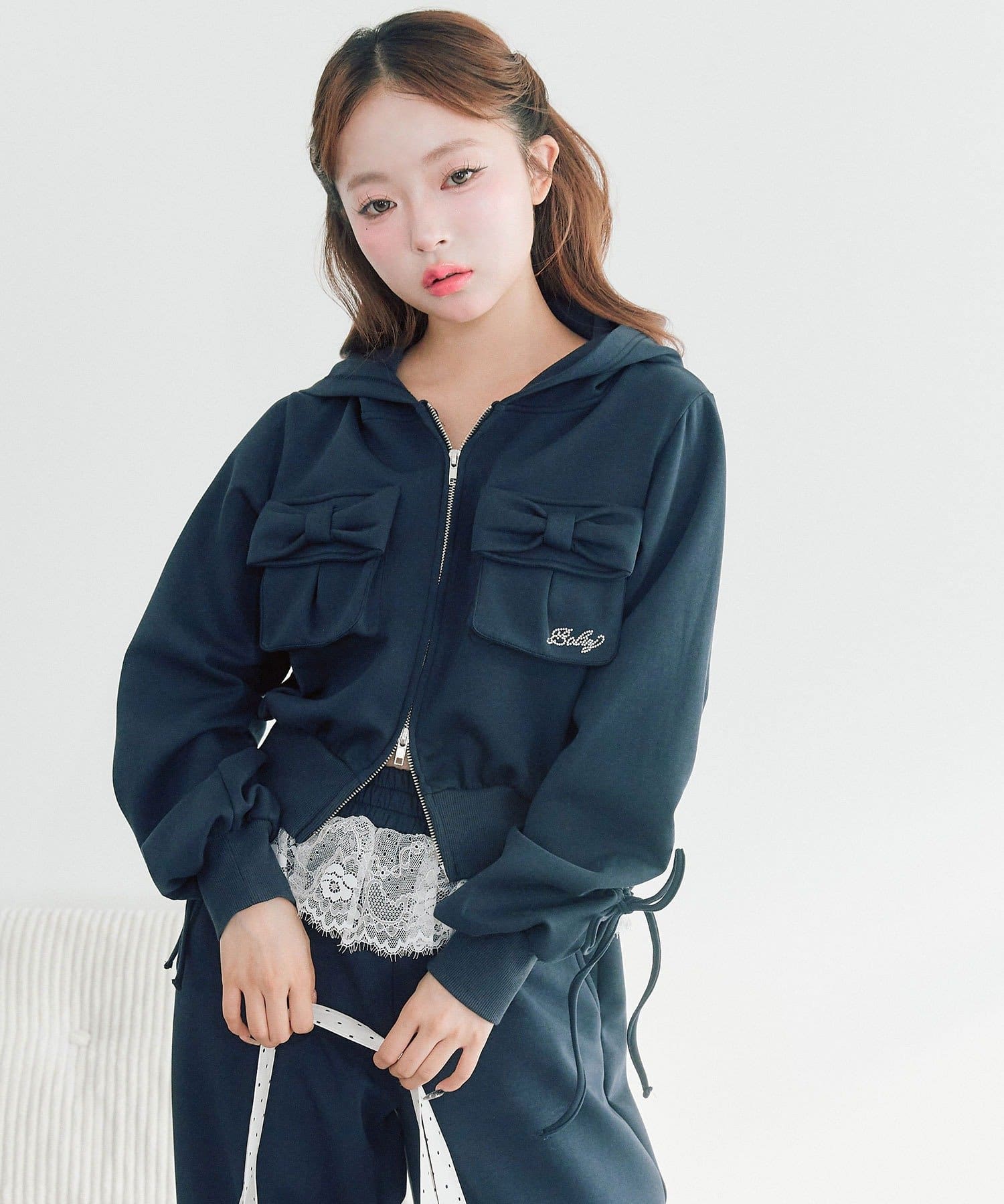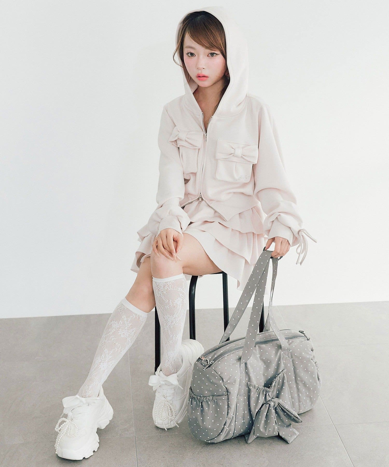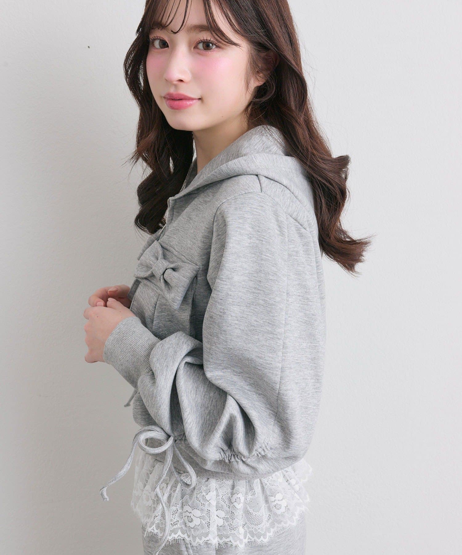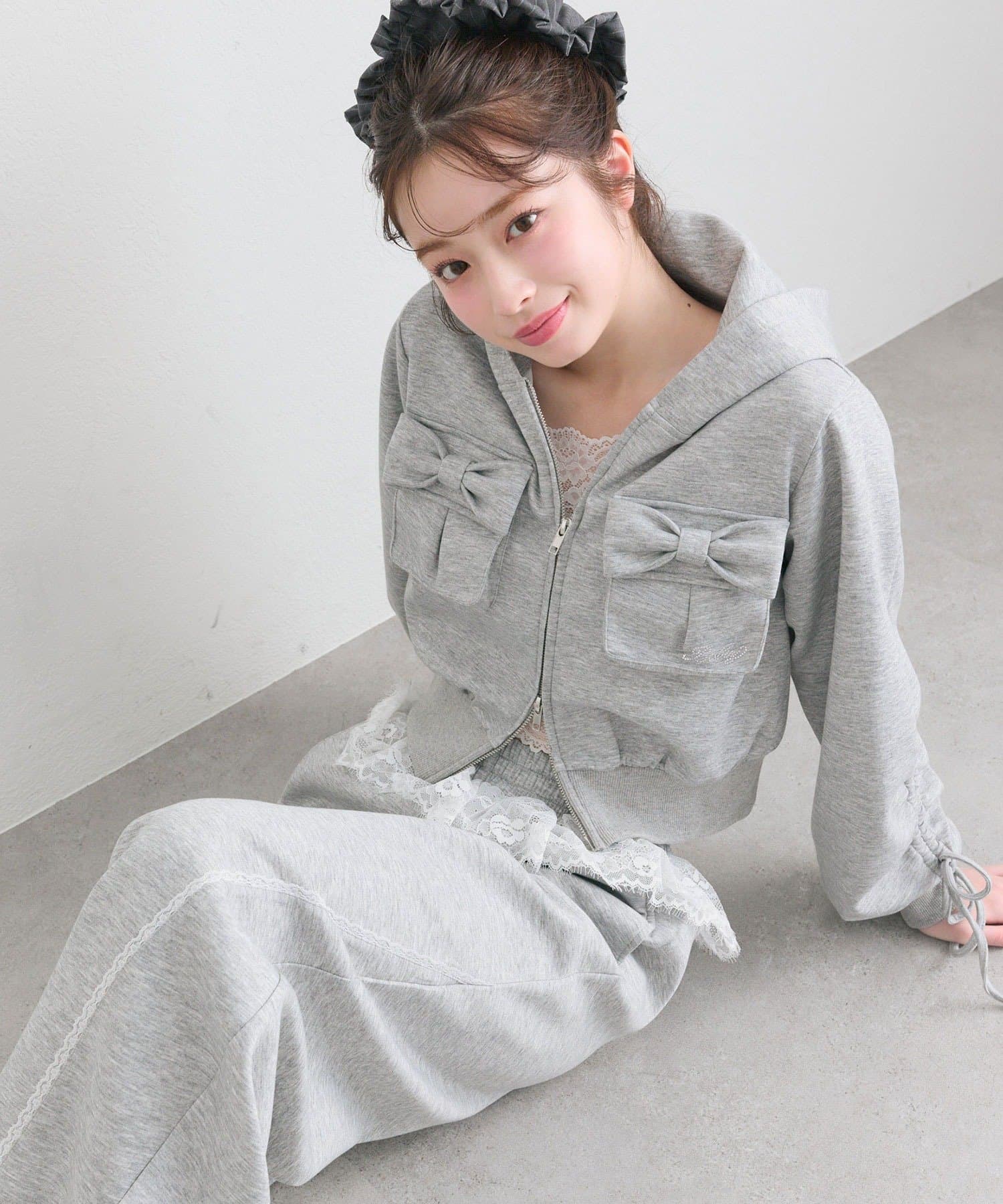 ・袖や胸ポケットにあしらったリボンが、カジュアルな中に甘さをプラスするデザイン。