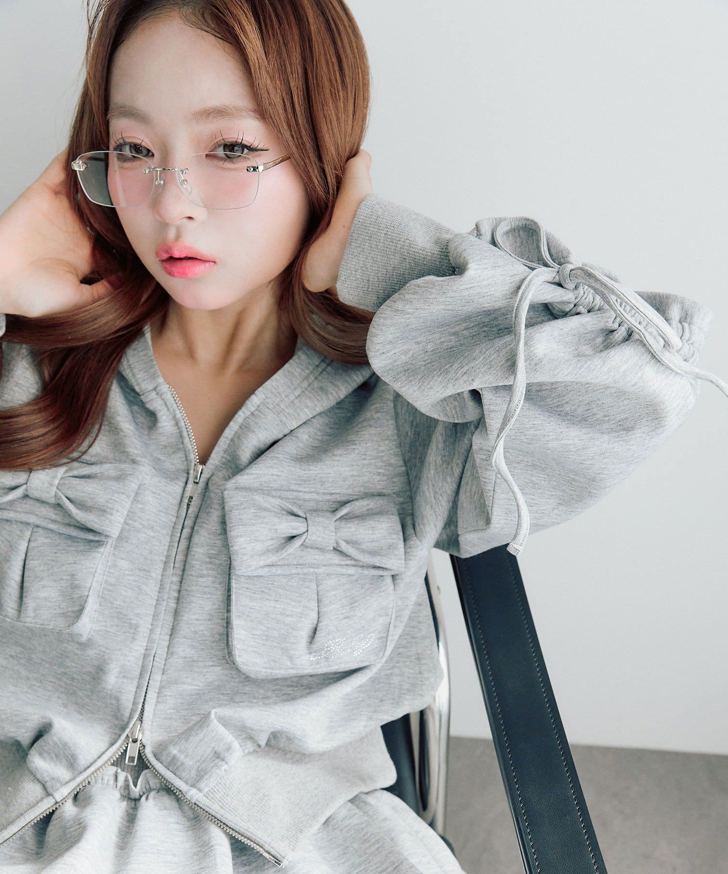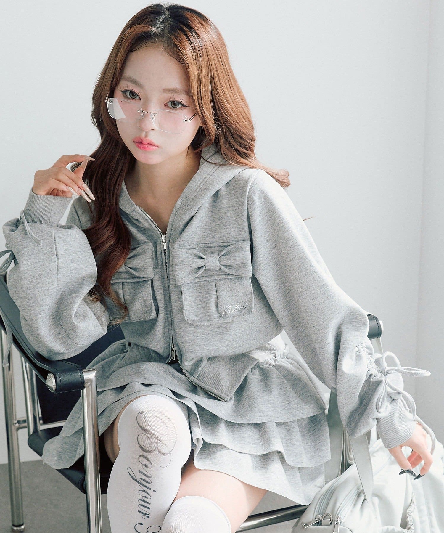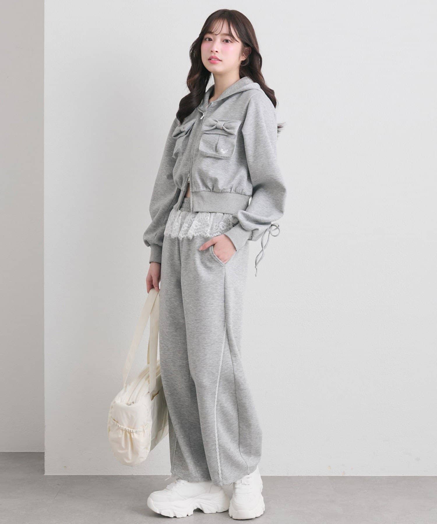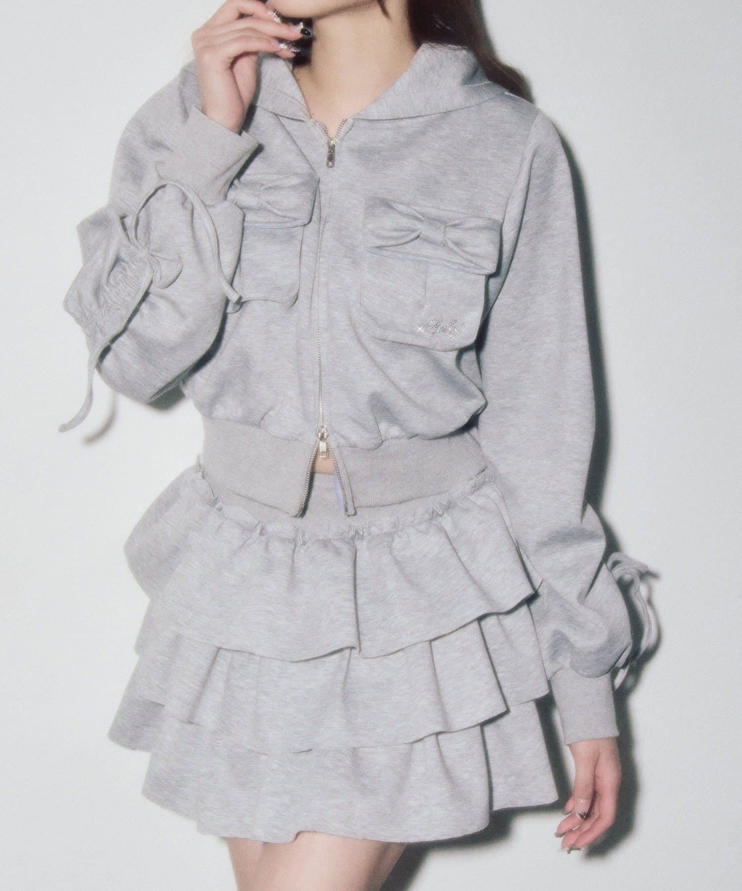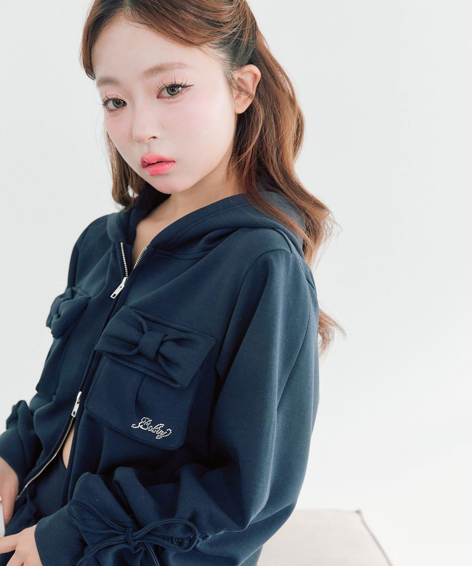 ・袖や胸ポケットにあしらったリボンが、カジュアルな中に甘さをプラスするデザイン。