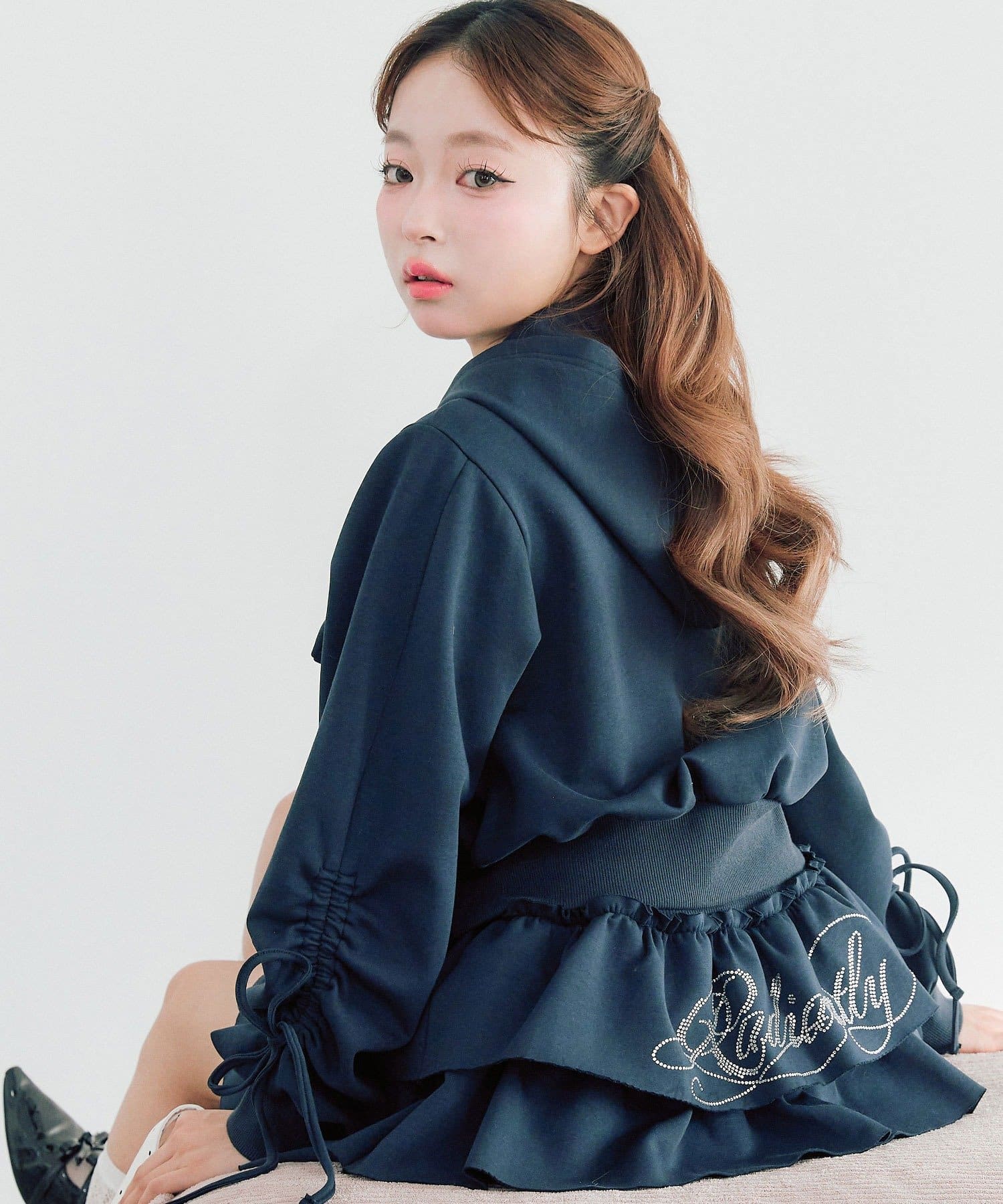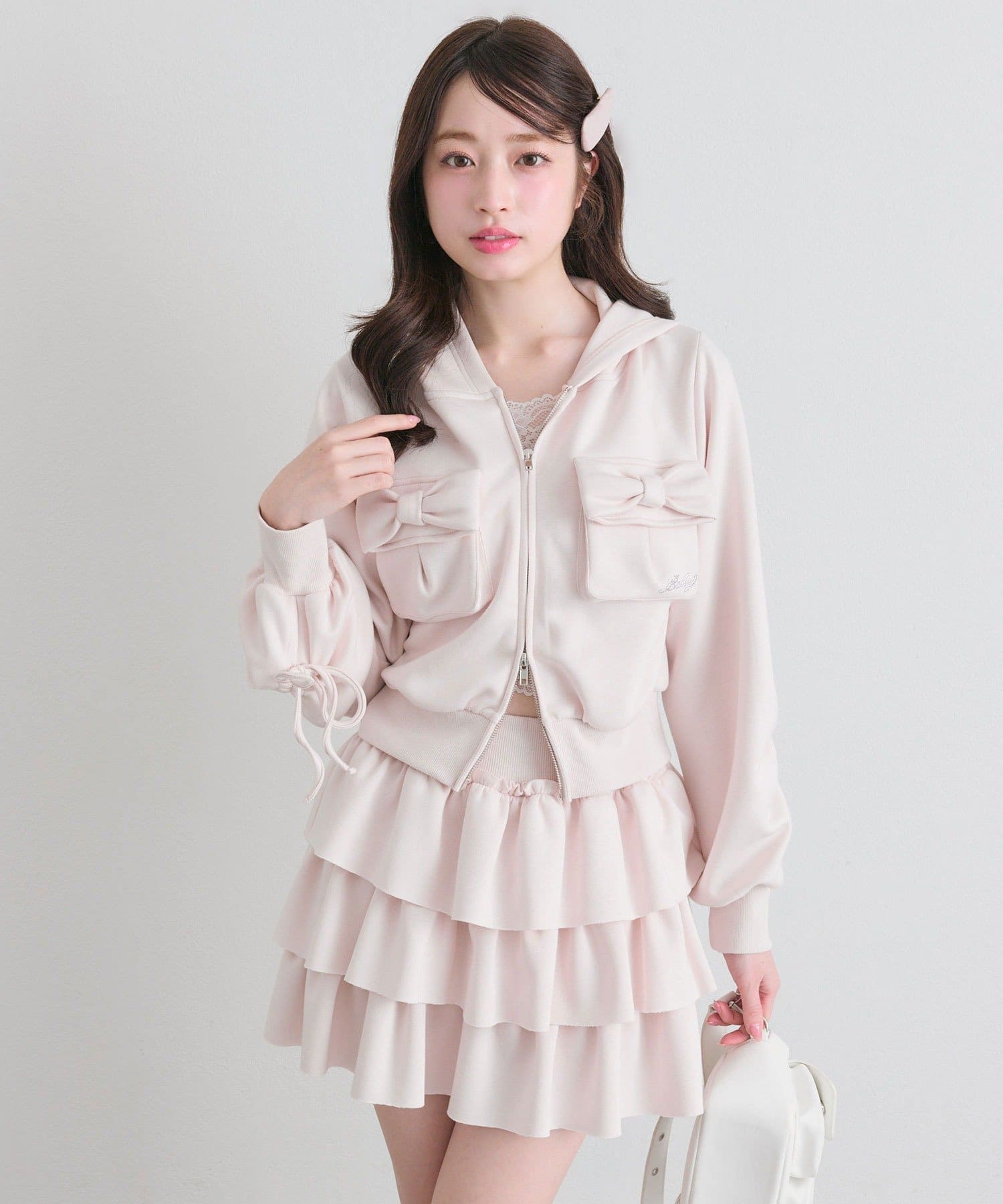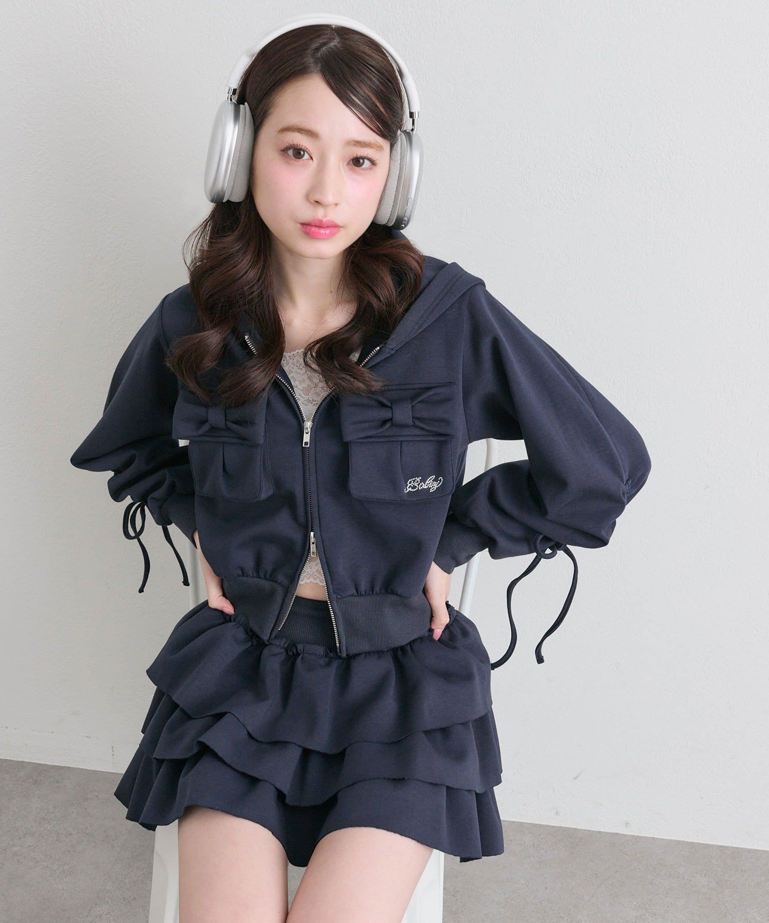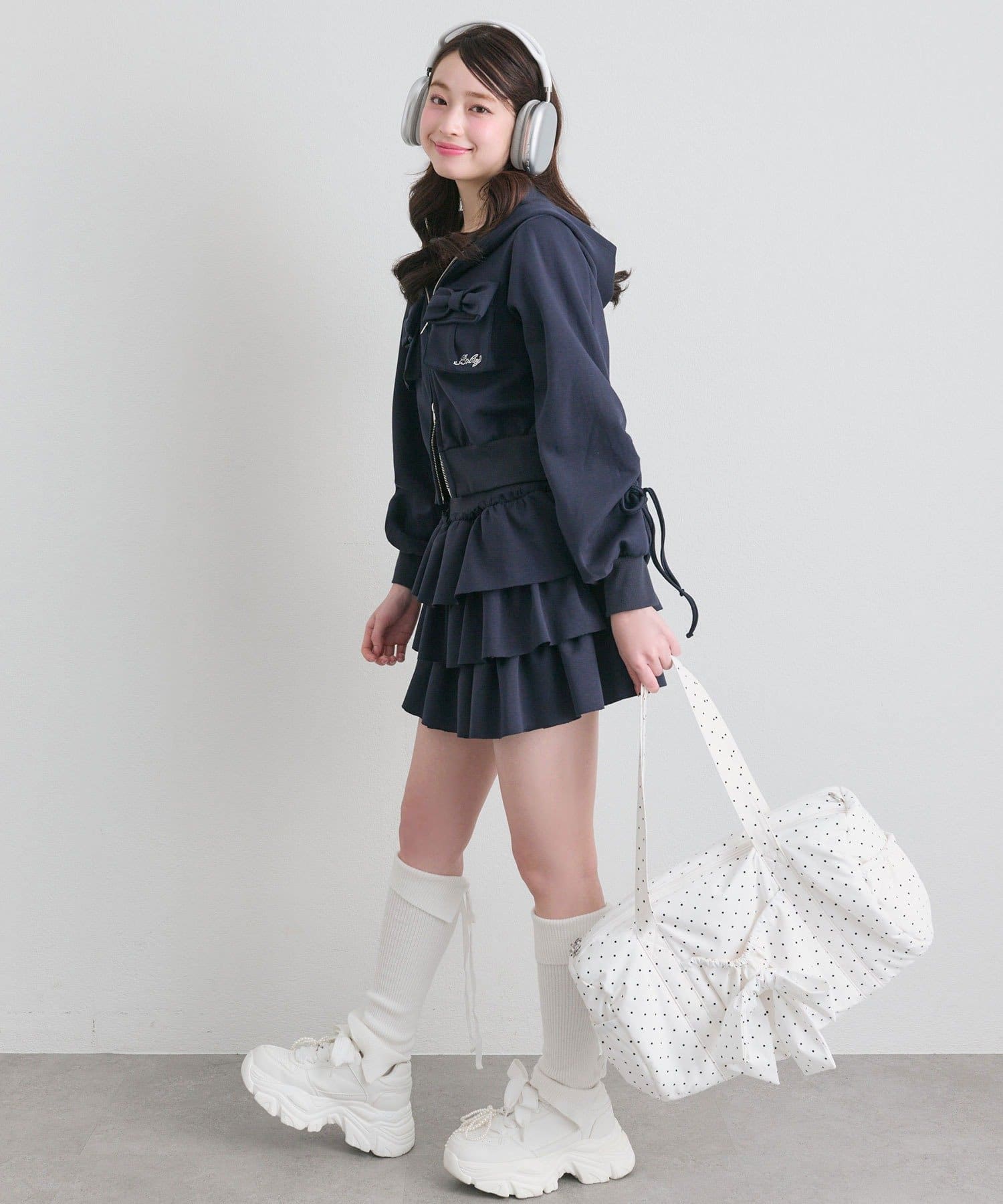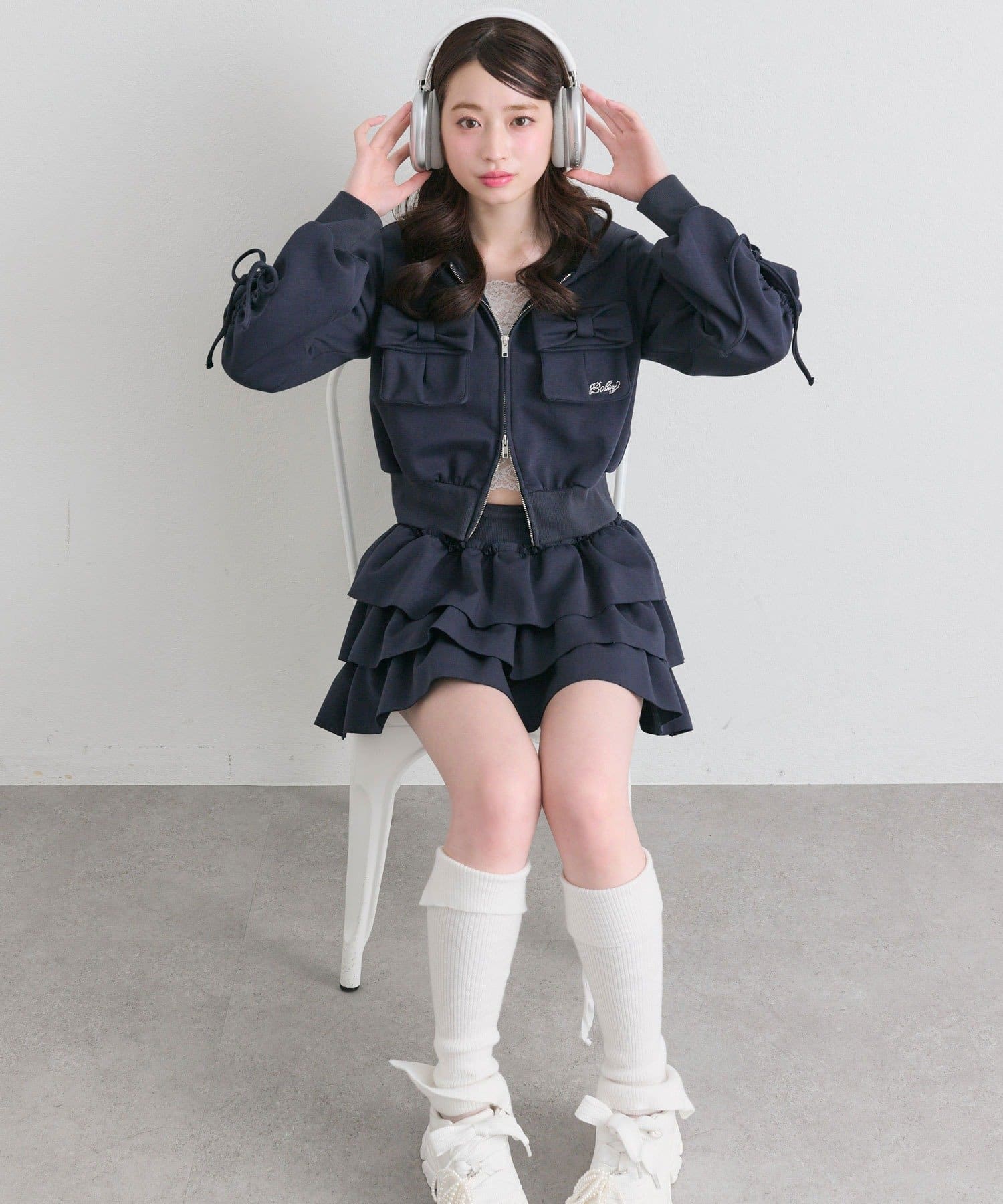 ・ガーリーに着たい方はキラキラロゴフリルスカート(商品番号:1061010110)と合わせるのがおすすめ。
