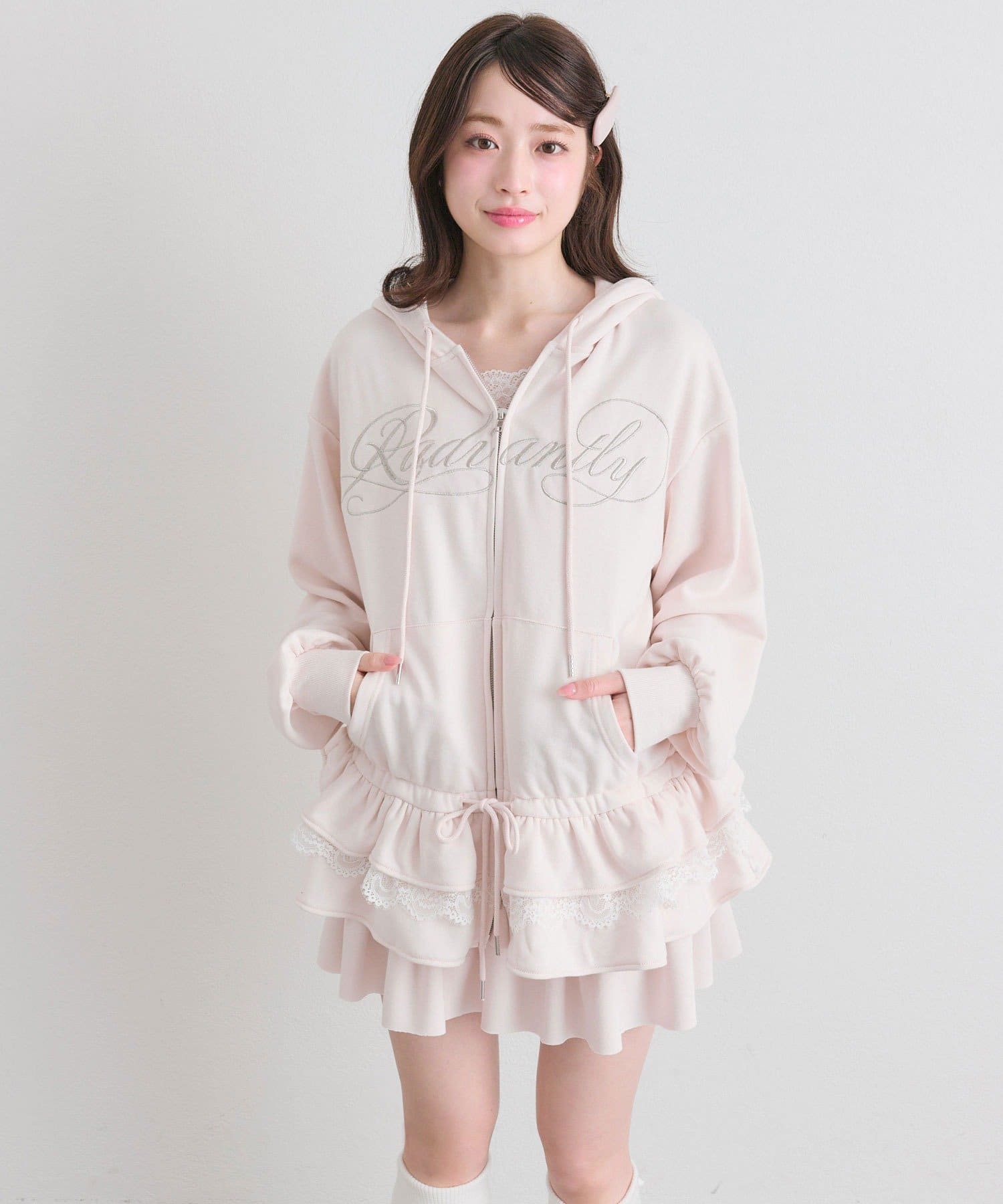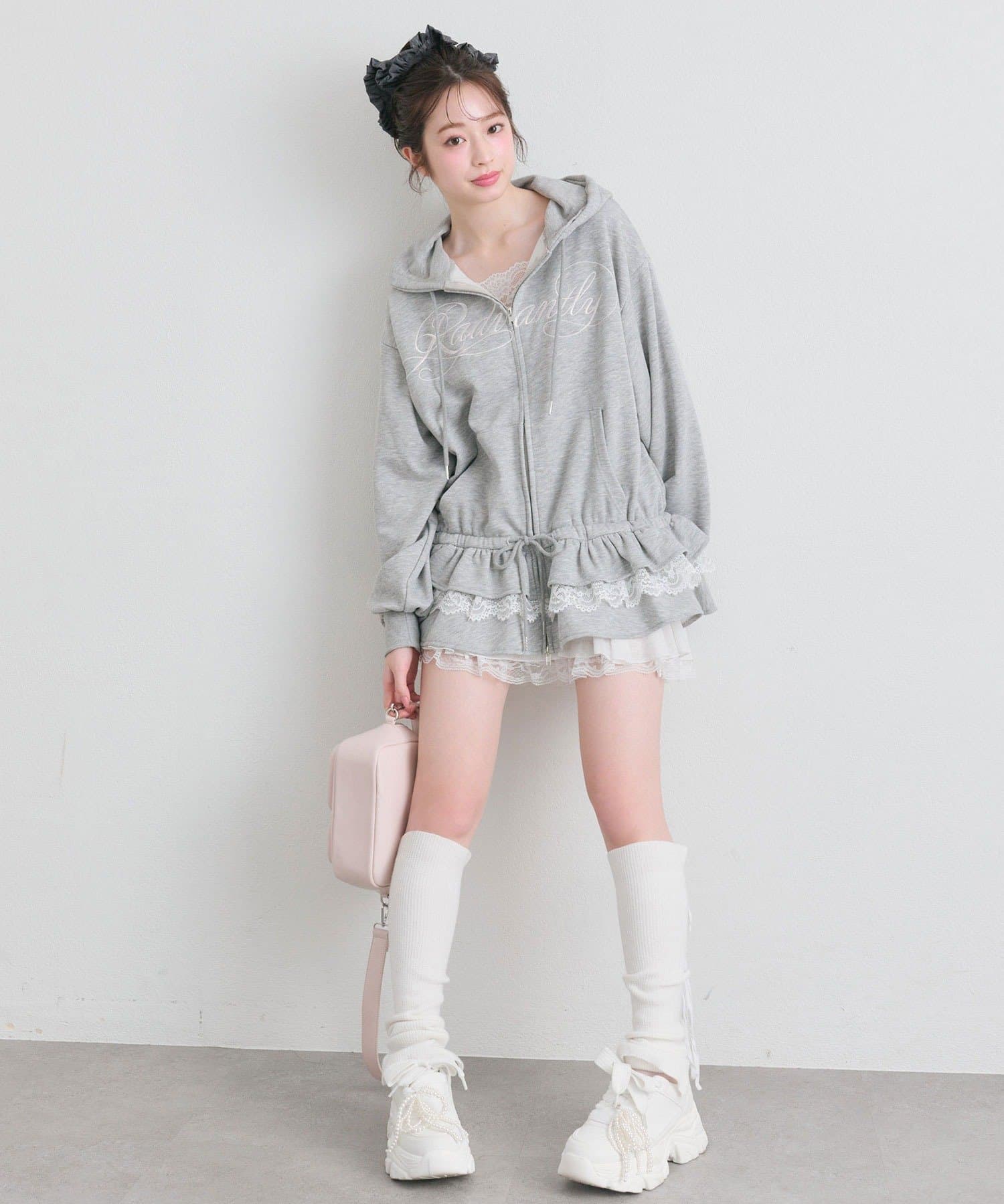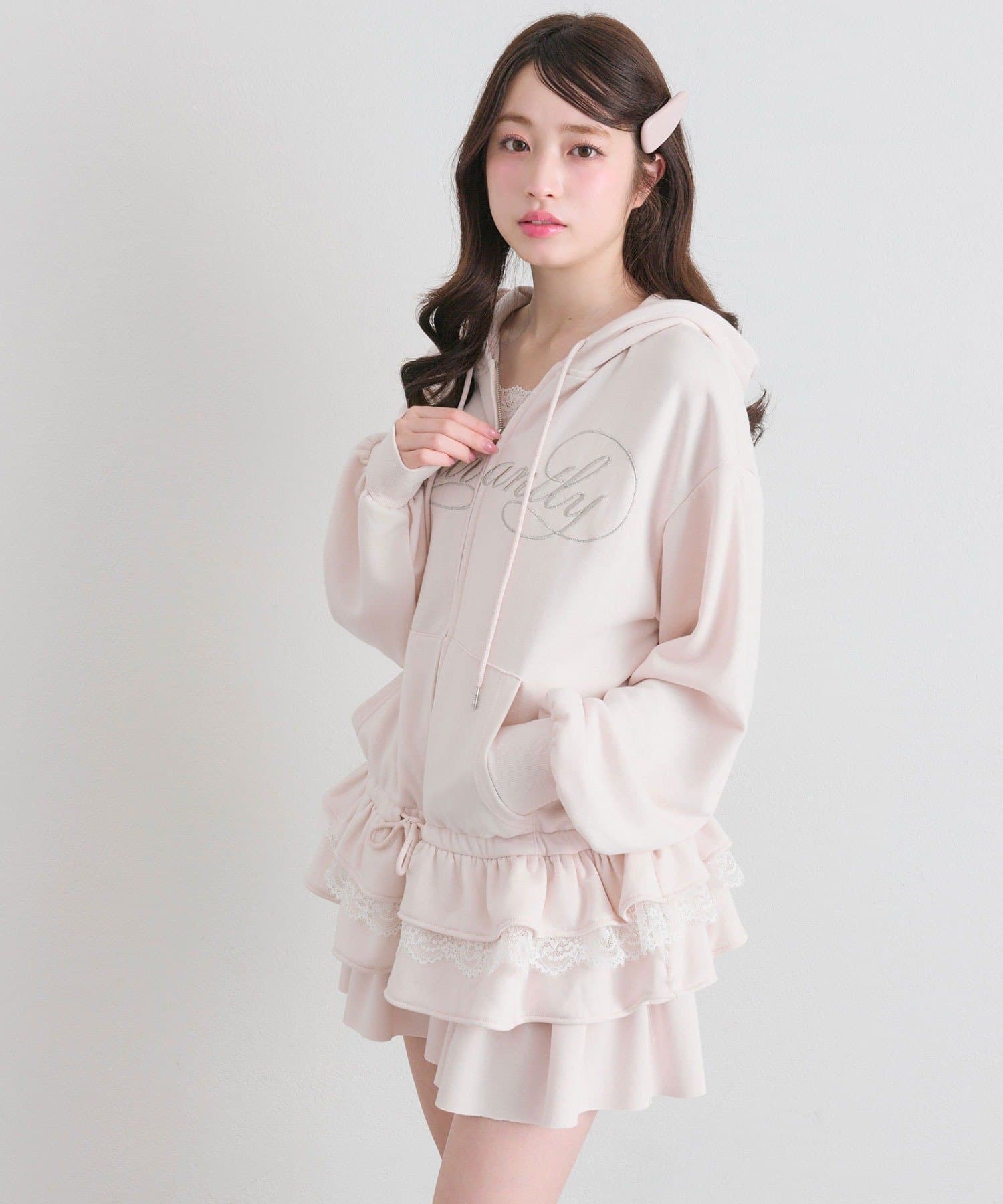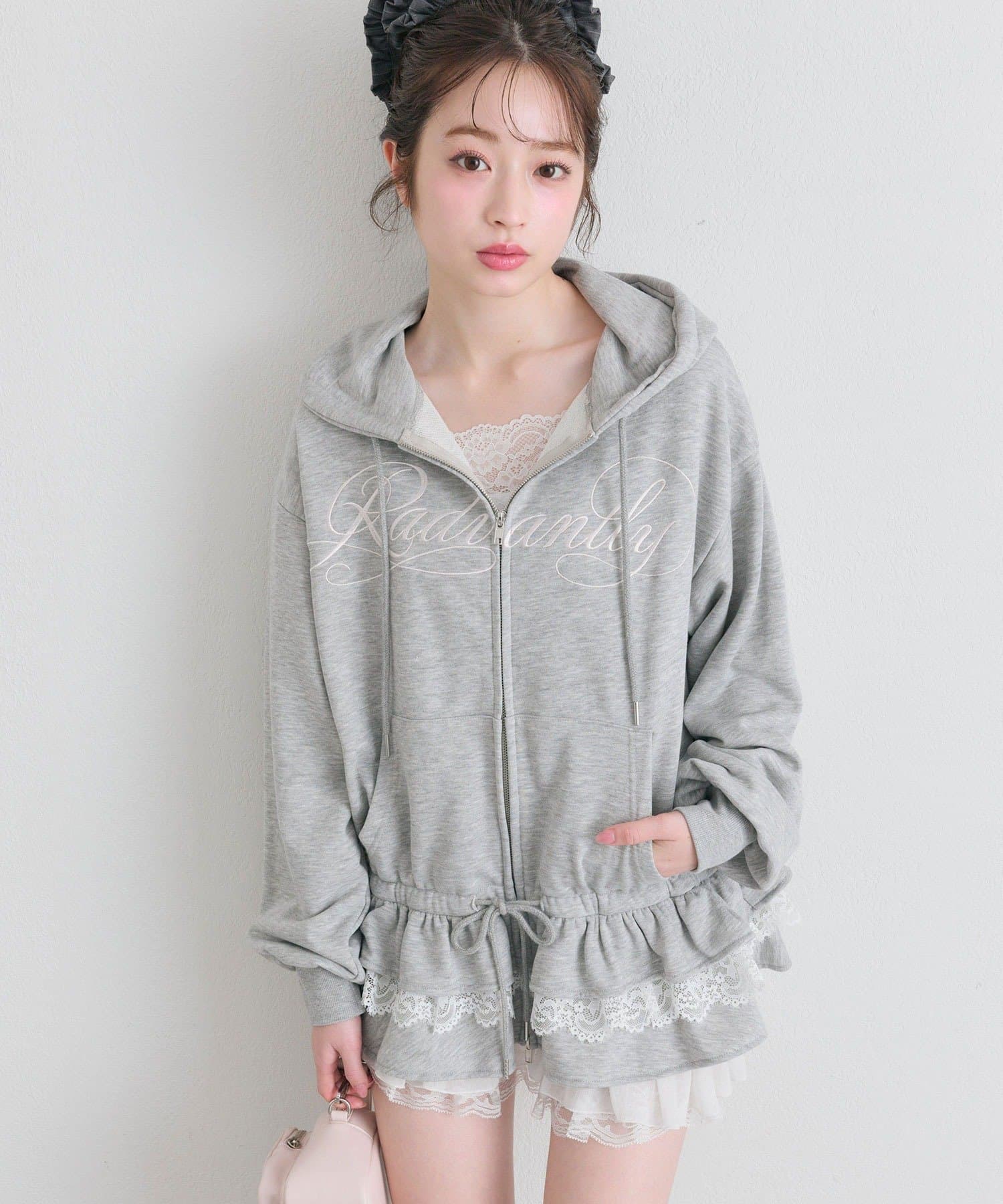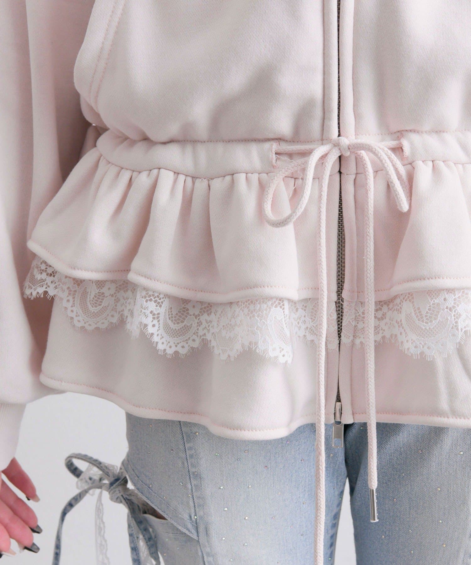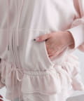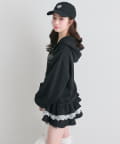 ・カジュアルなZIPパーカーに、裾フリルをプラスしたガーリーデザイン。