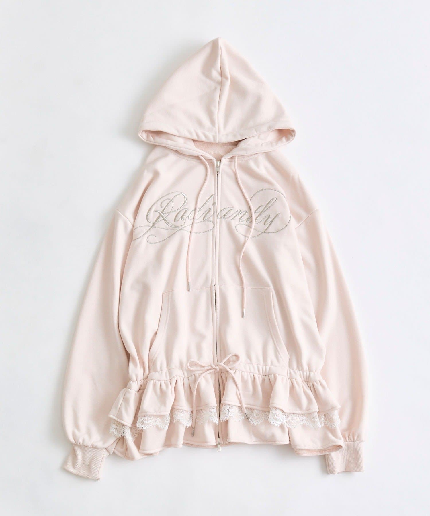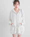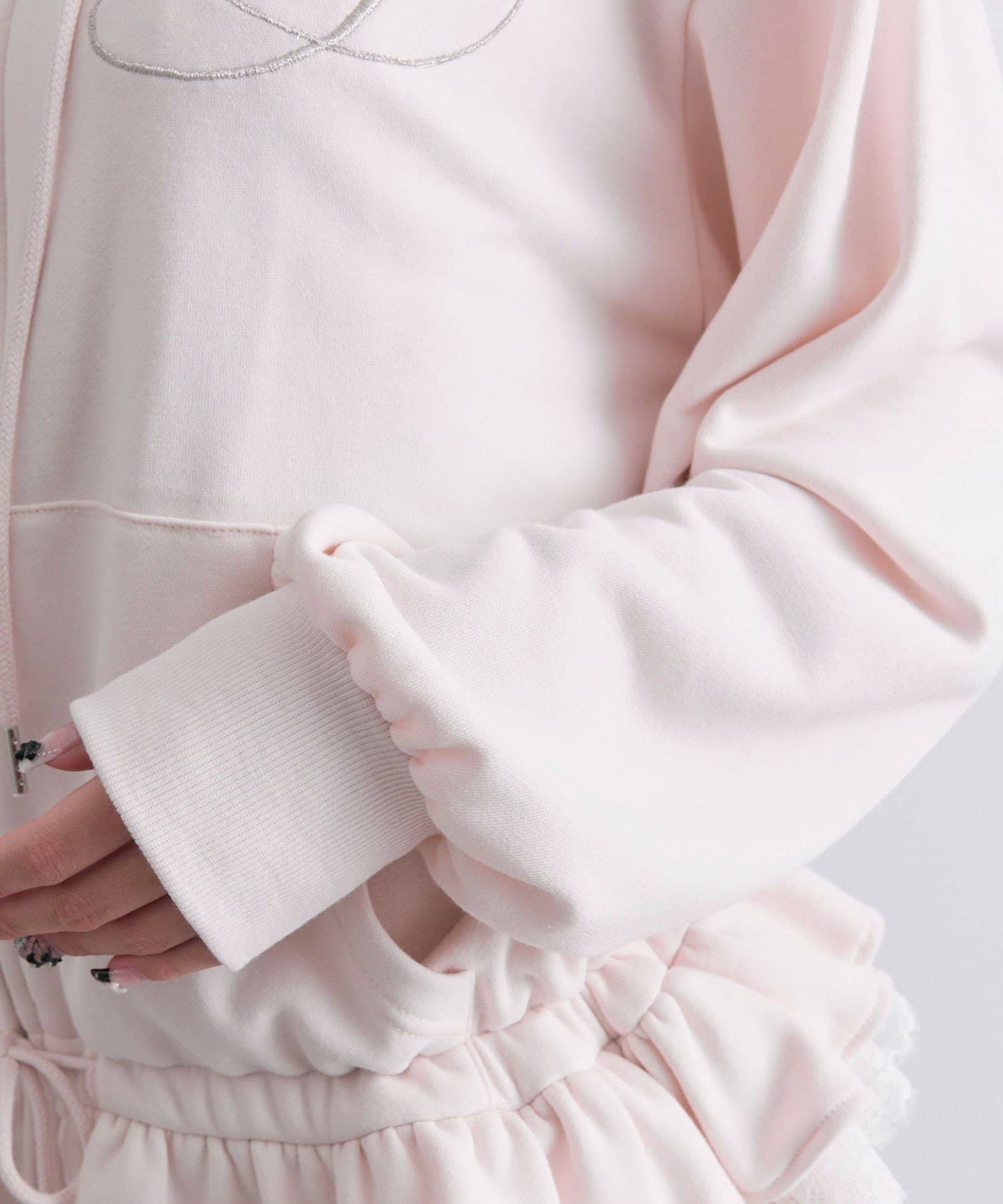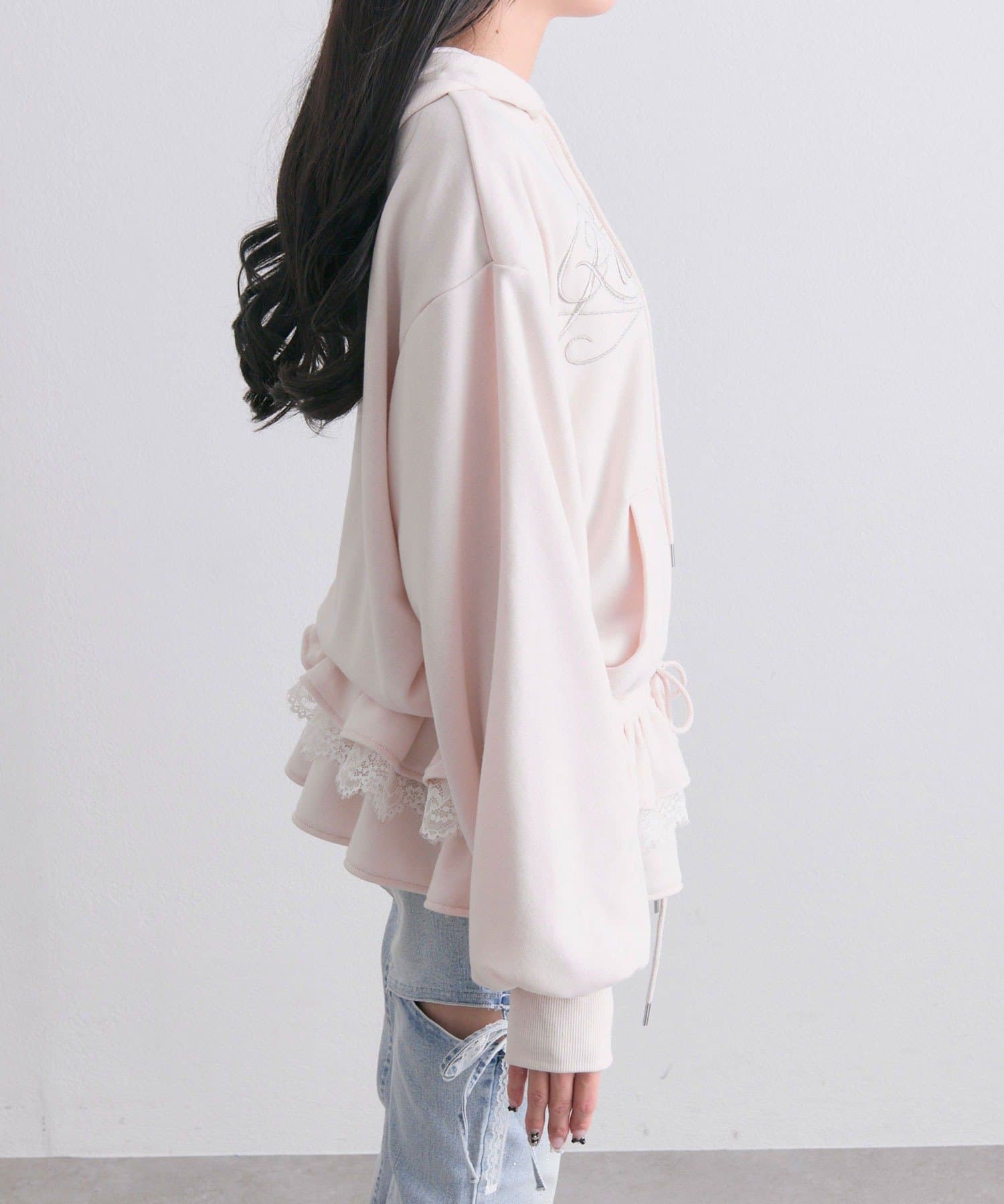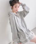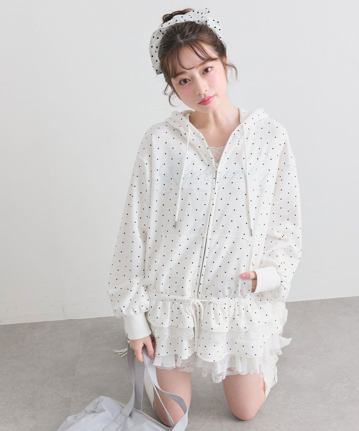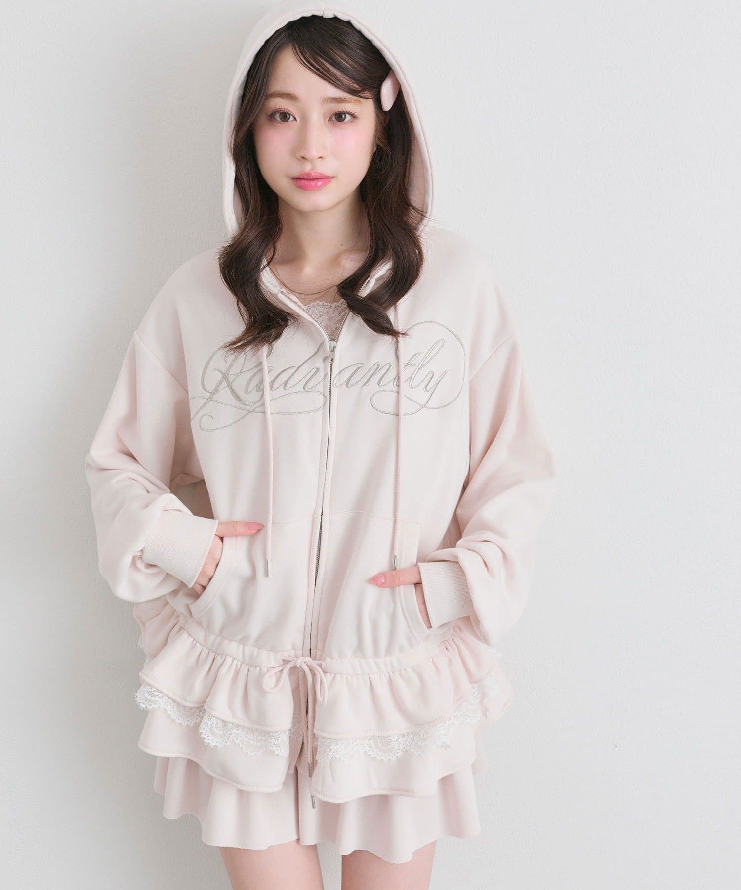 ・カジュアルなZIPパーカーに、裾フリルをプラスしたガーリーデザイン。