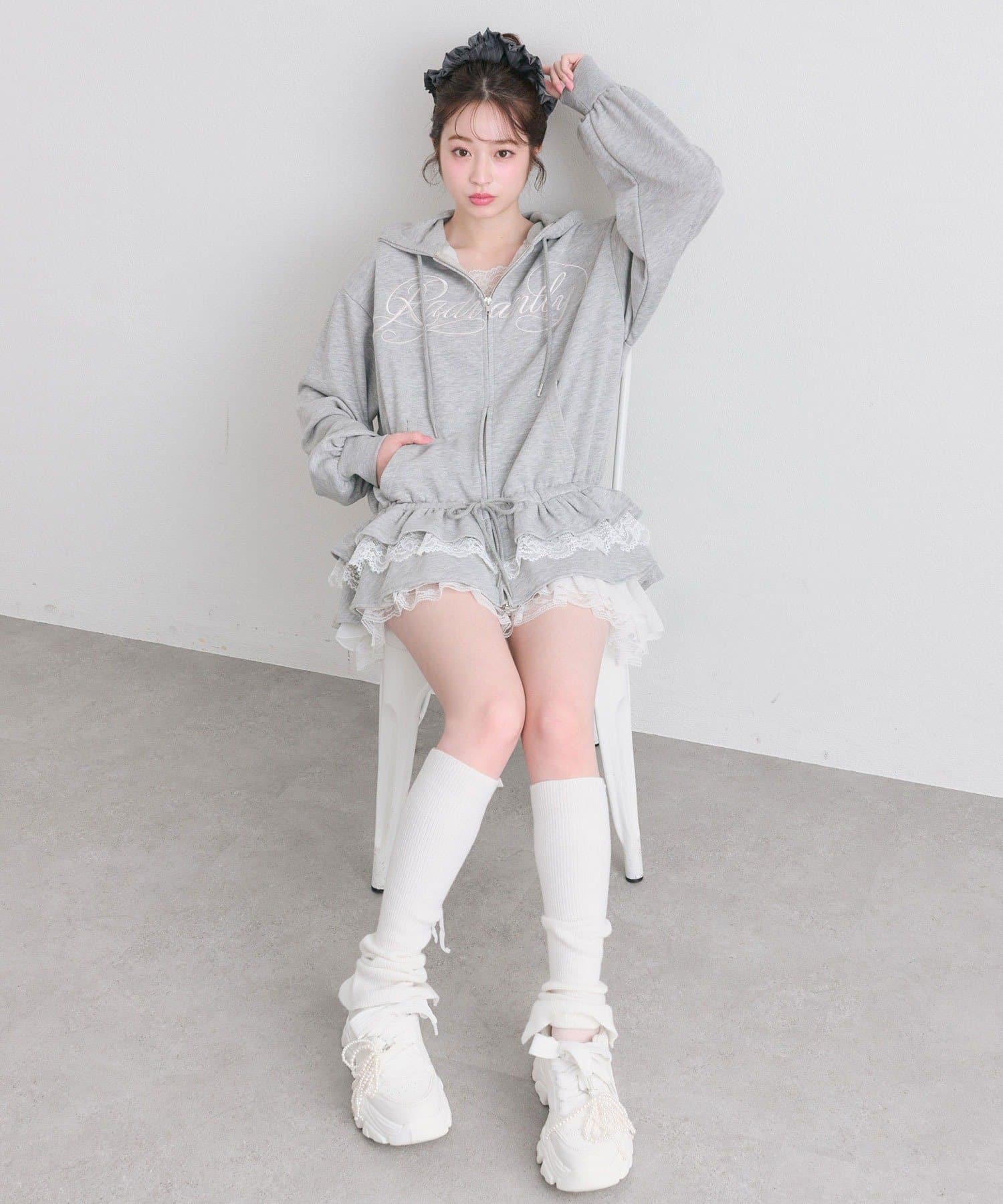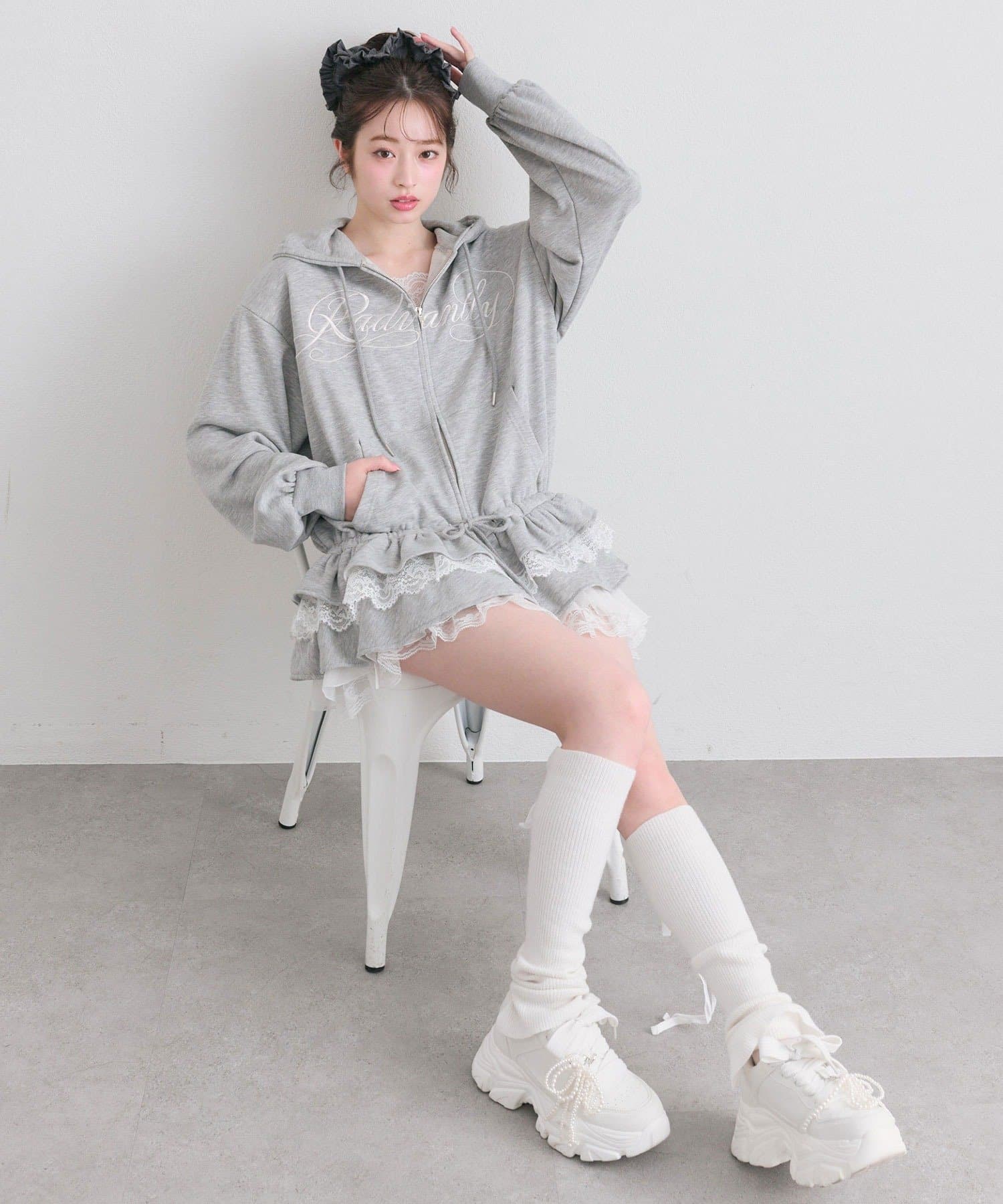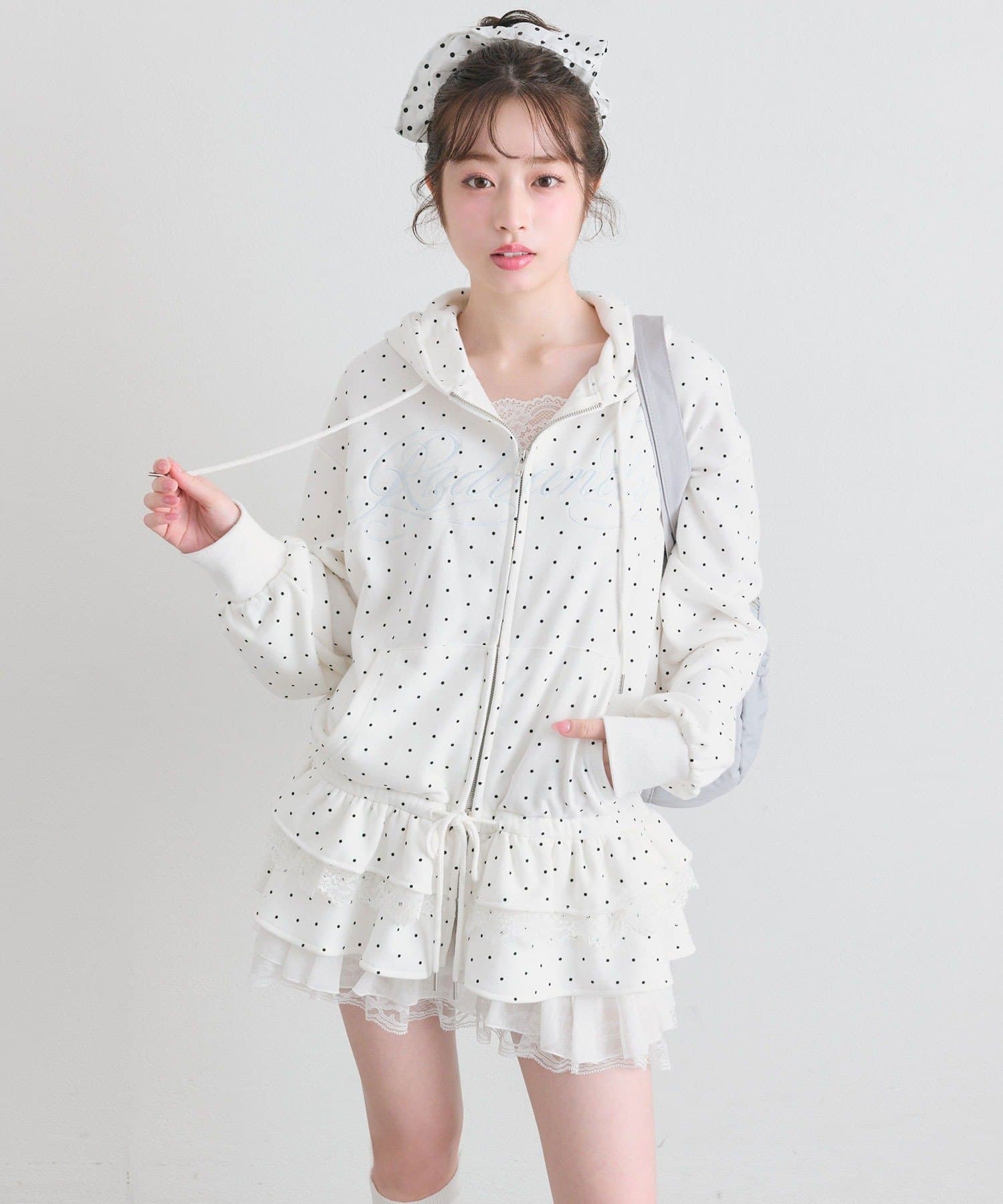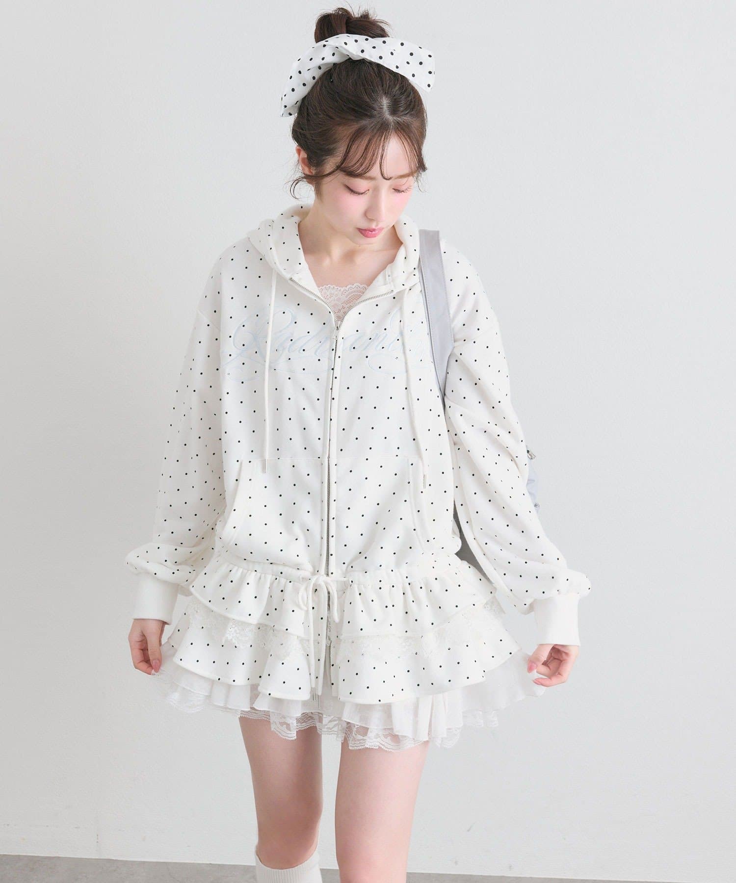 ・カジュアルなZIPパーカーに、裾フリルをプラスしたガーリーデザイン。