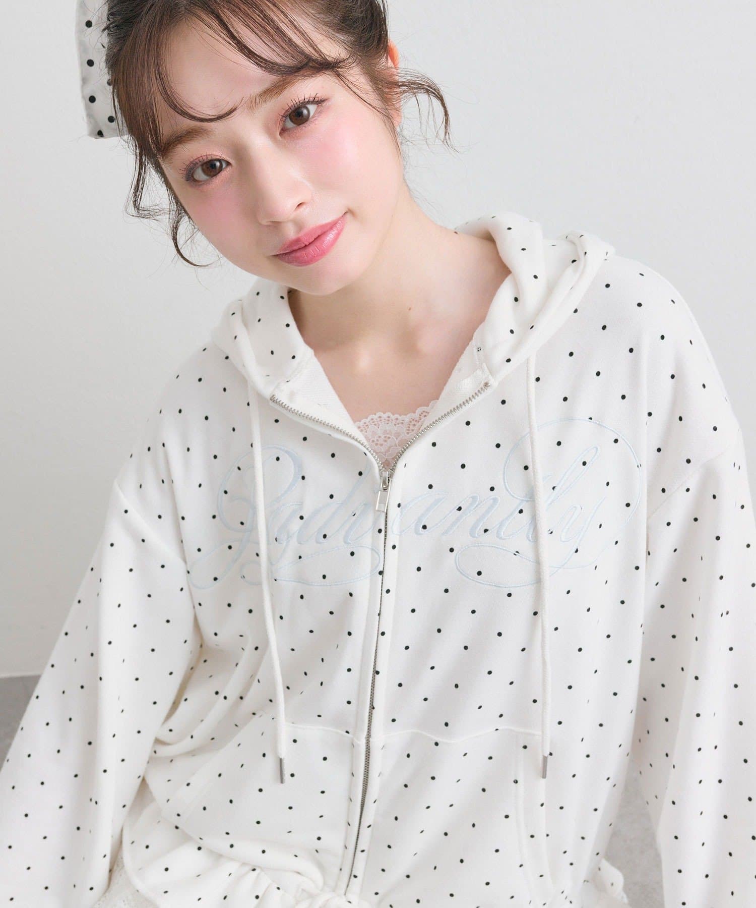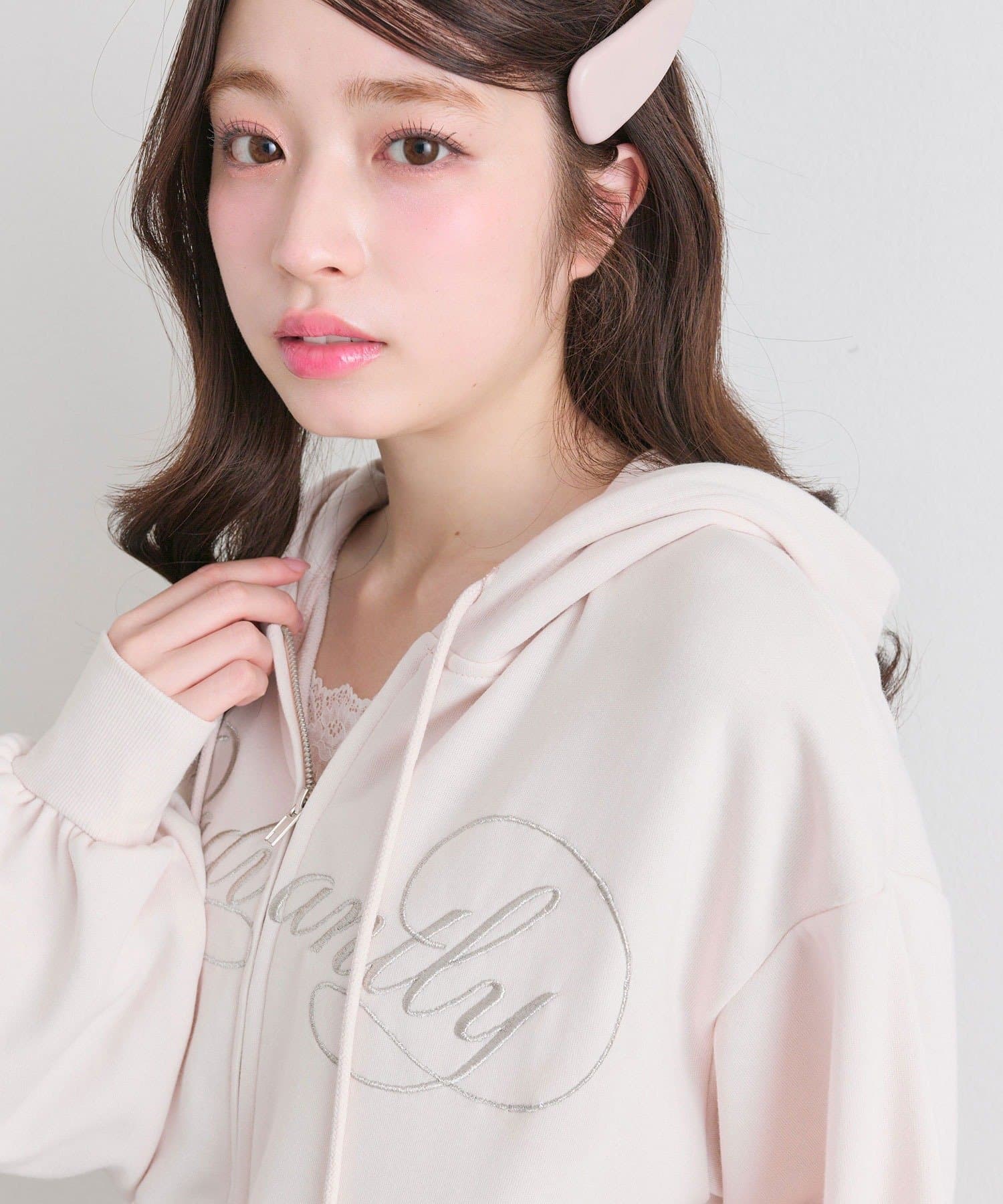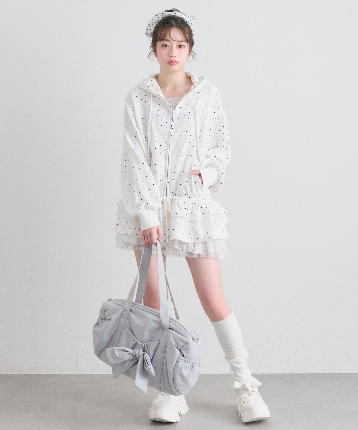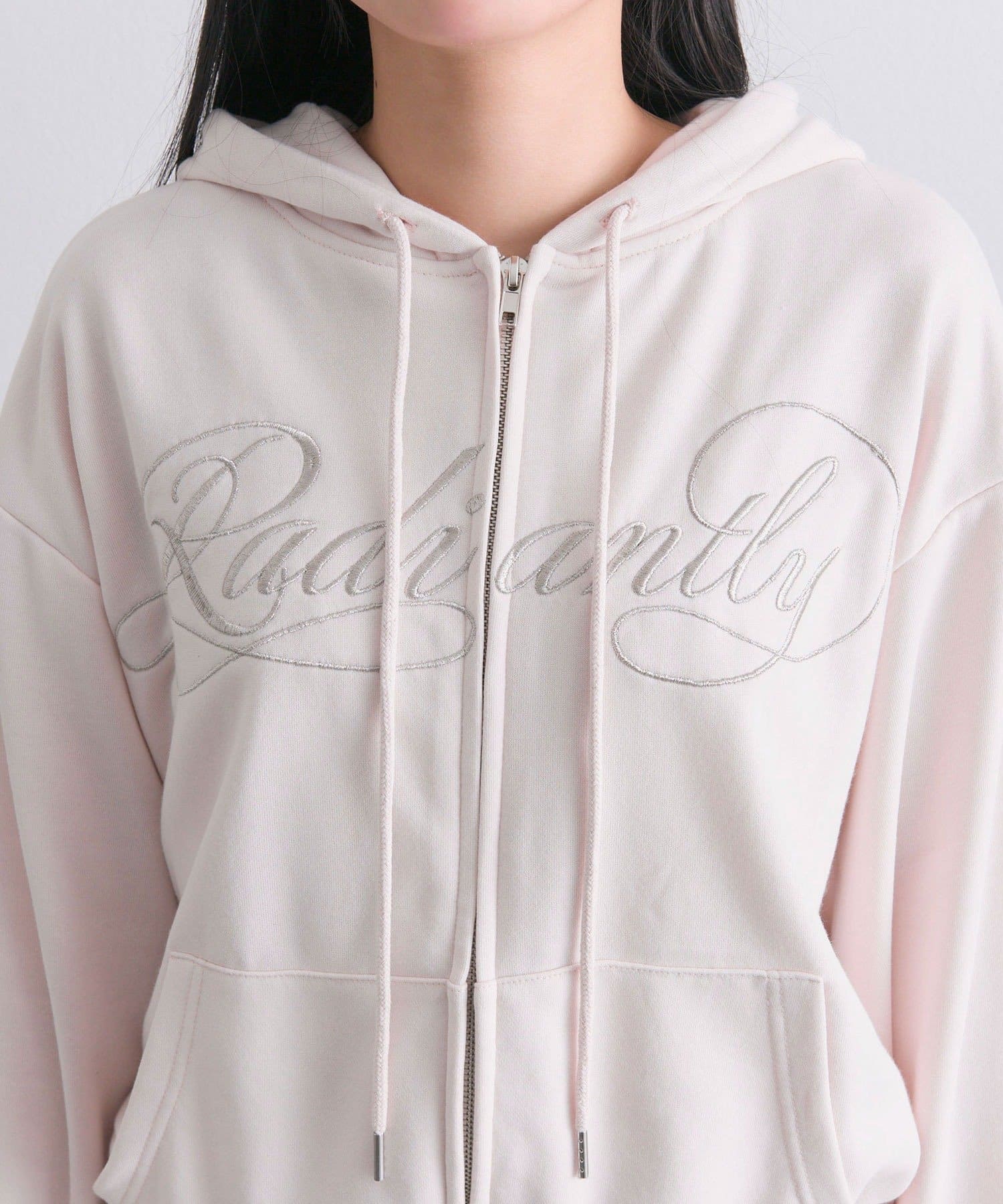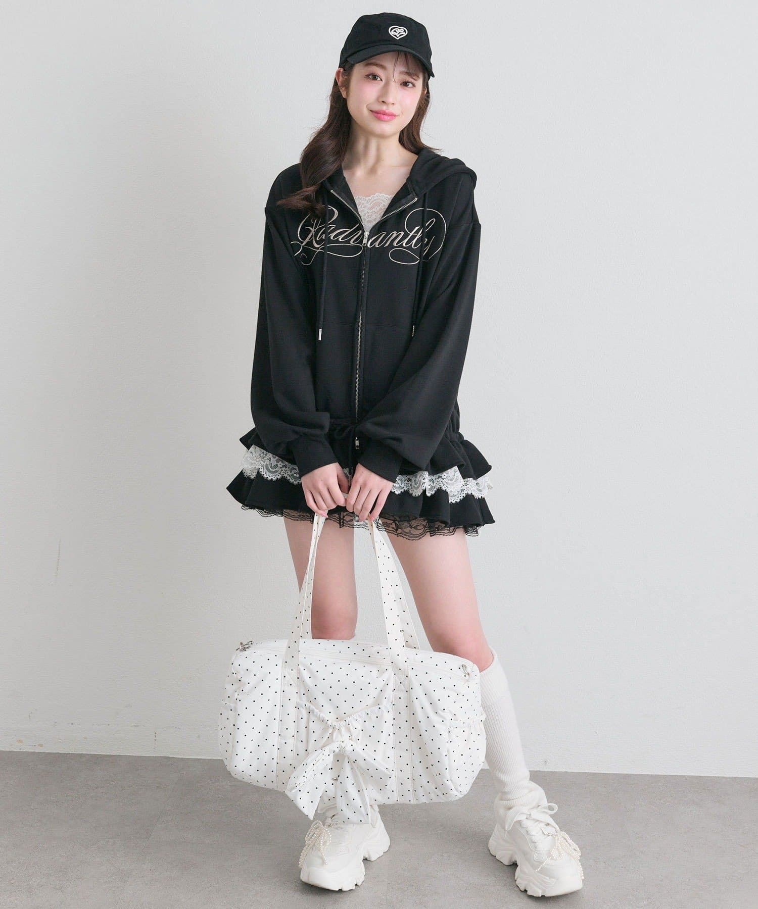 ・カジュアルなZIPパーカーに、裾フリルをプラスしたガーリーデザイン。