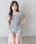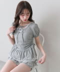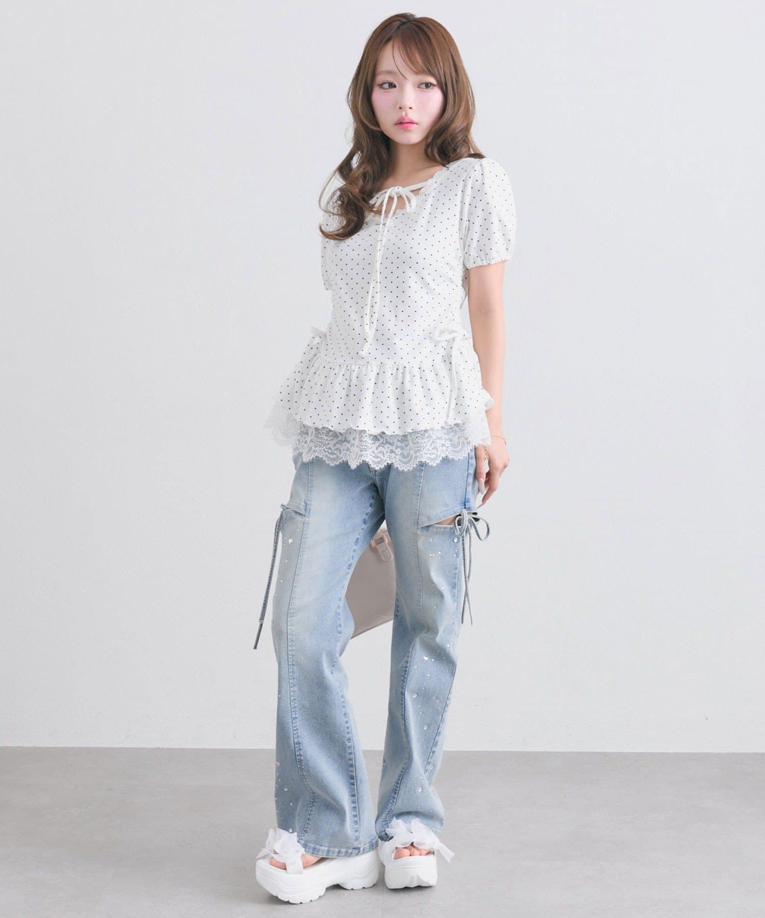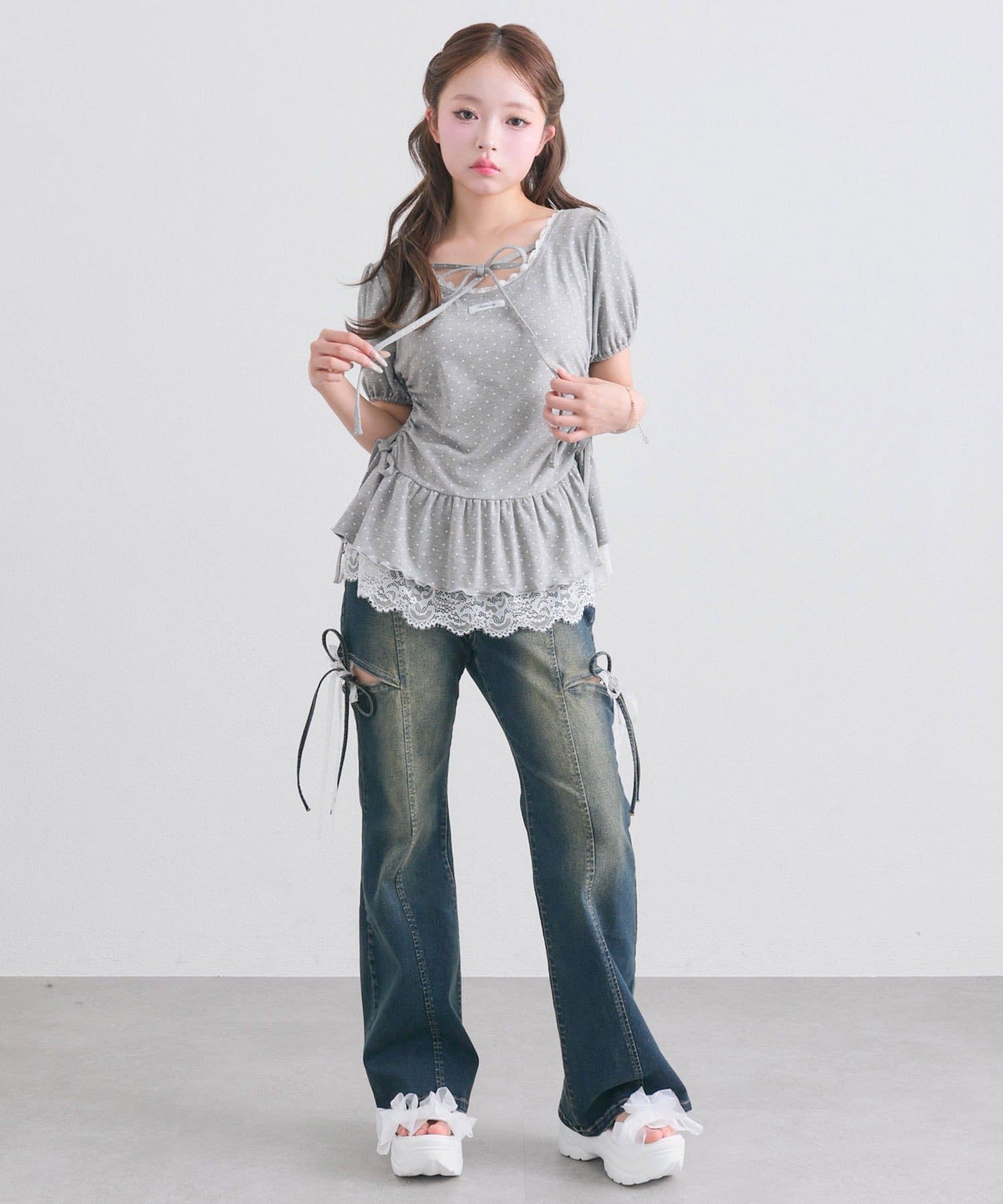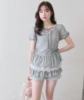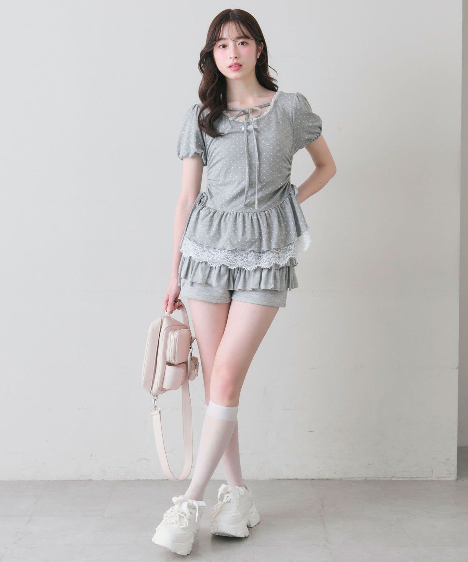 ・ミニボトムを合わせて韓国ガーリーにまとめてもかわいいです。
