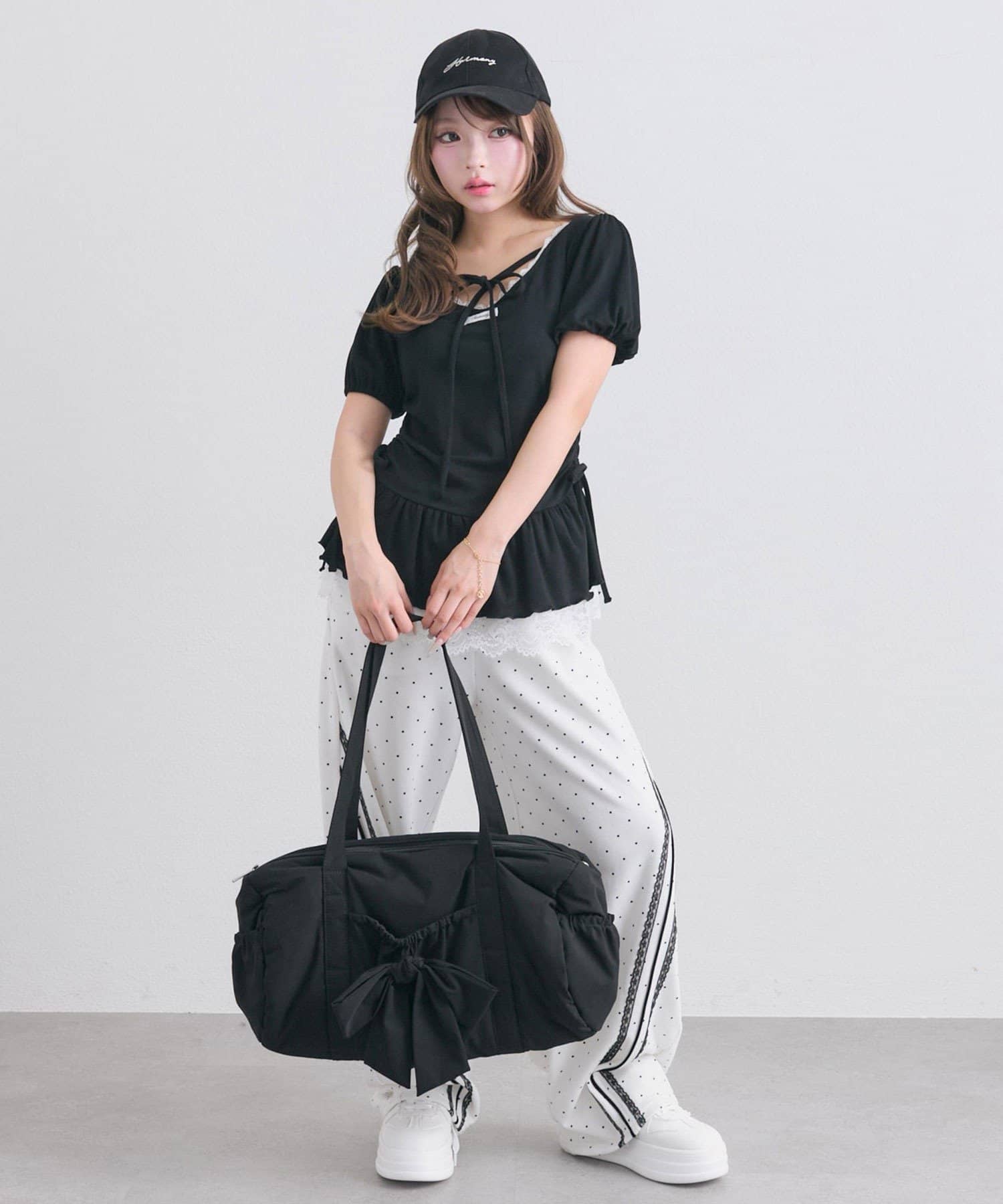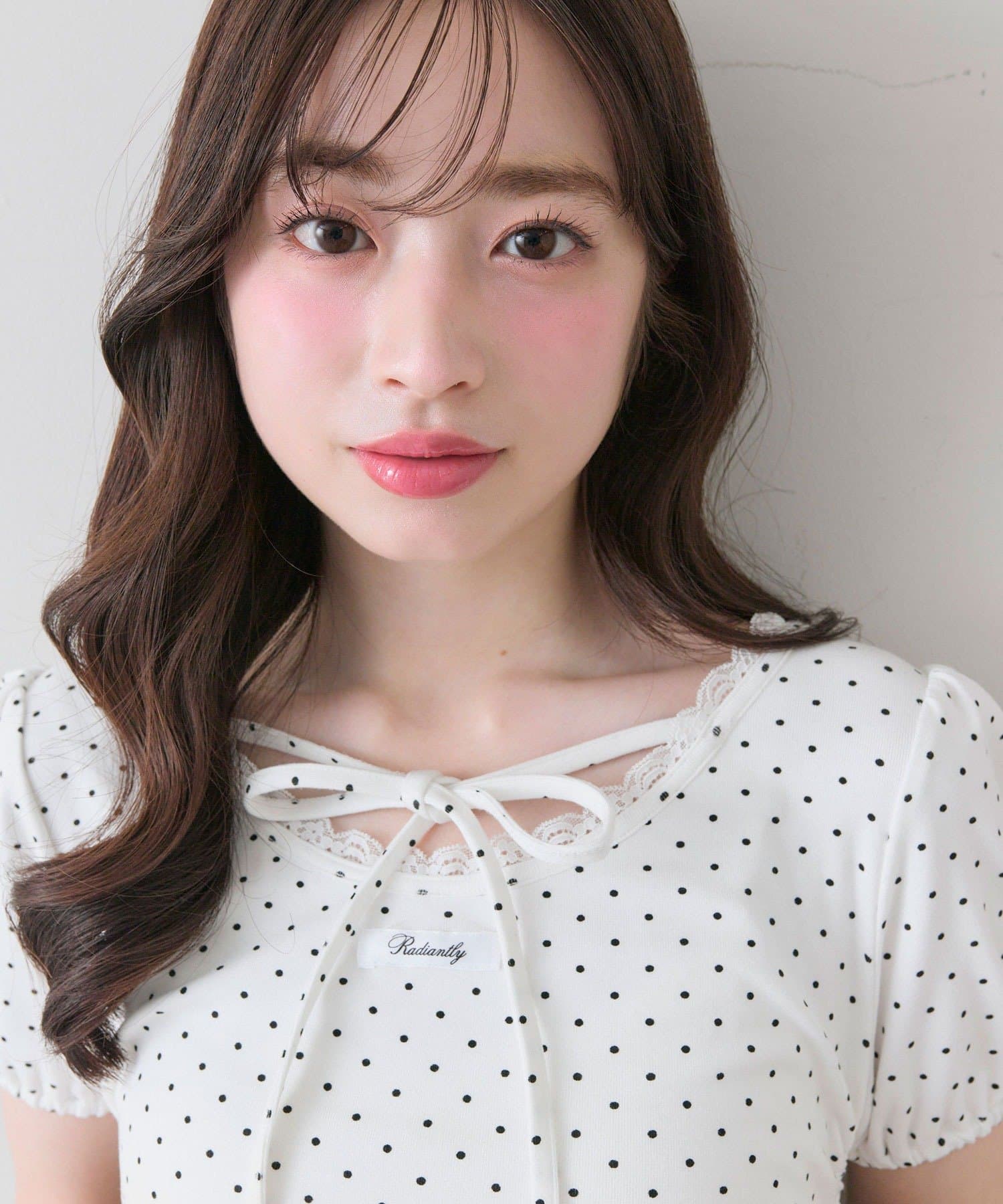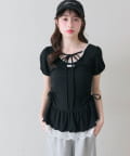 ・首元のリボンは前でクロスして後ろで結ぶと、顔周り華やかになり後ろ姿までかわいく着れます。