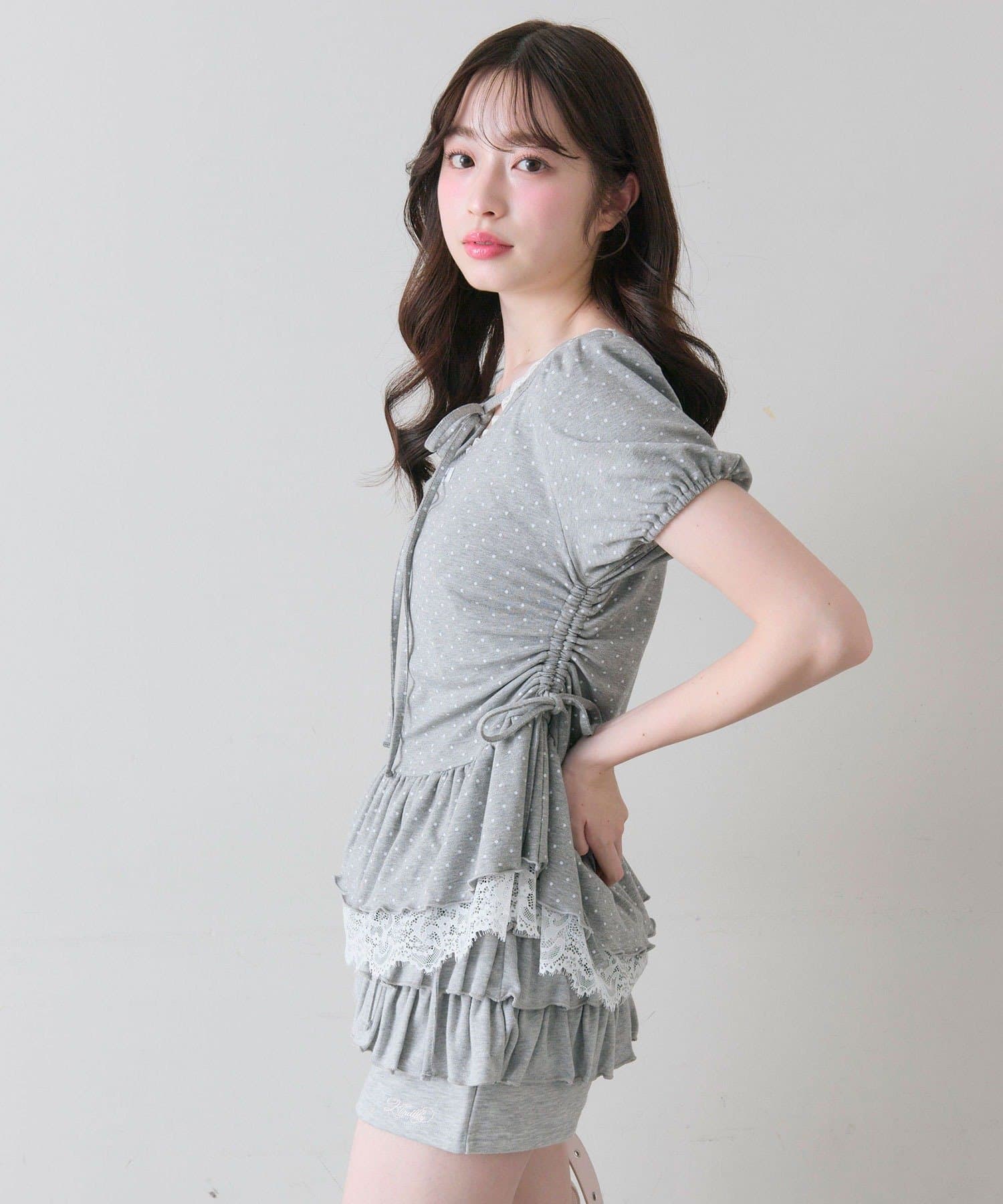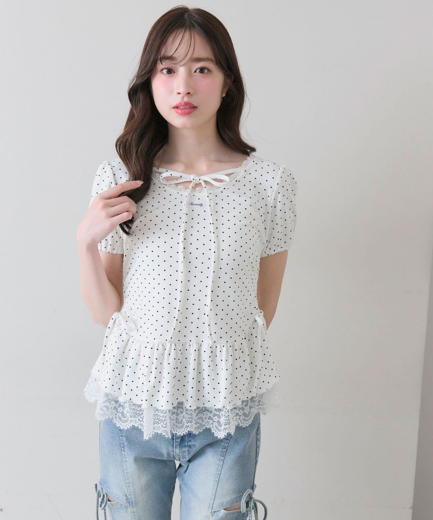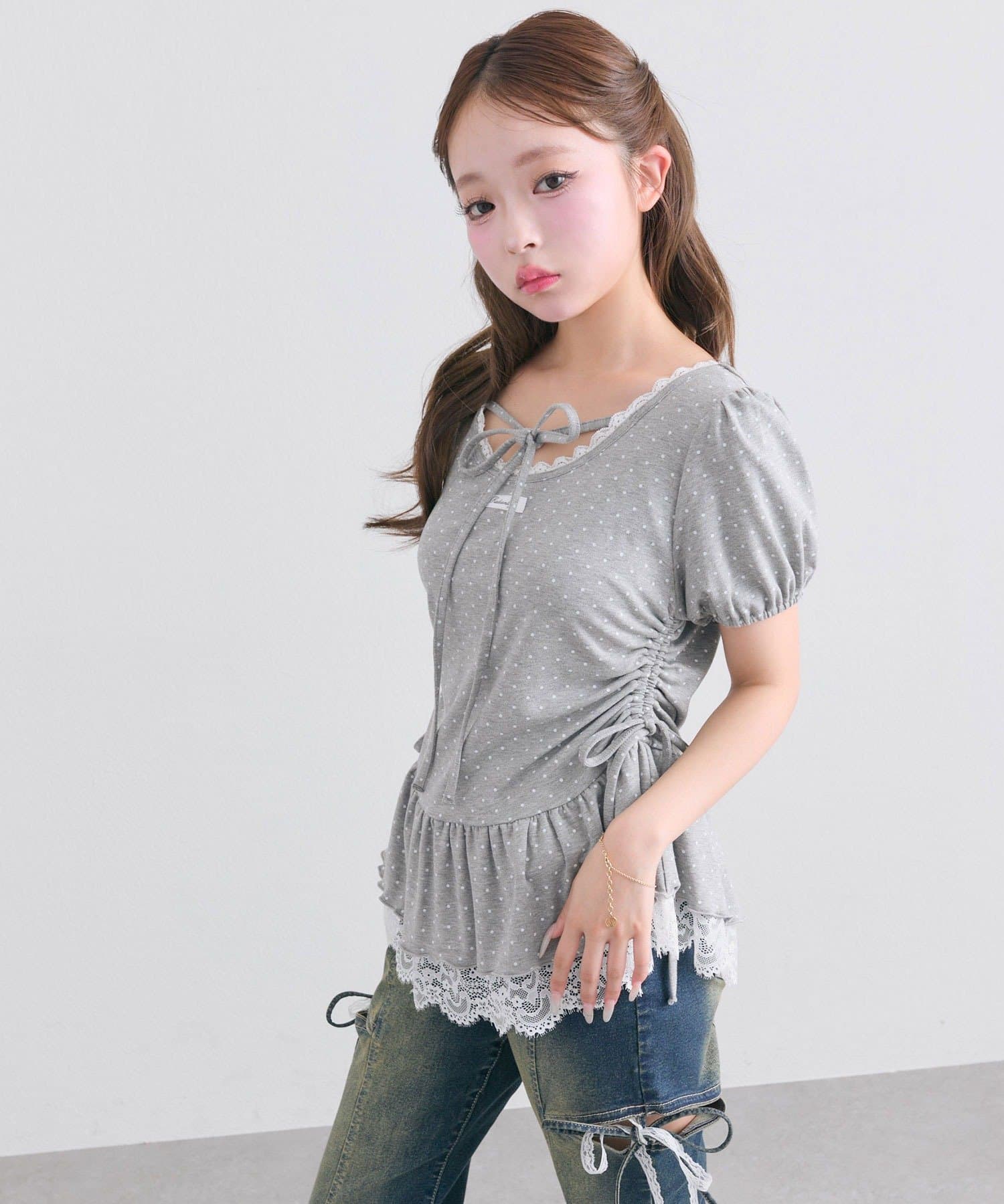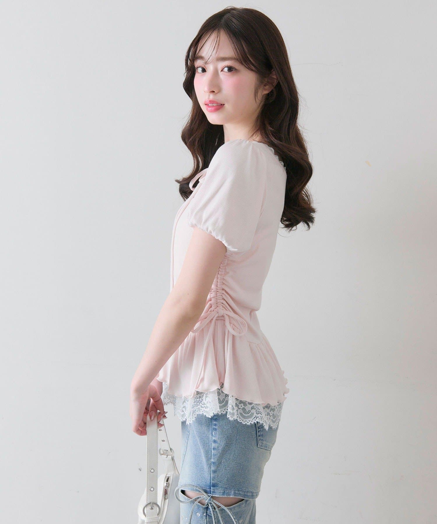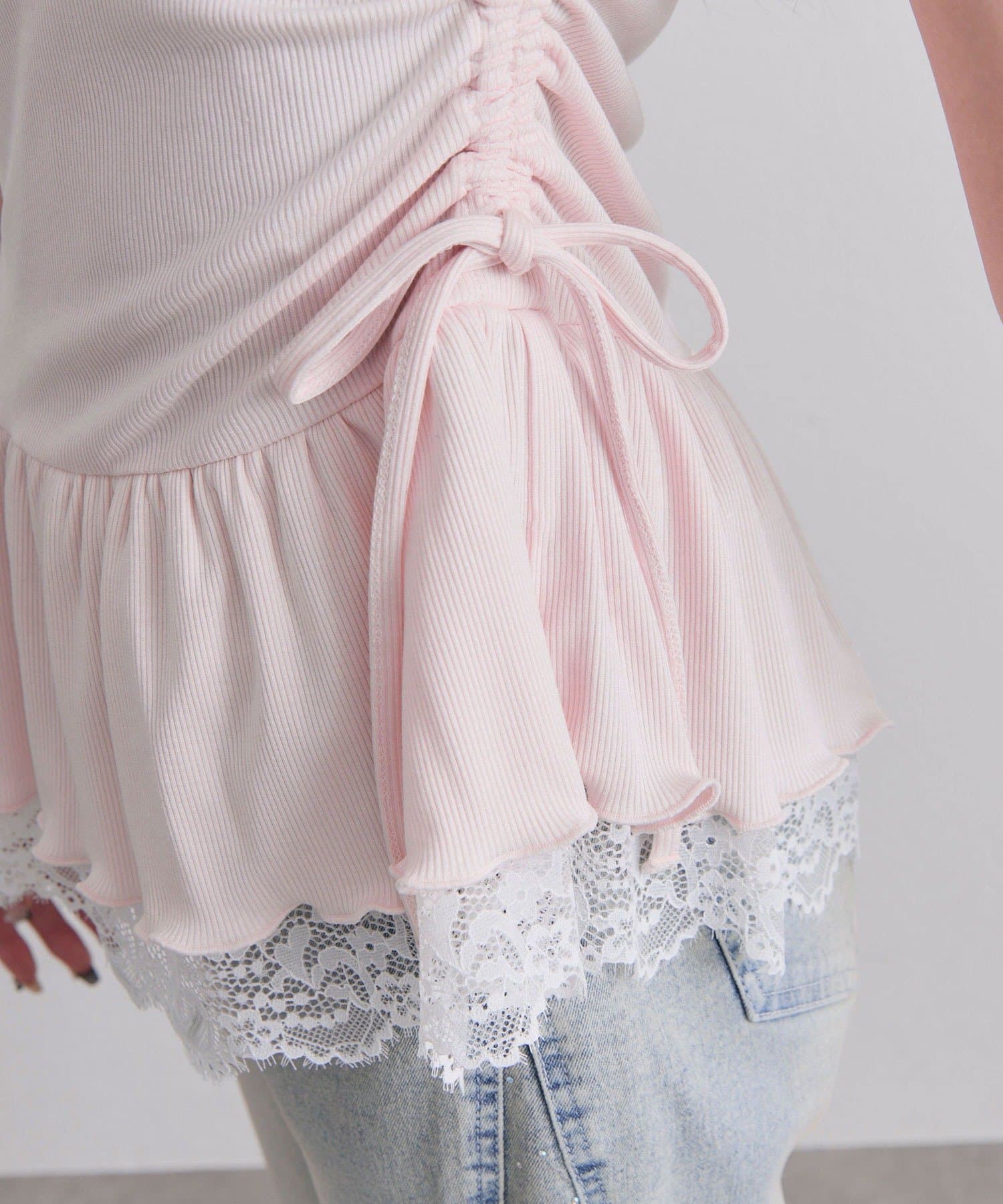 ・裾から覗くレースティアードが、華やかさをプラスしてくれるチュニック。