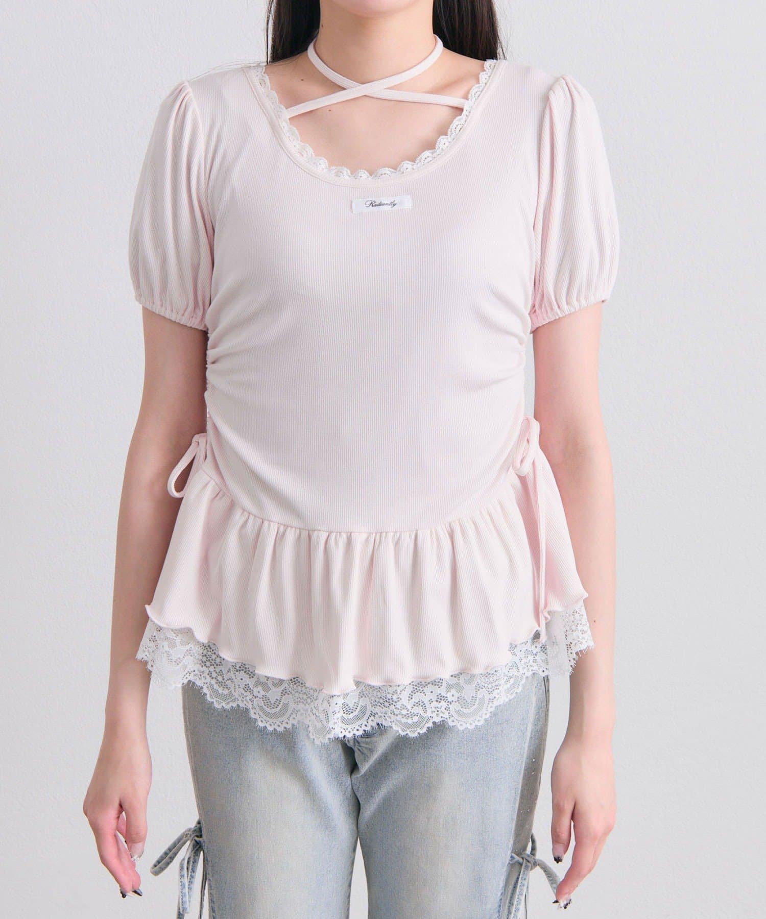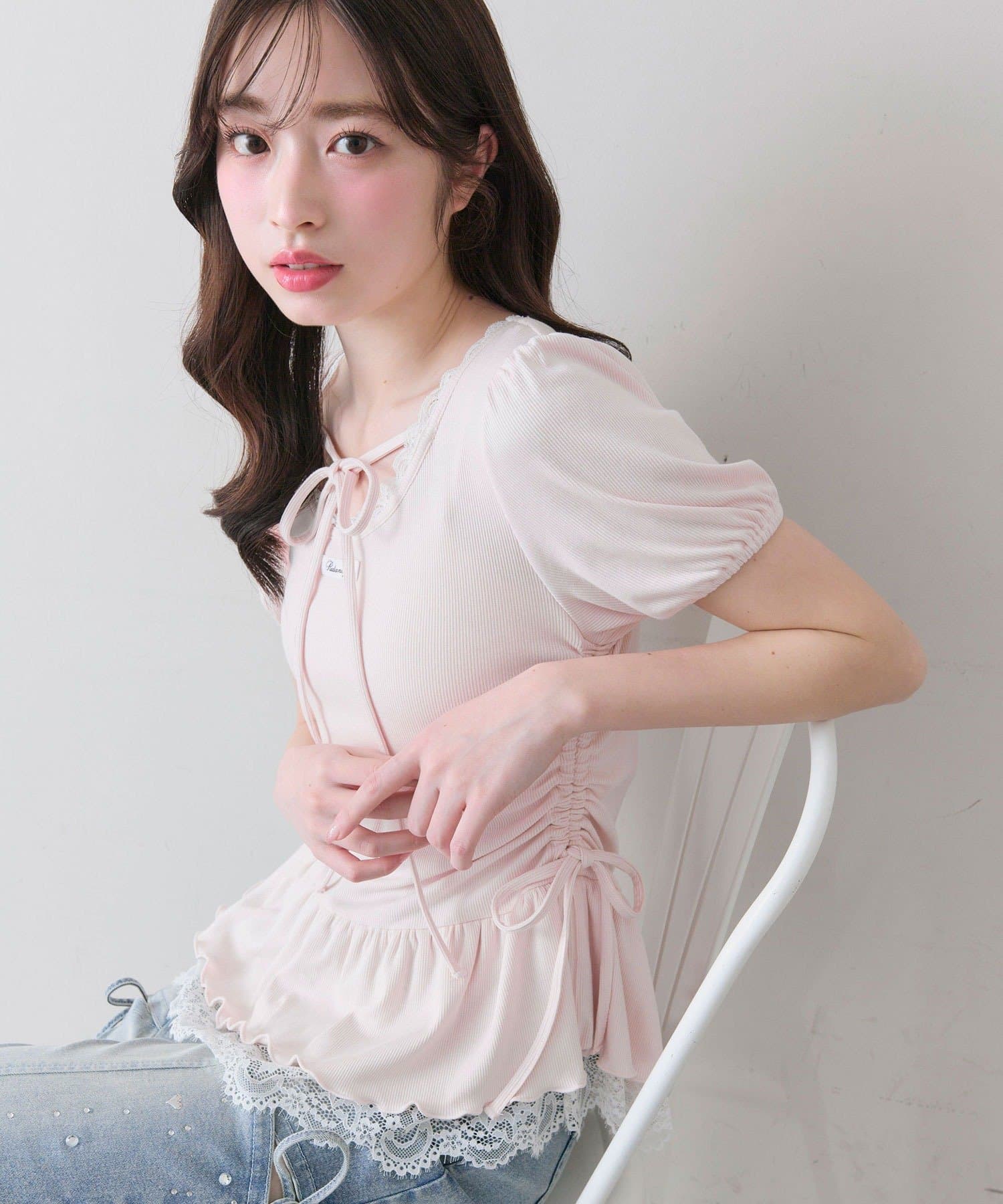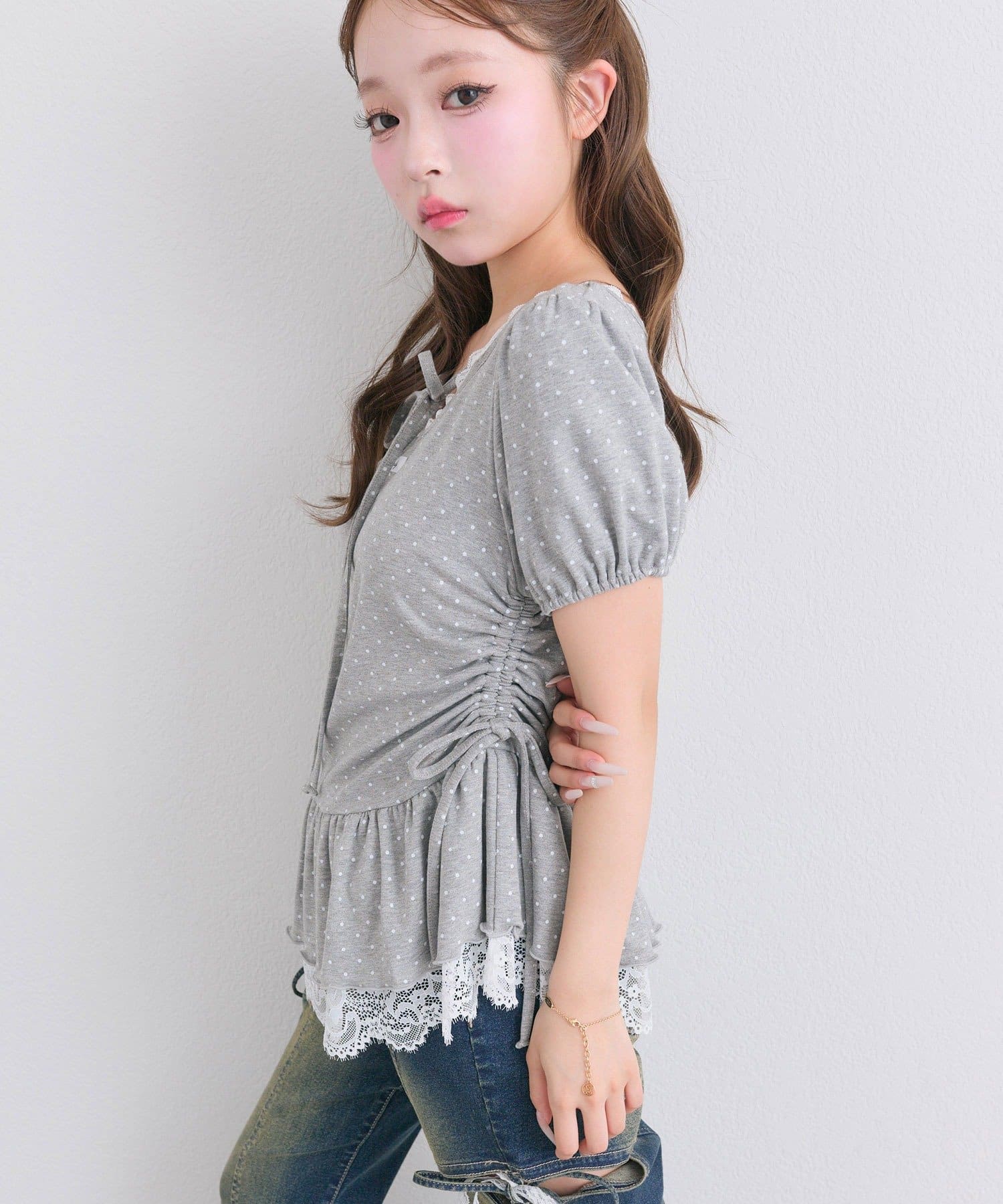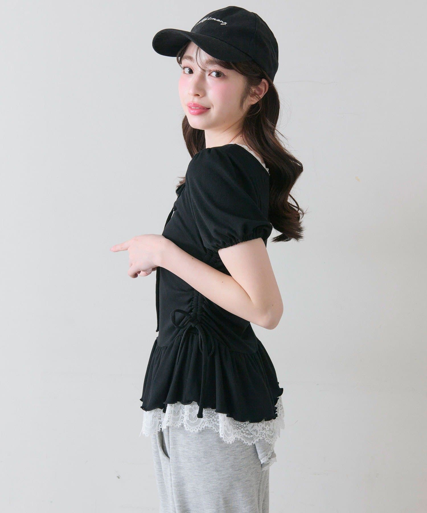 ・裾から覗くレースティアードが、華やかさをプラスしてくれるチュニック。