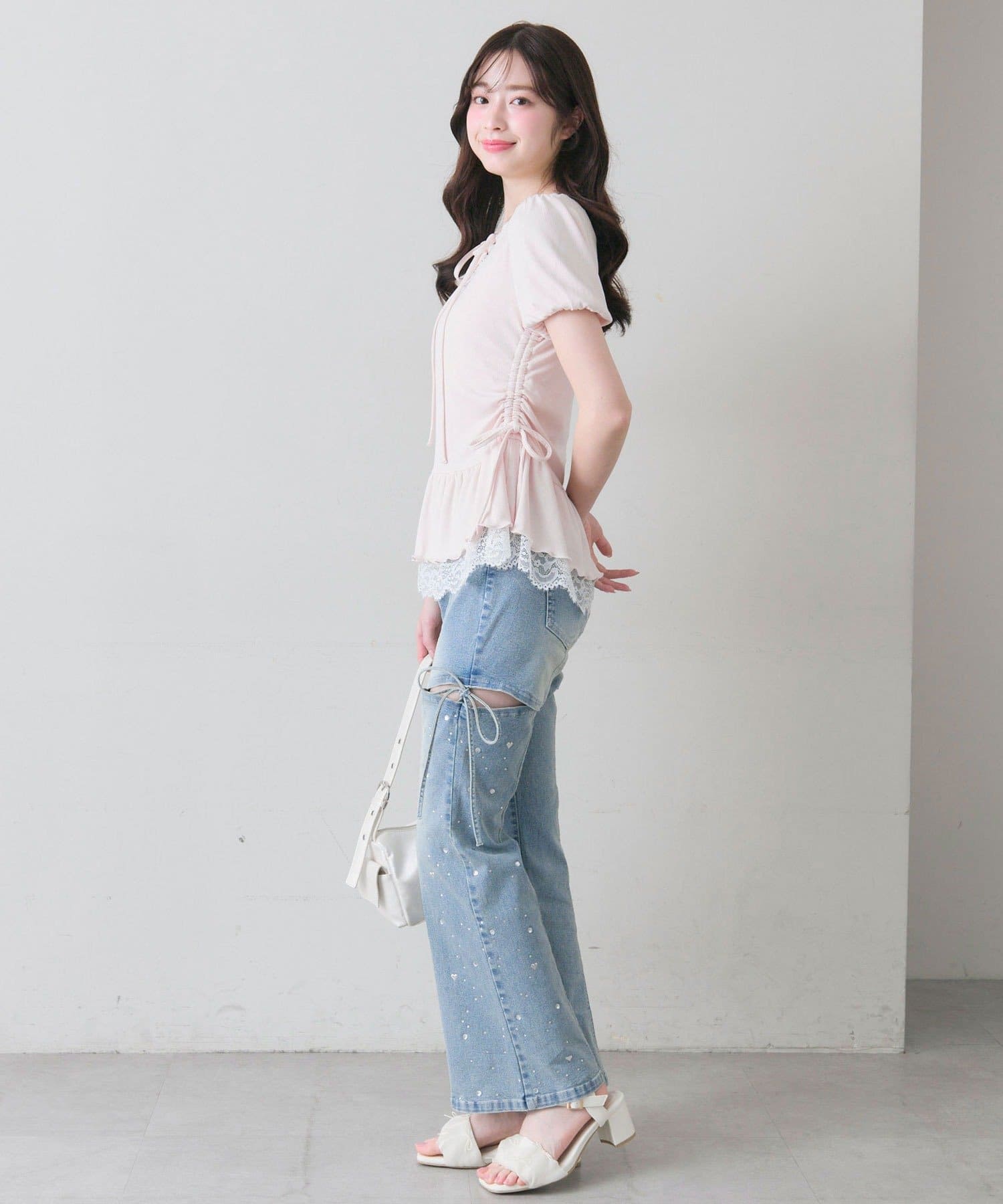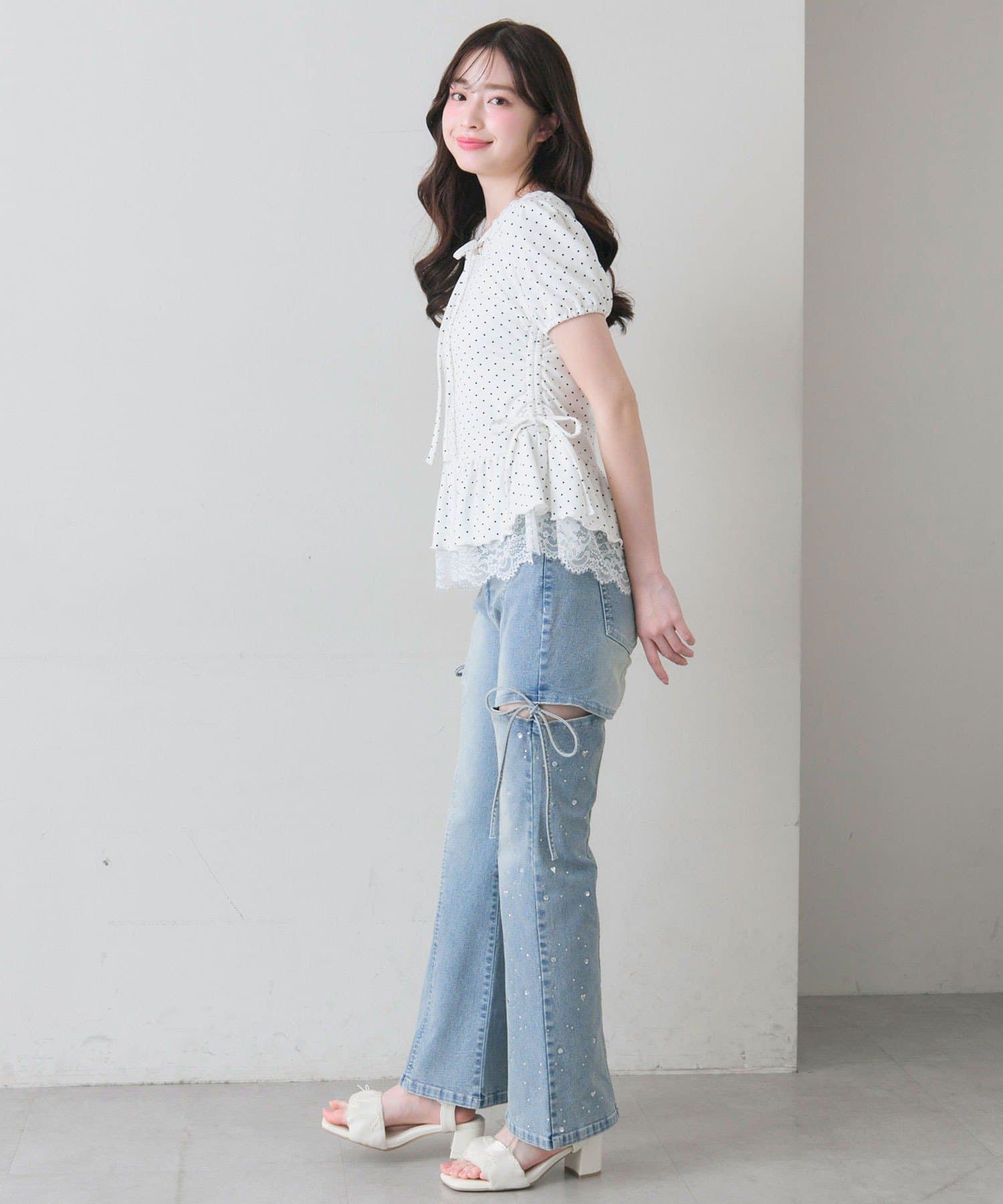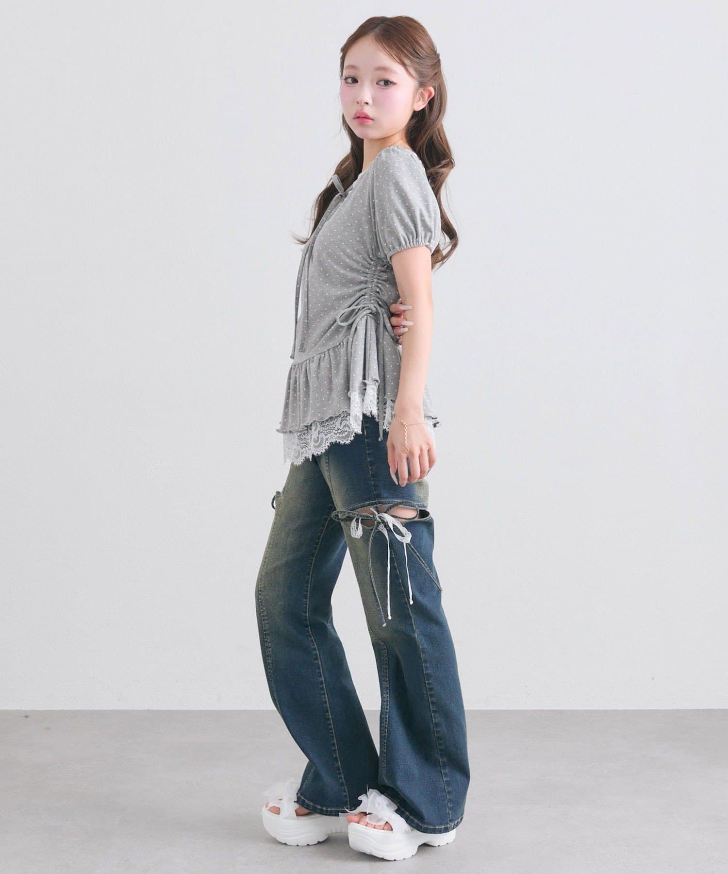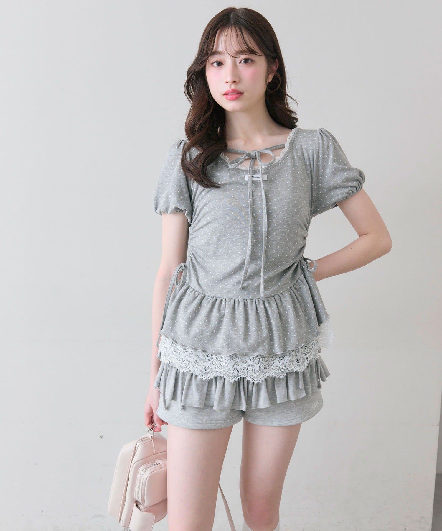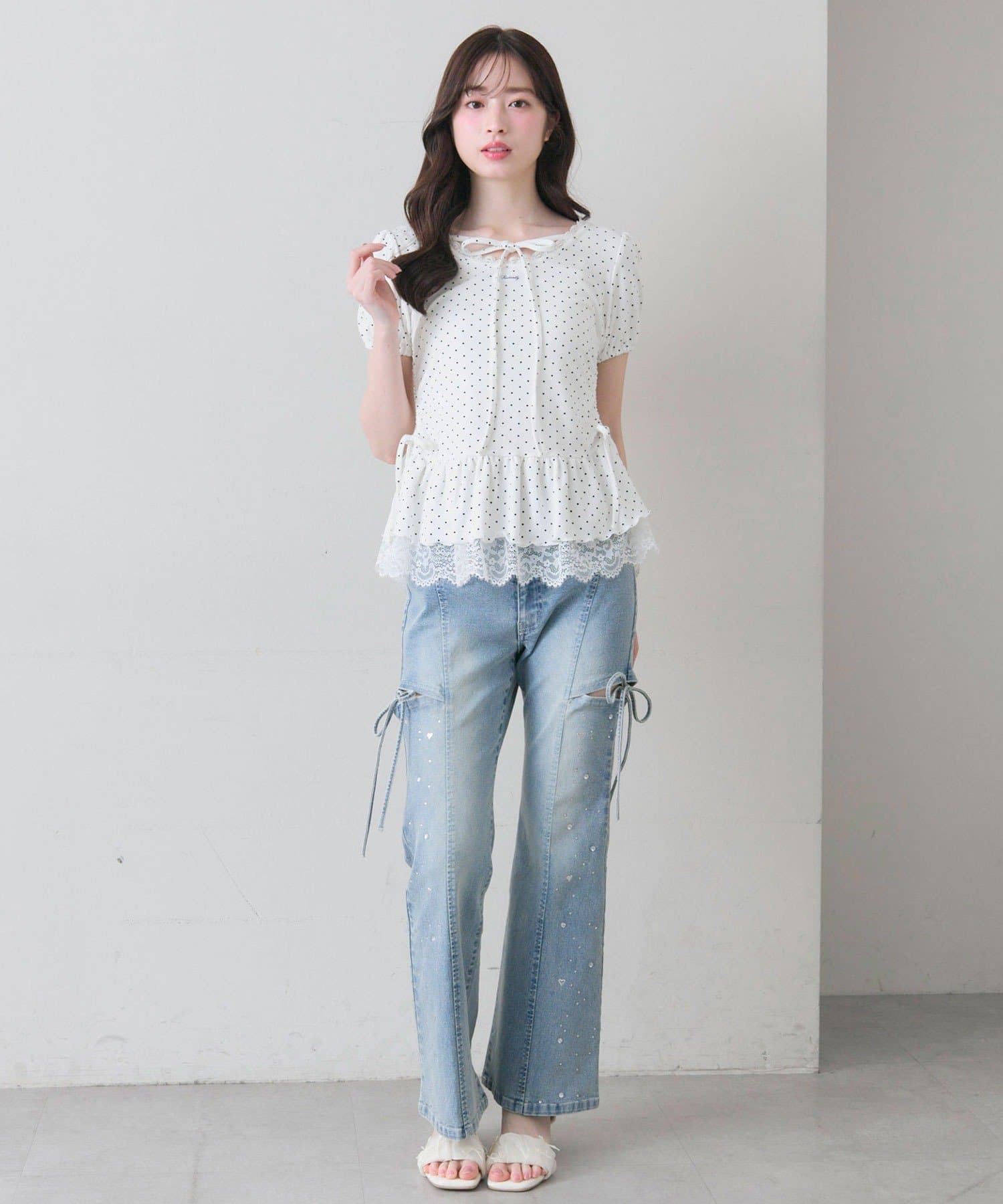 ・裾から覗くレースティアードが、華やかさをプラスしてくれるチュニック。