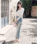 ・デニムパンツでカジュアルダウンすれば、抜け感のある大人可愛いスタイルに。