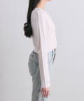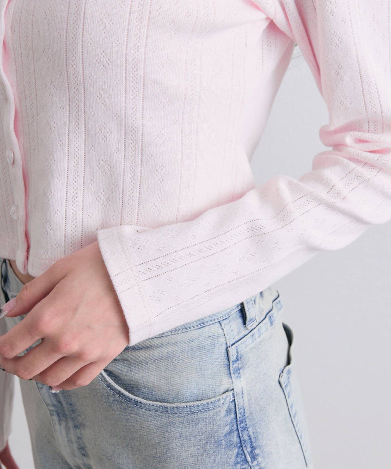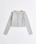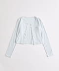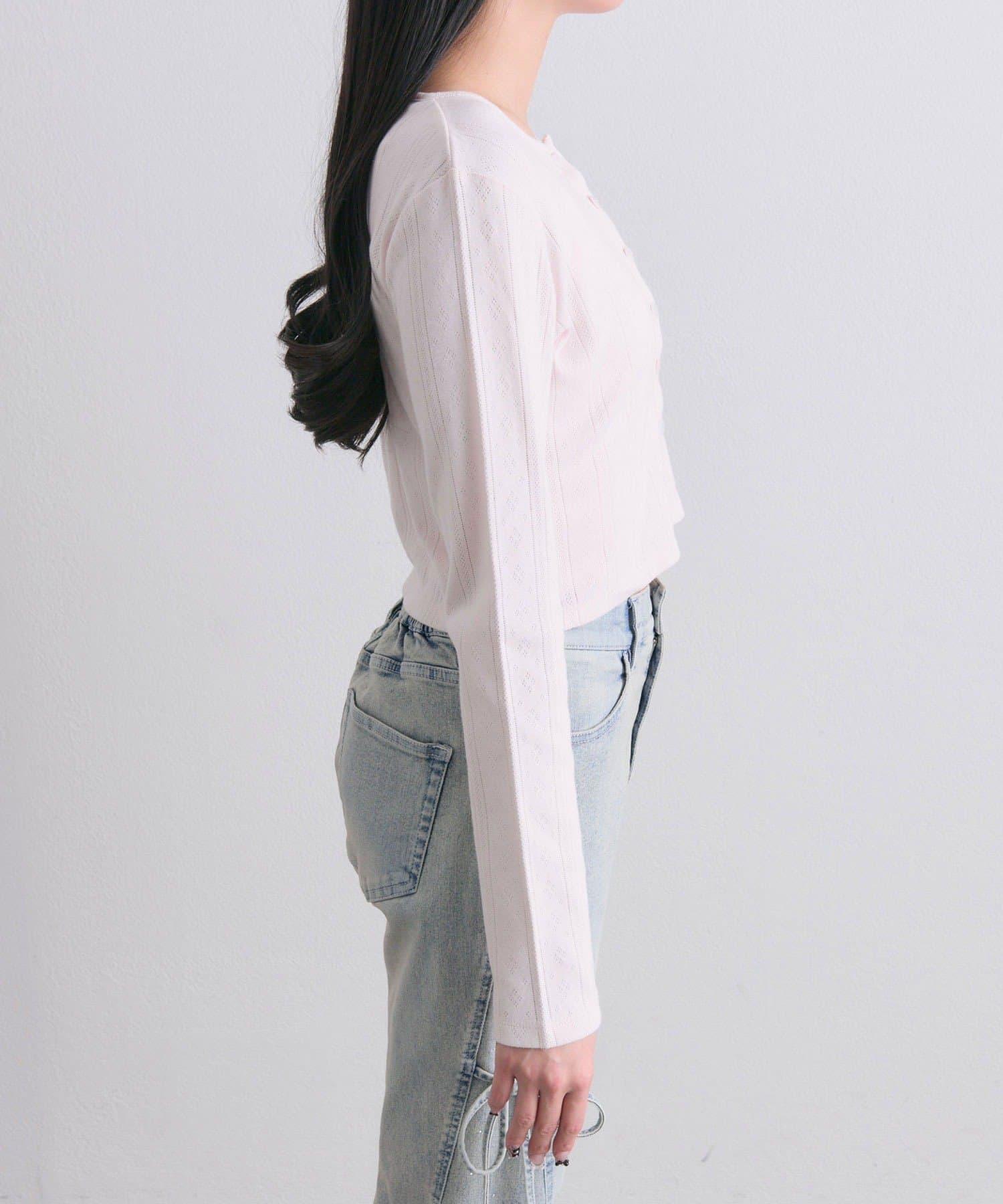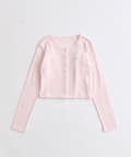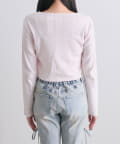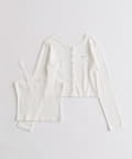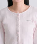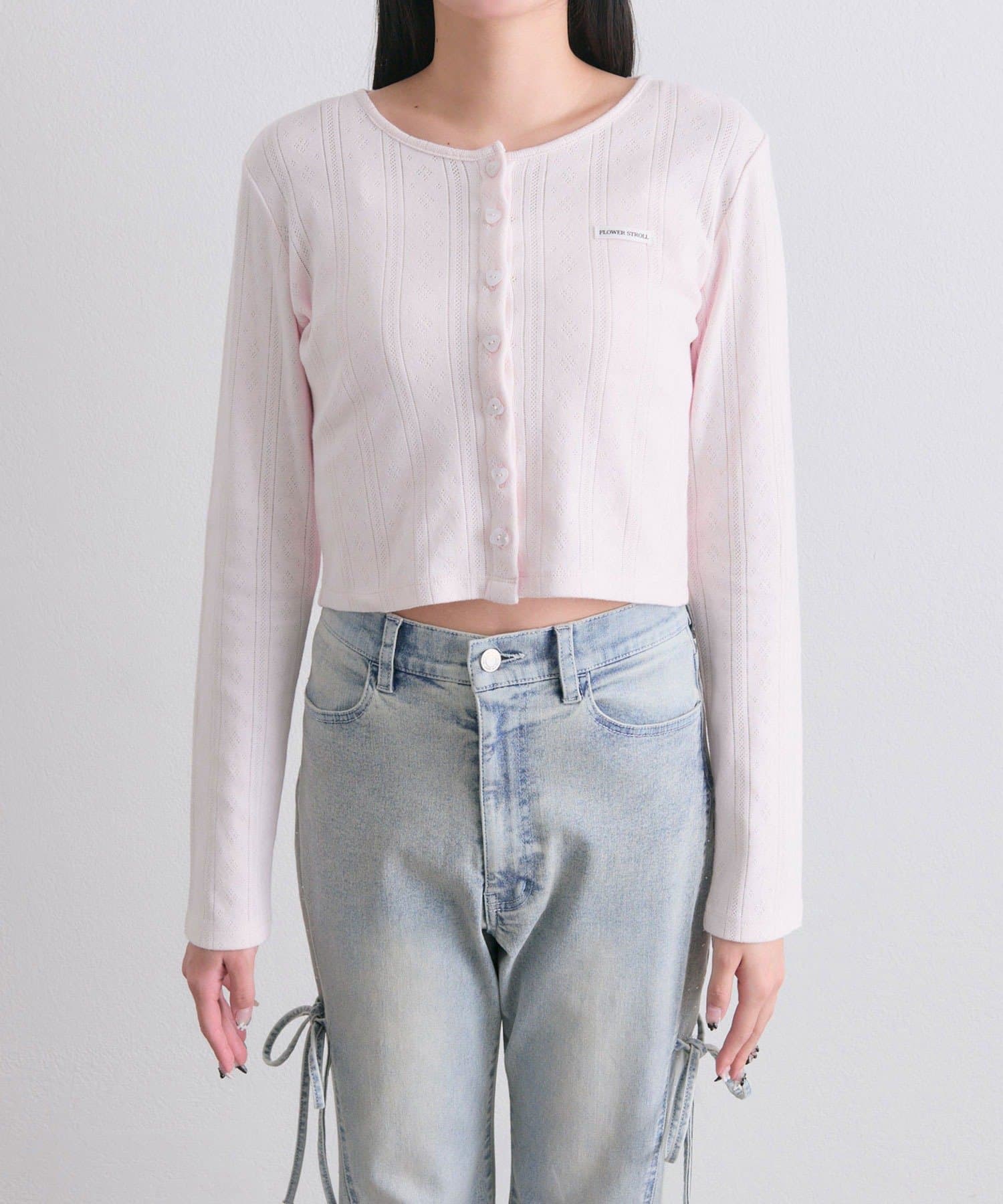 ・カーデのボタンはハート型でさりげないアクセントになり、甘さをプラスします。