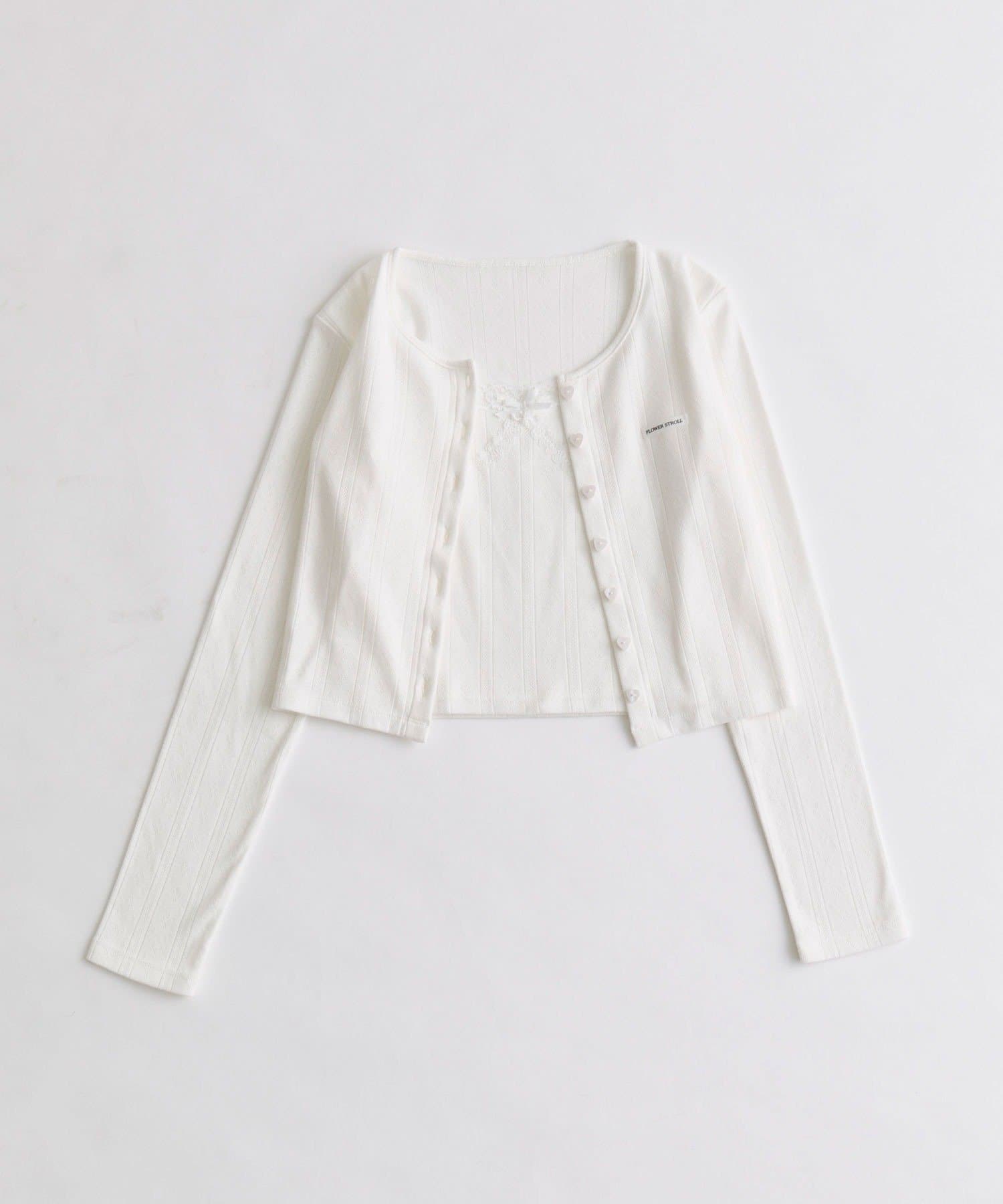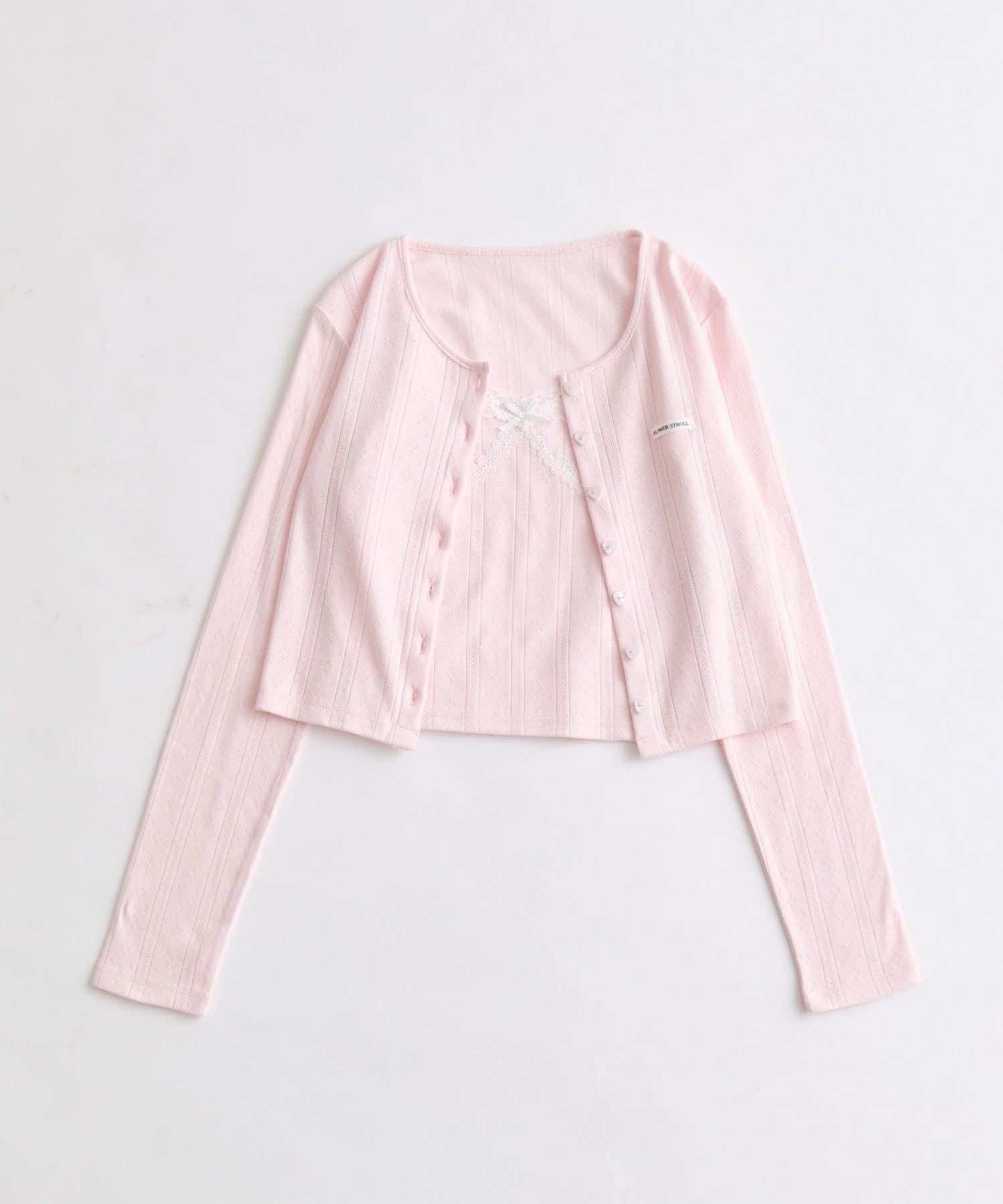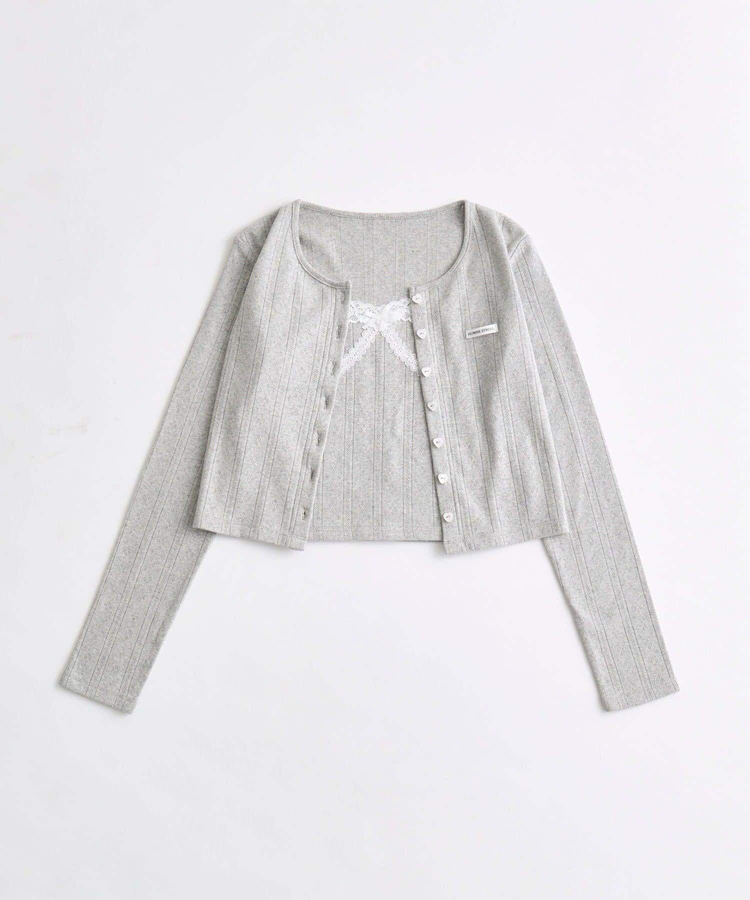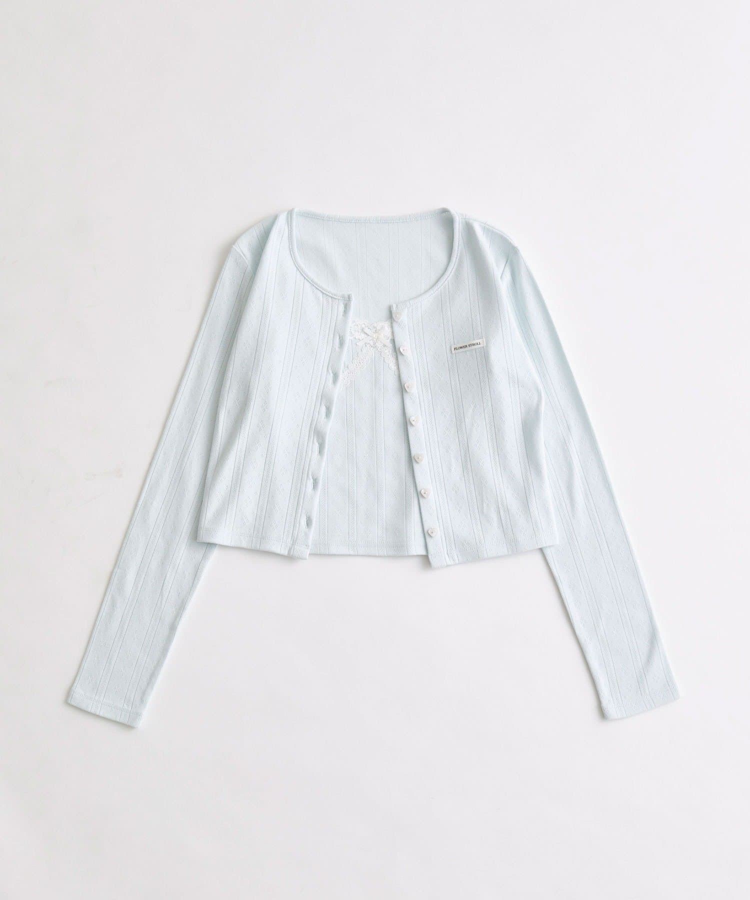 ・繊細な透かし編みのカーディガンと、レースたっぷりのキャミソールがセットになったアイテム。