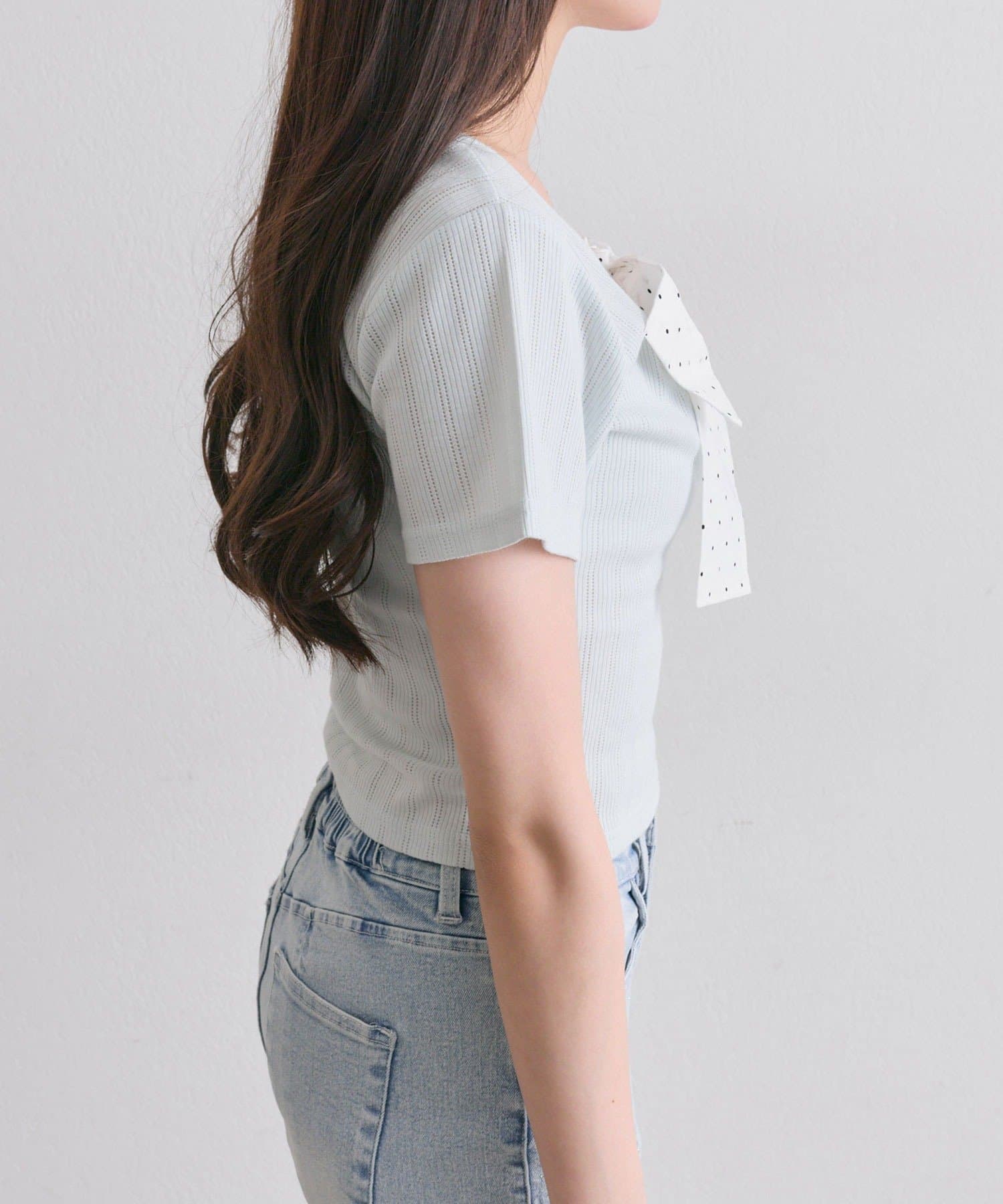 TOP > OLIVE des OLIVE > レディース > トップス > Tシャツ/カットソー > リボン映え半袖トップス