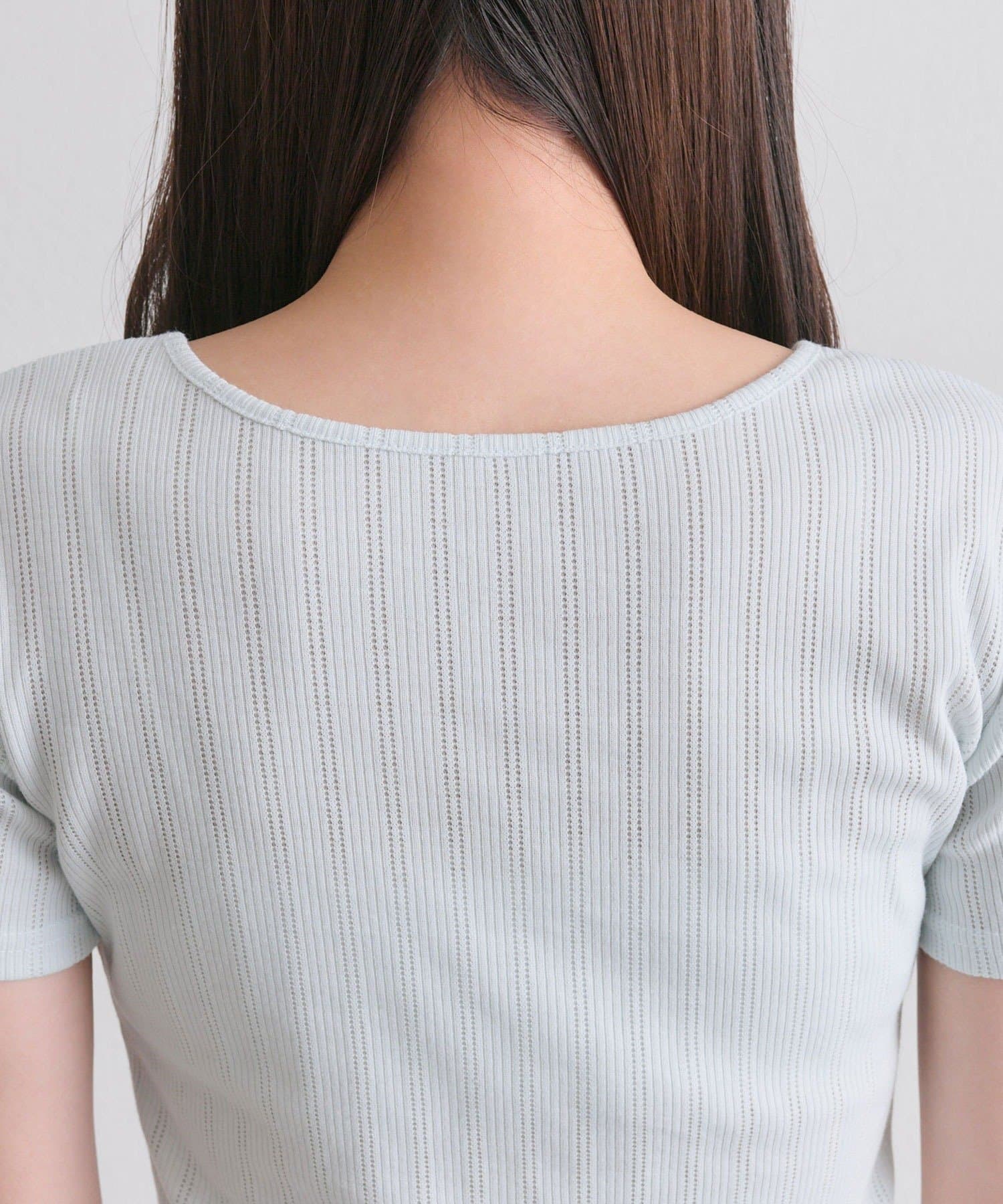 ・広めに開いたスクエアネックが、デコルテラインをきれいにみせてくれます。