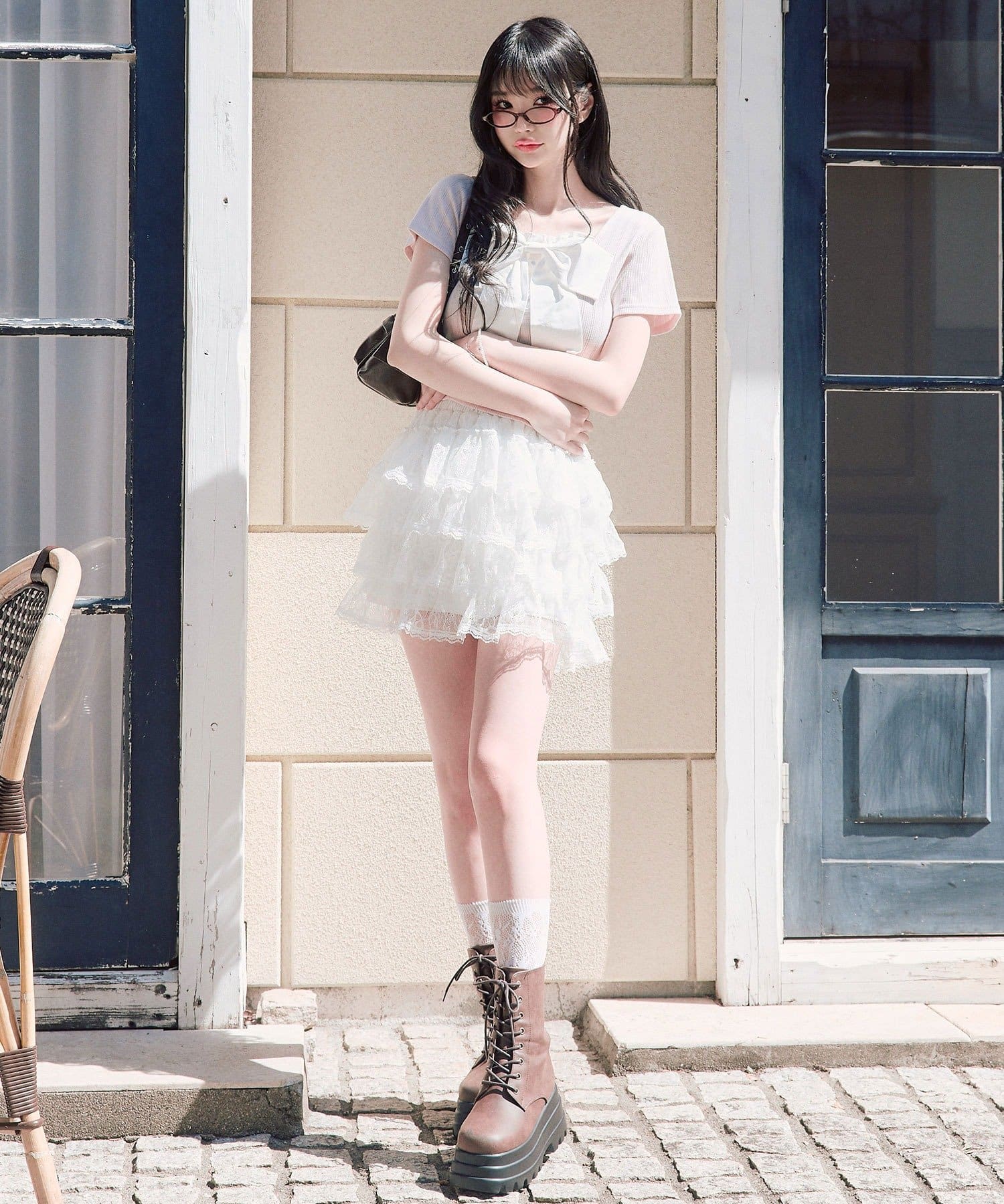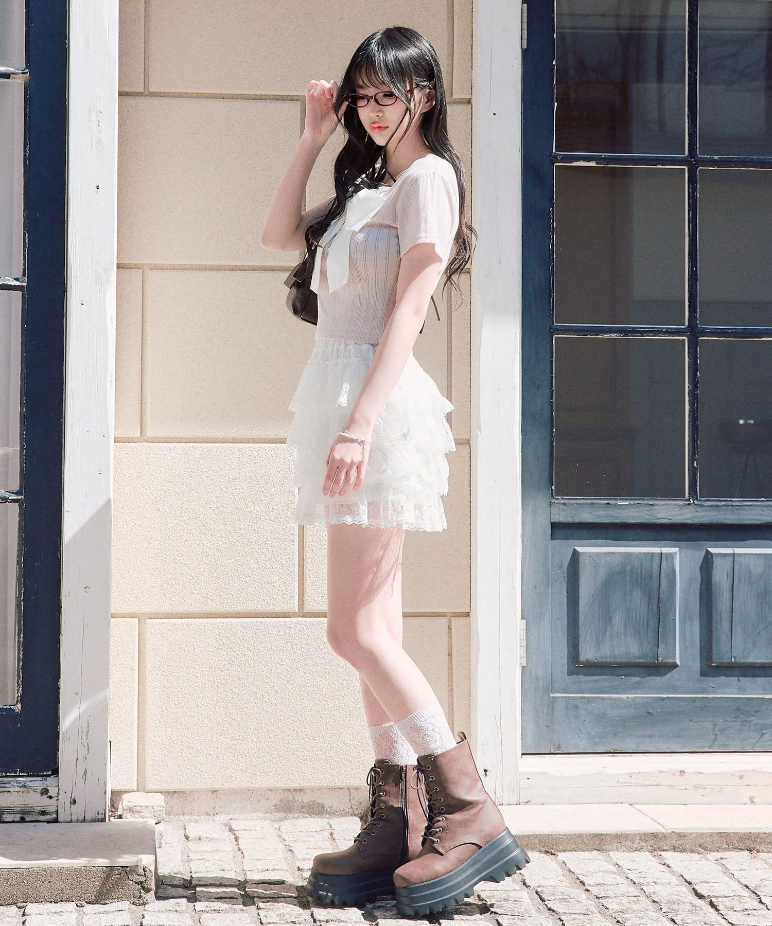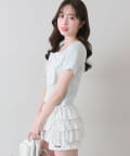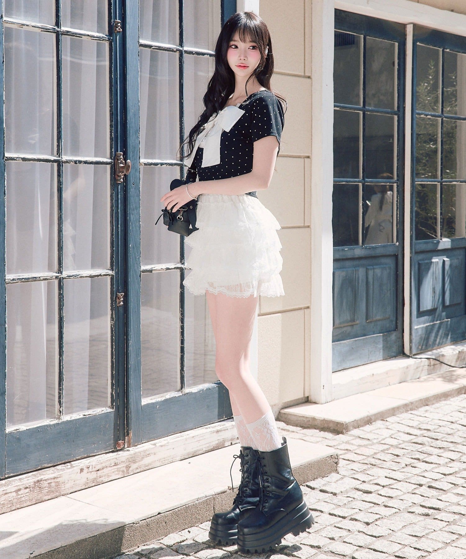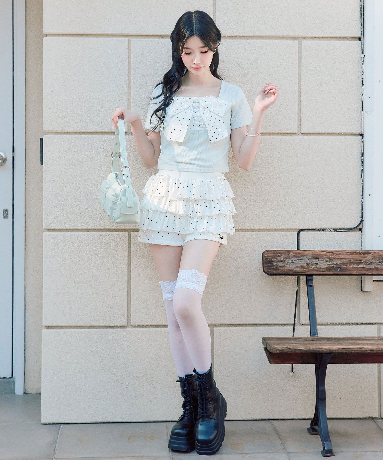 ・ミニスカートやショートパンツを合わせた王道ガーリーコーデがおすすめ。