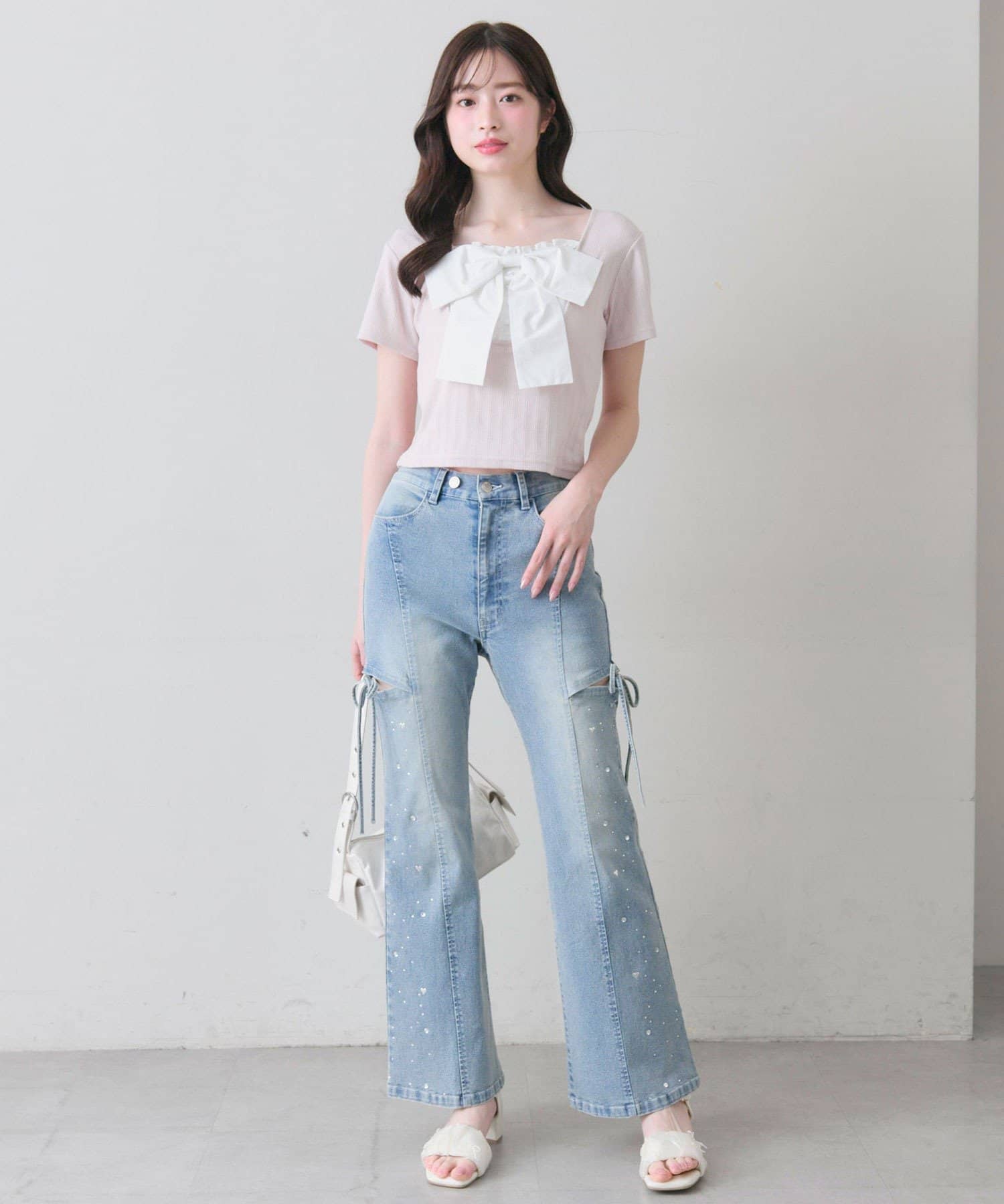 ・デニムパンツ合わせで、甘さを抑えた大人カジュアルな着こなしもかわいいです。