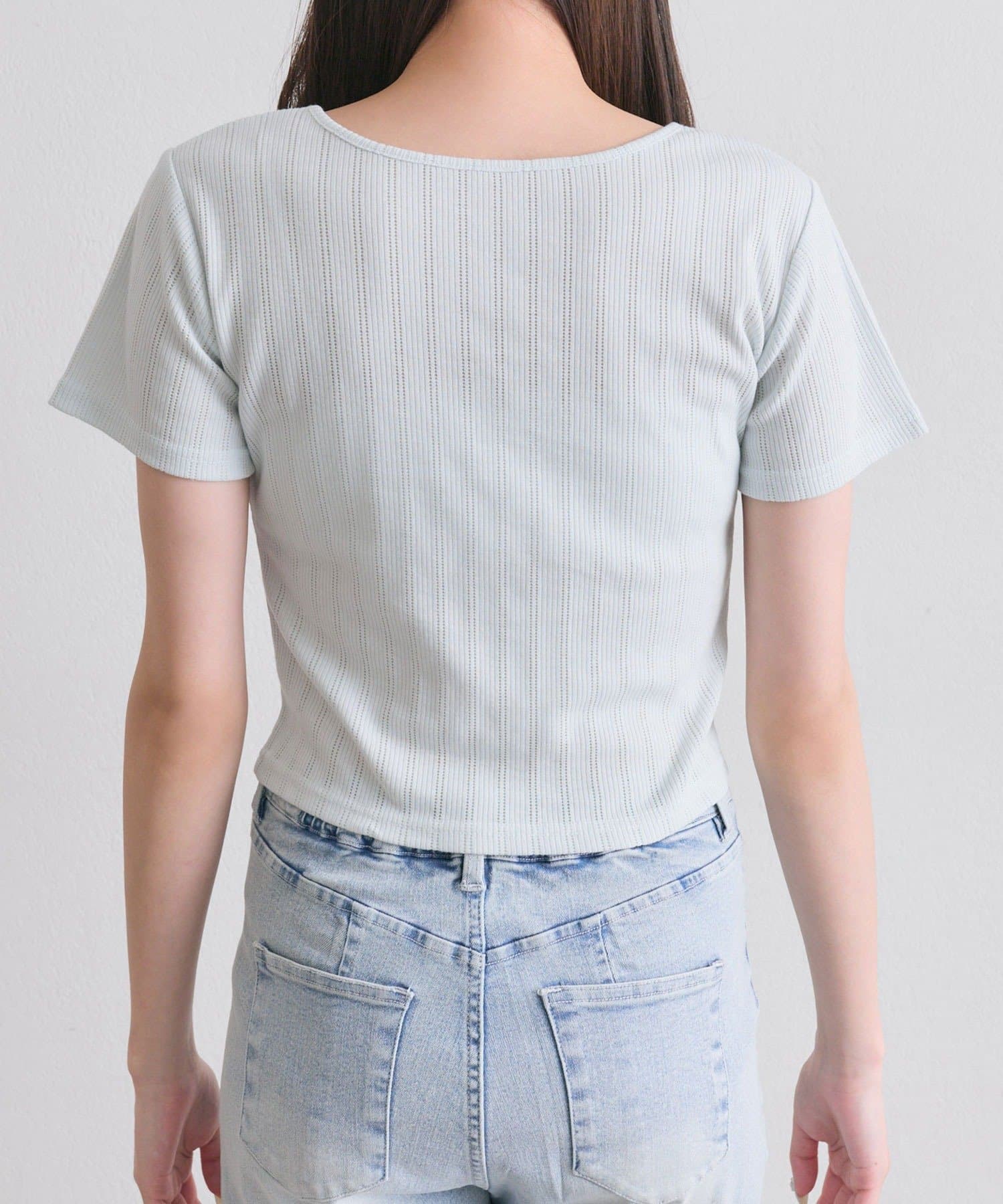 ・広めに開いたスクエアネックが、デコルテラインをきれいにみせてくれます。