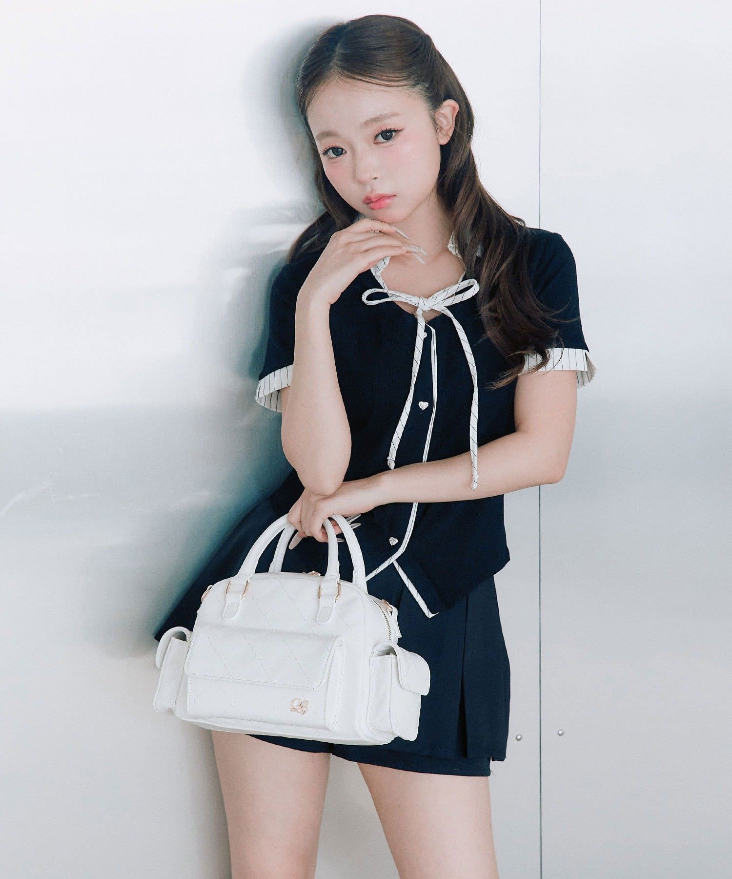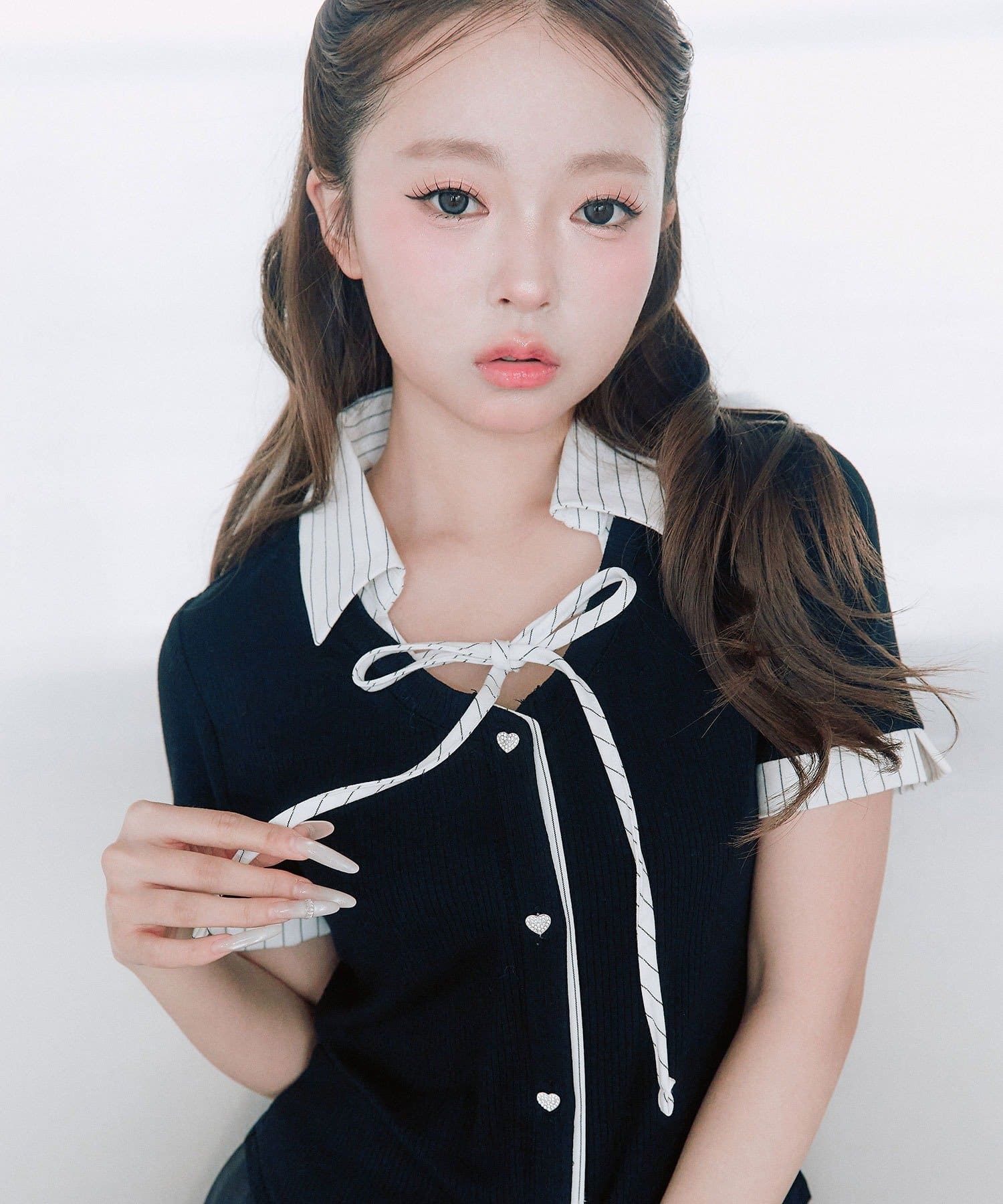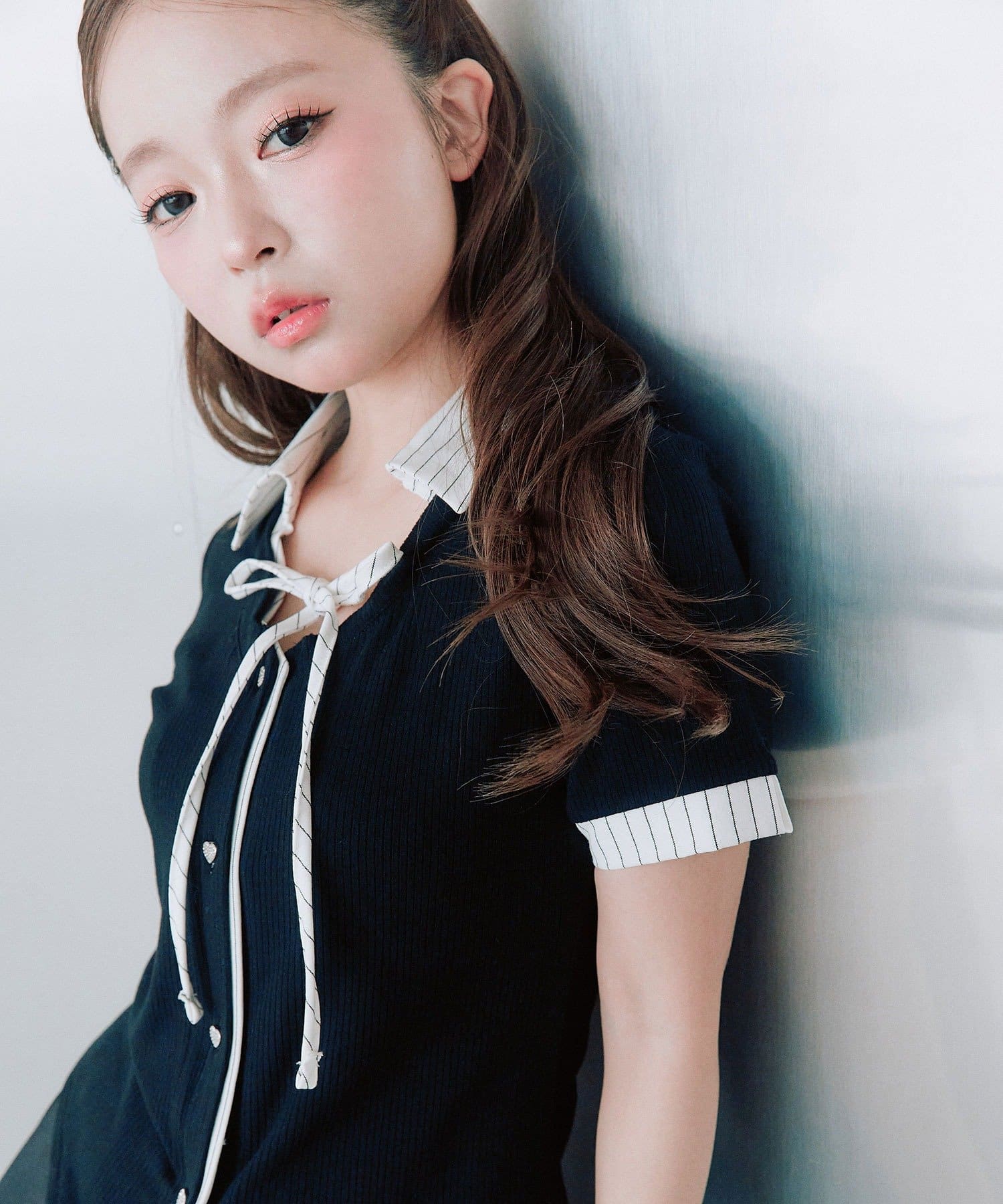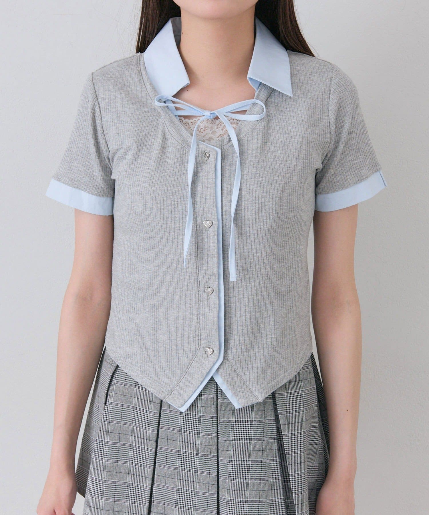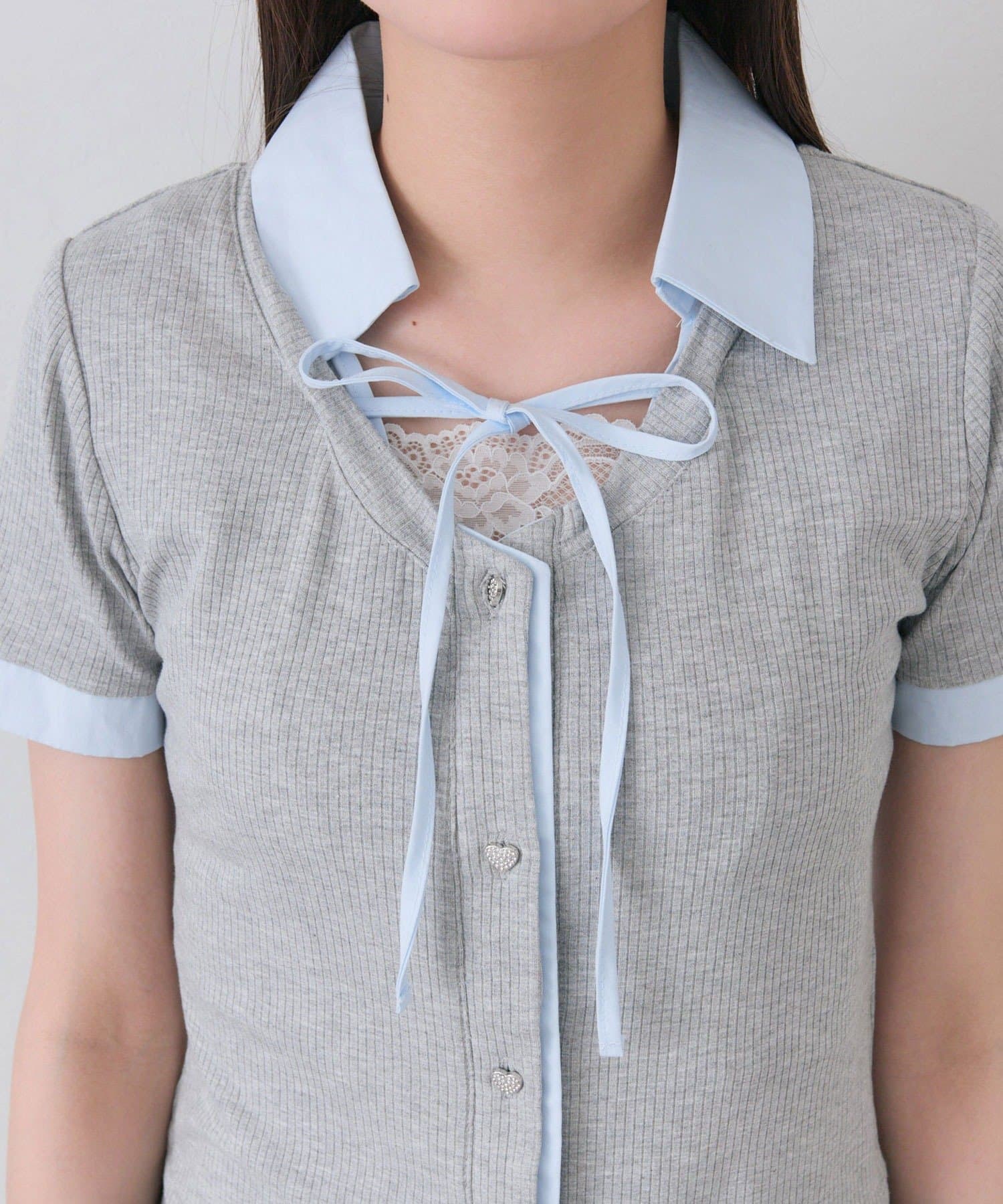 ・胸元の華奢なリボンやハートボタンが女の子らしい甘さをプラスしてくれます。