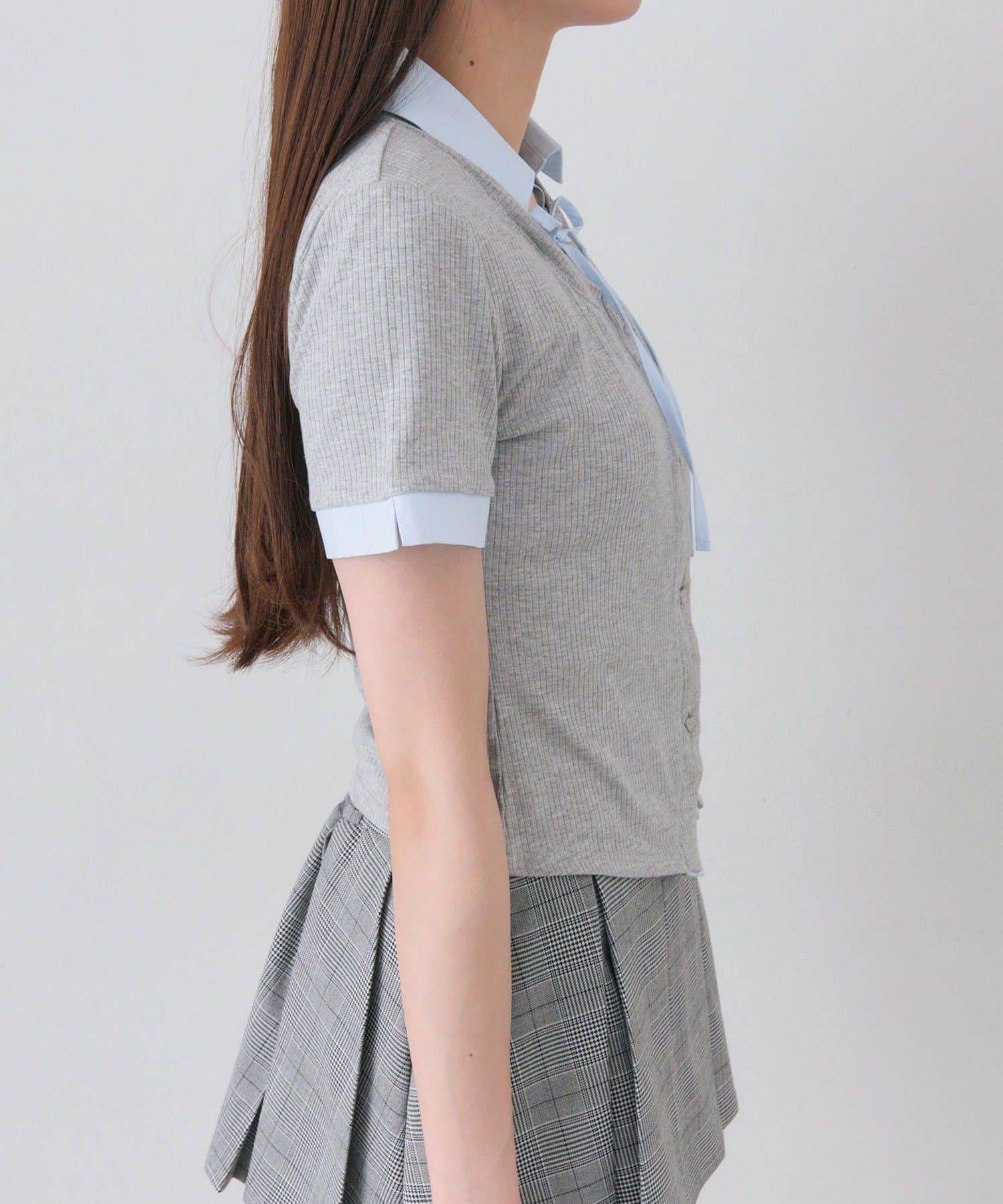 ・程よくフィットするリブ素材で華奢見えが期待できます。