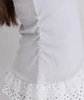 ・裾にはフリルをドッキングし、1枚でレイヤードスタイルが完成します。
