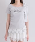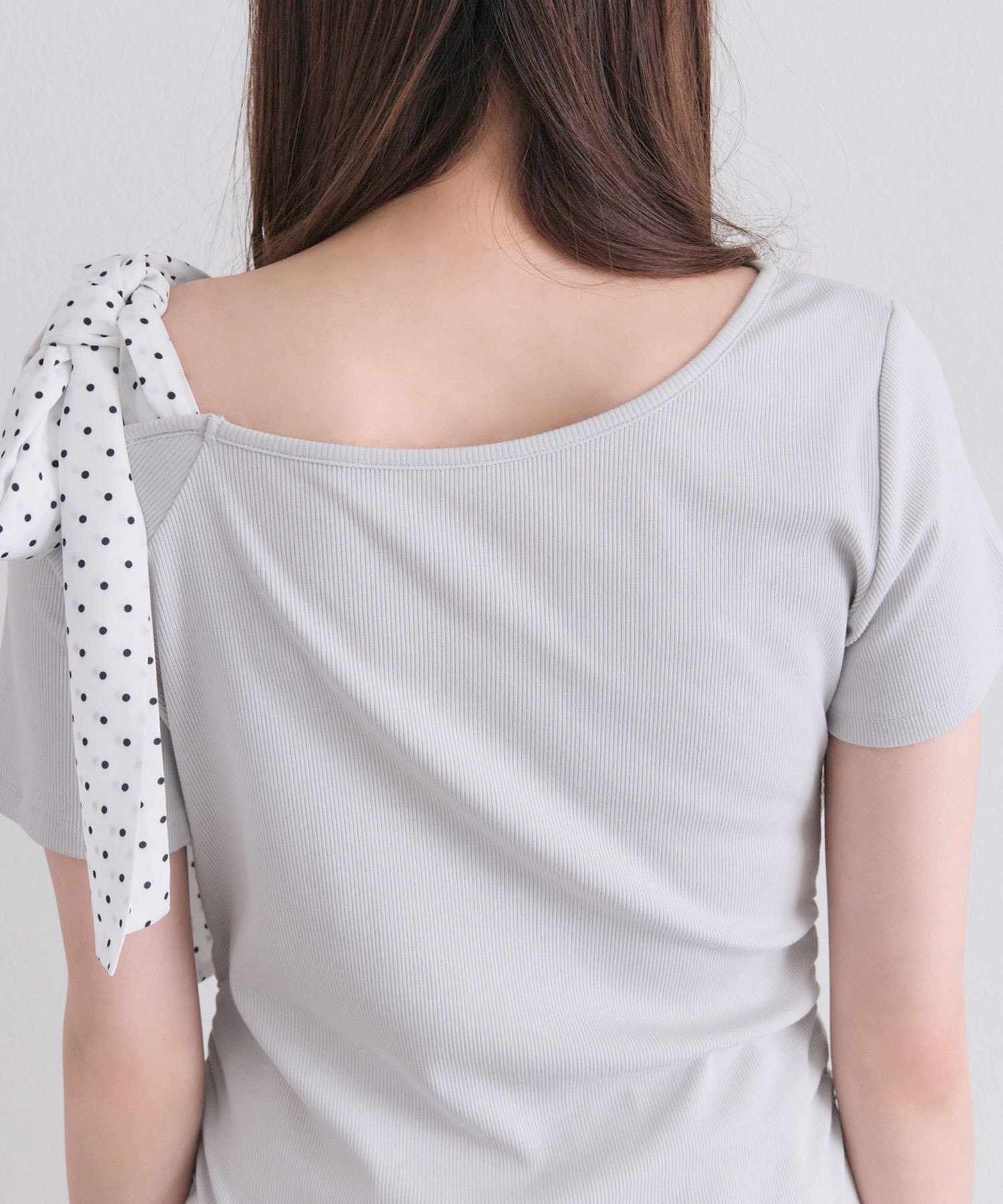 ・ワンショルですがリボンで肌が見えすぎず、程よい肌見せが叶います。