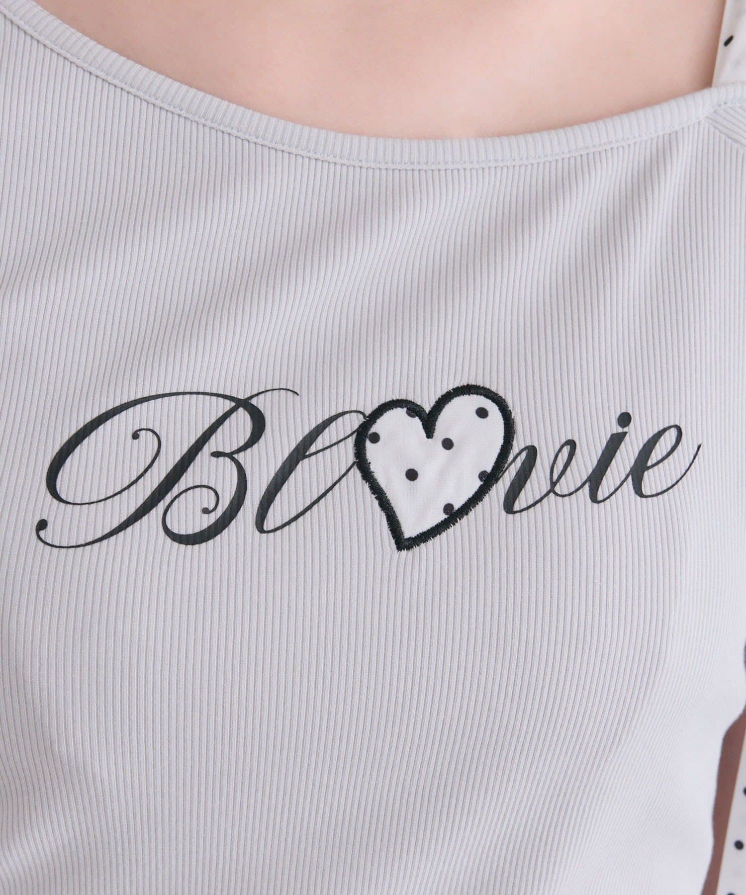 ・フロントのロゴがさりげないアクセントになり、甘すぎず着やすい印象に。