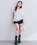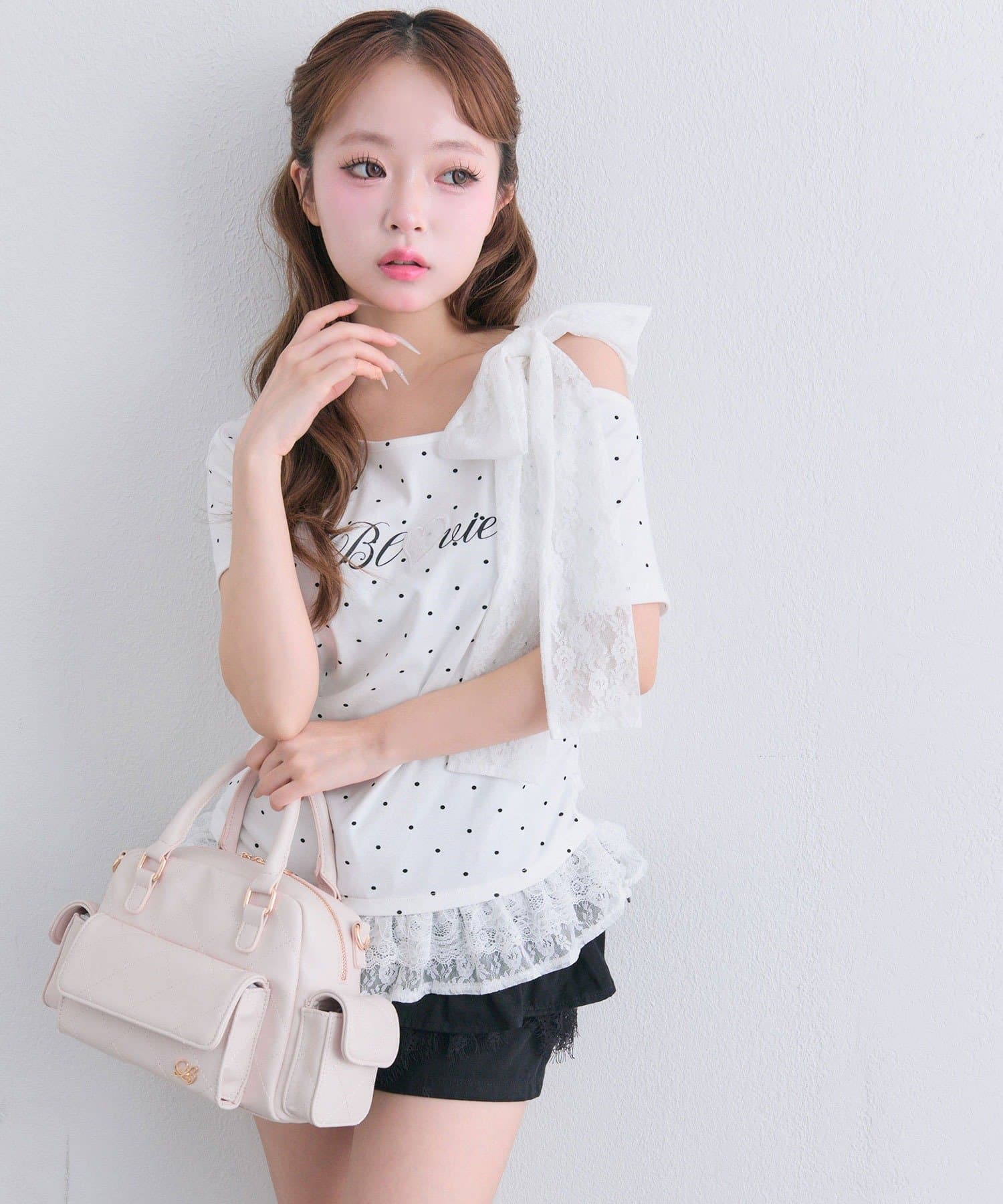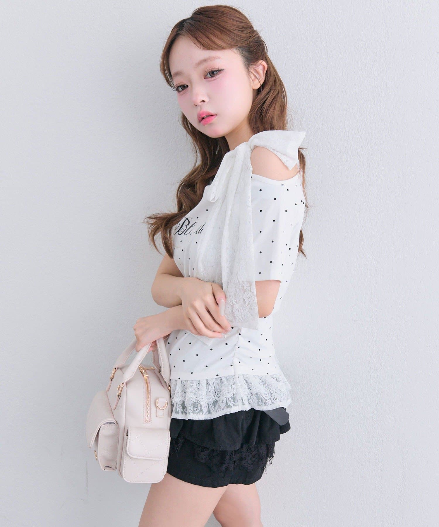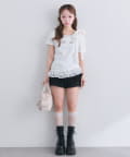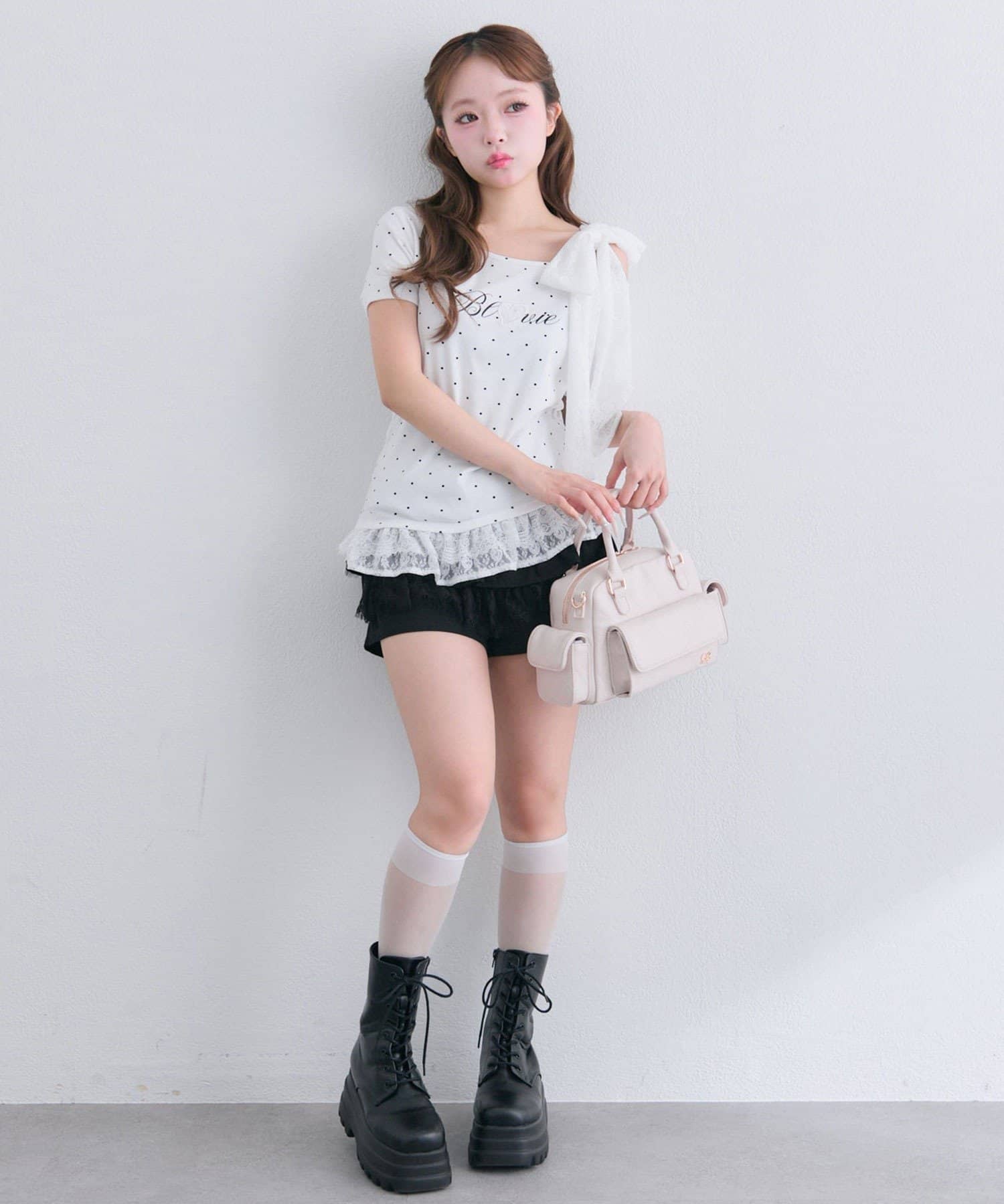 ・ミニボトムと合わせて、とことんあざと可愛いスタイリングもおすすめ。