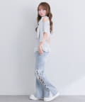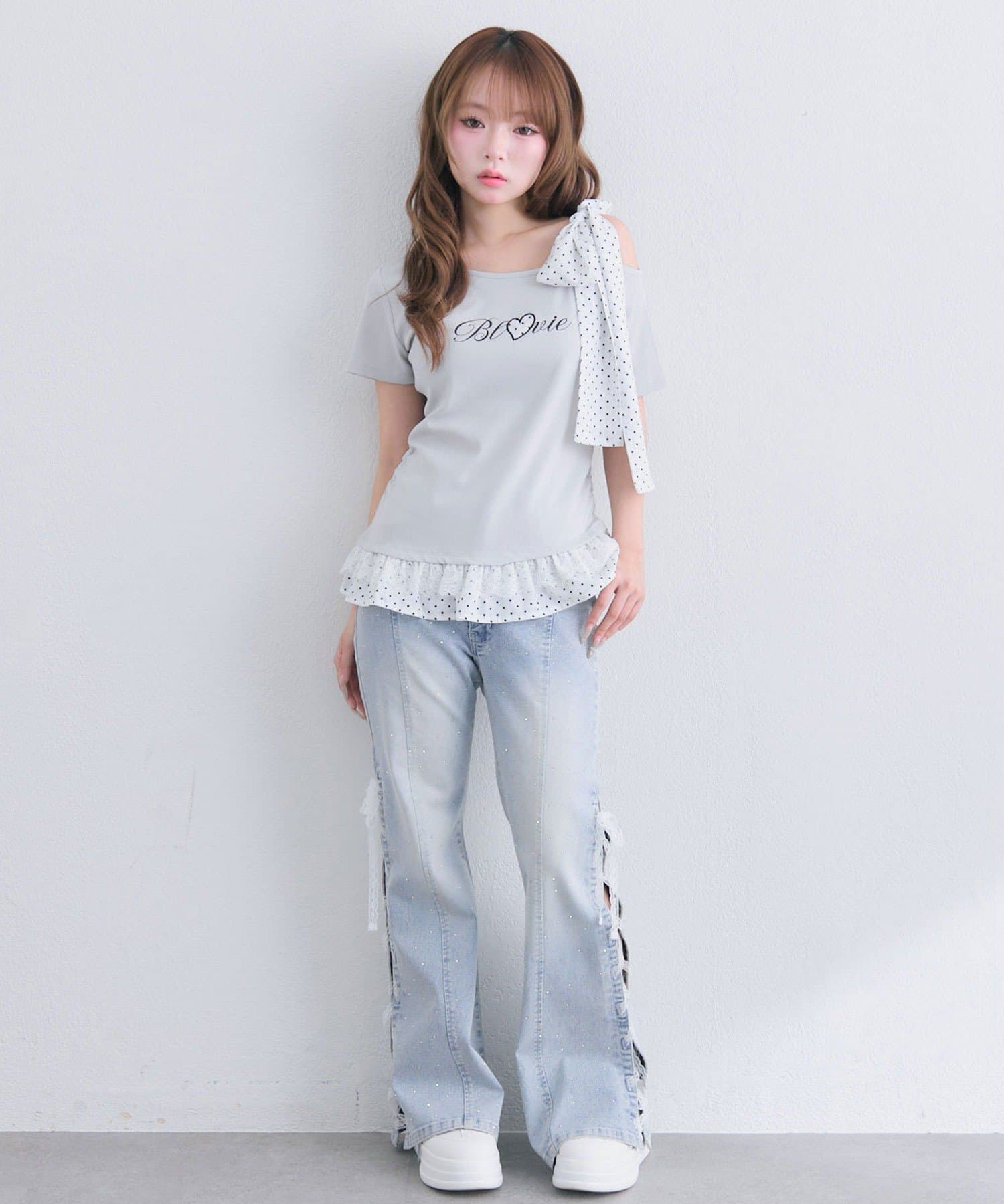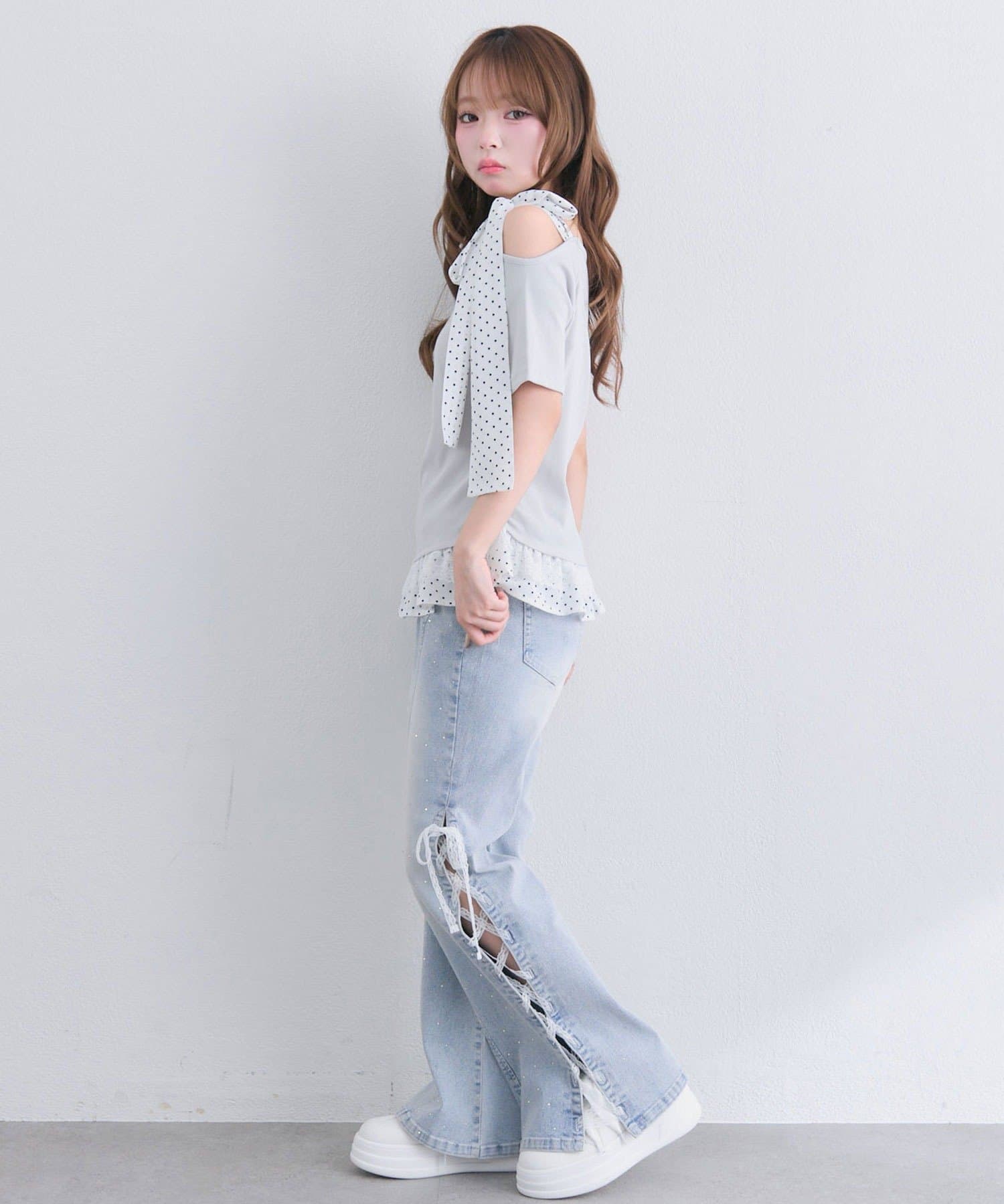・デニム合わせで甘さを抑えた、今っぽ韓国ガーリーな着こなしに。