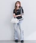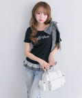 ・フロントのロゴがさりげないアクセントになり、甘すぎず着やすい印象に。
