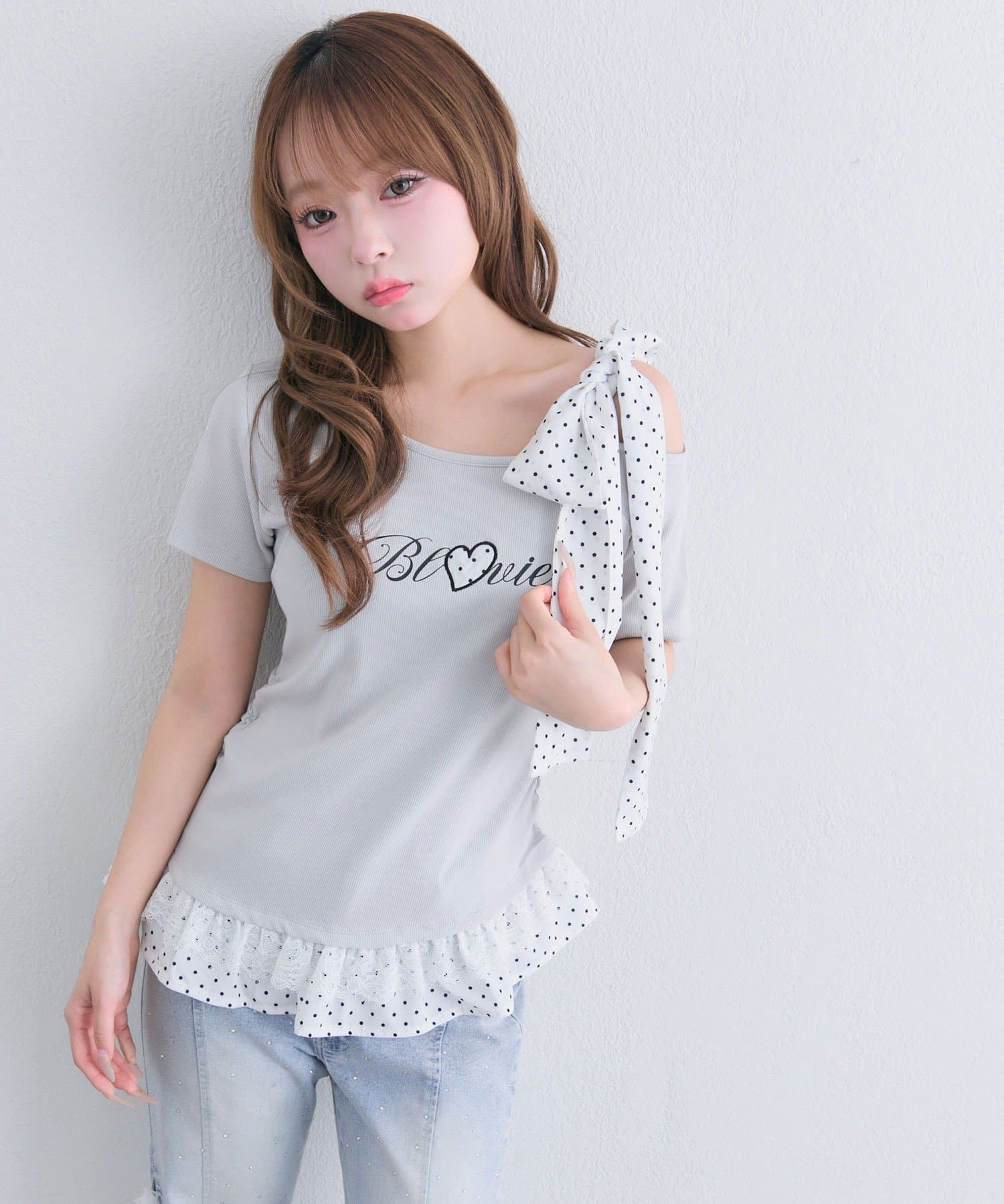 肩リボンTシャツ