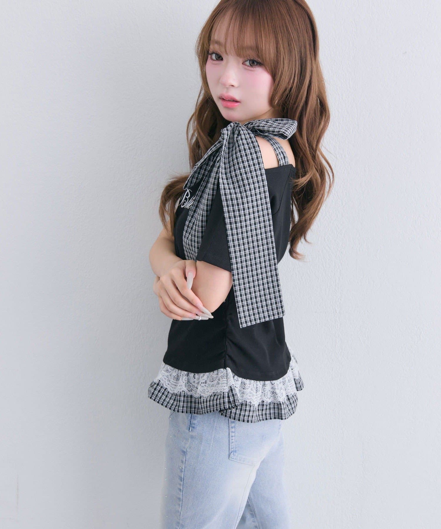 ・裾にはフリルをドッキングし、1枚でレイヤードスタイルが完成します。