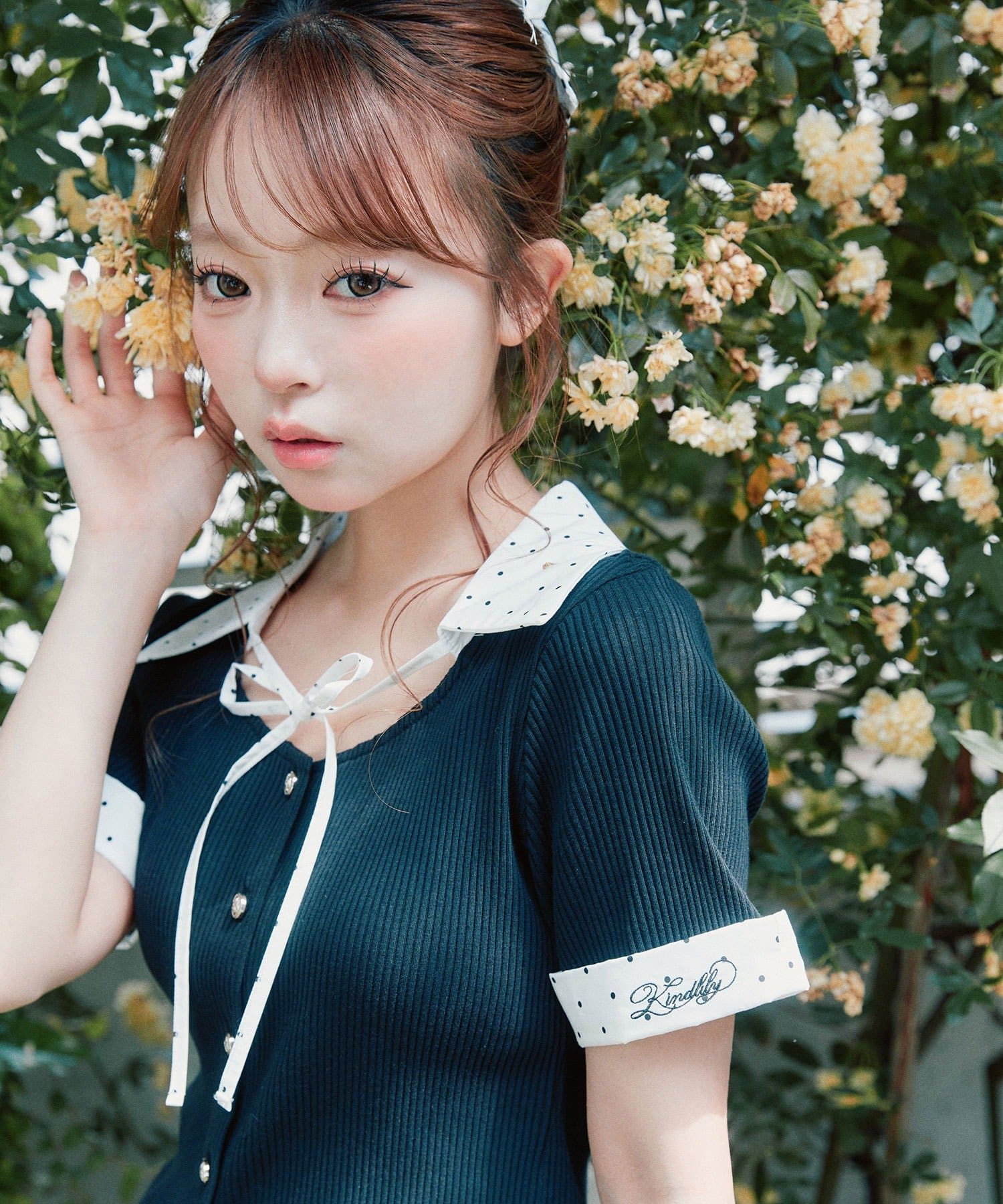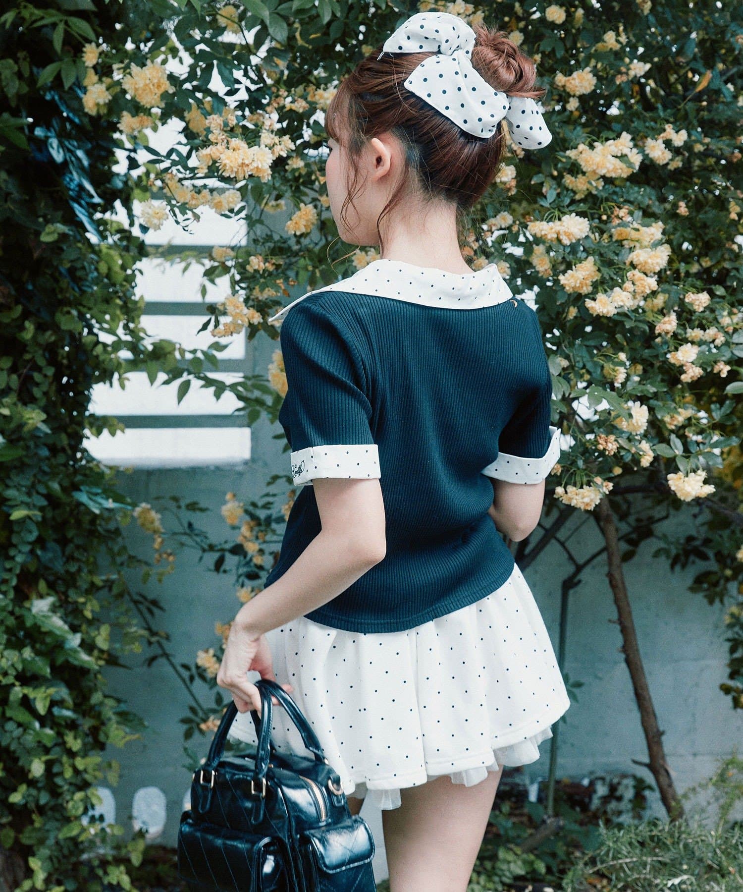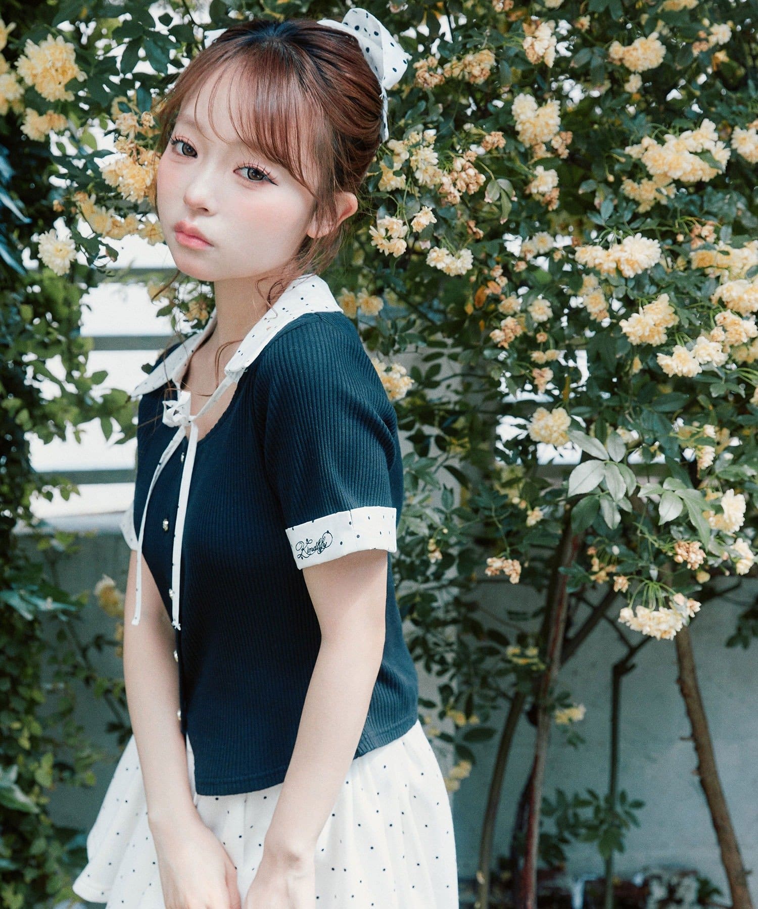 ・胸元の華奢なリボンと裾のカットラインが、程よい抜け感をプラスしてくれます。